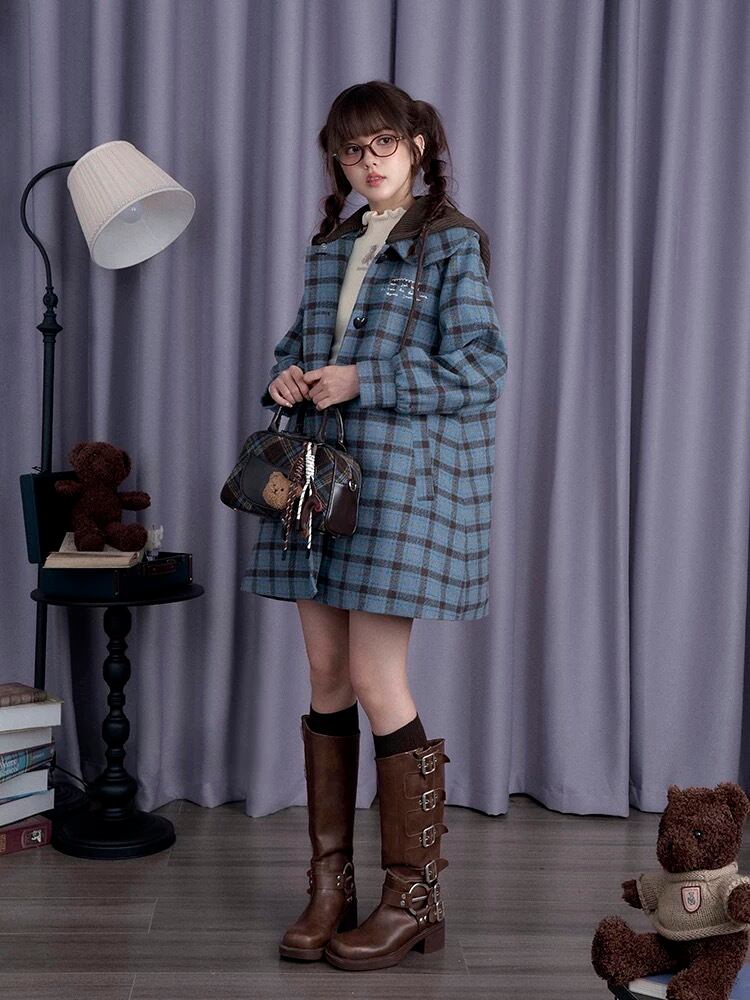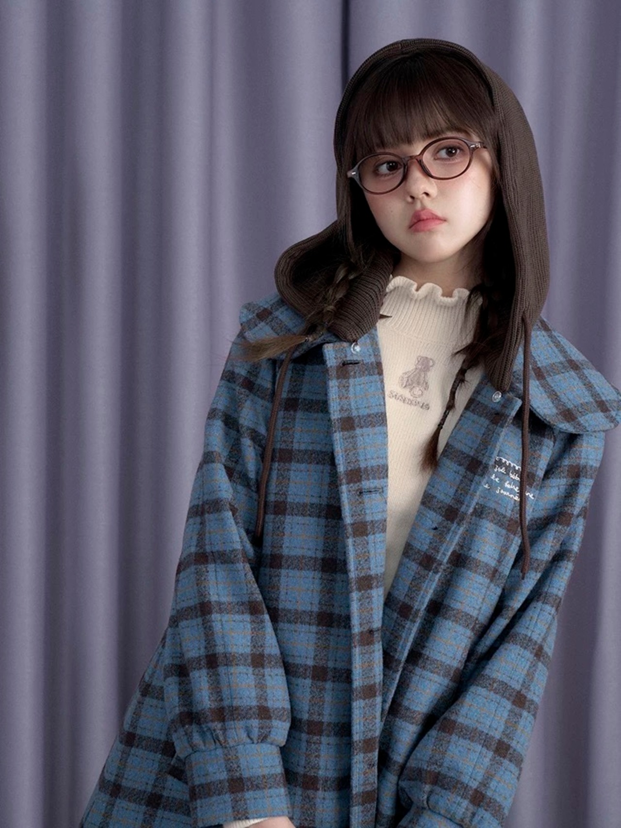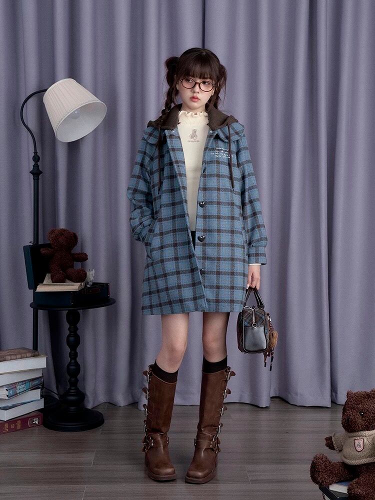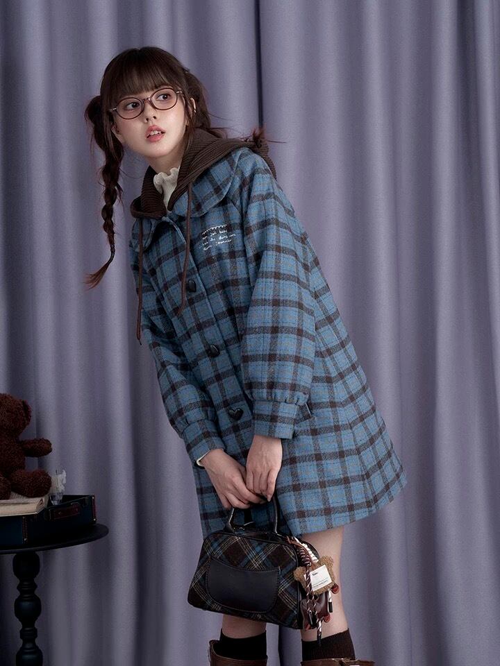 水色 アウター パーカー チェック ハート ワンピース コート 可愛い