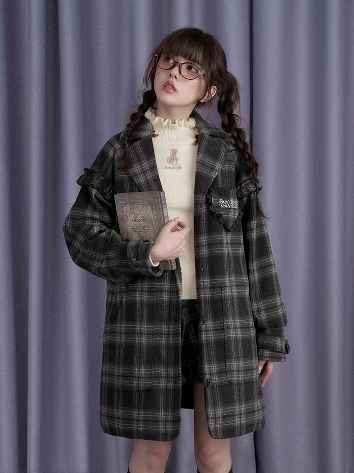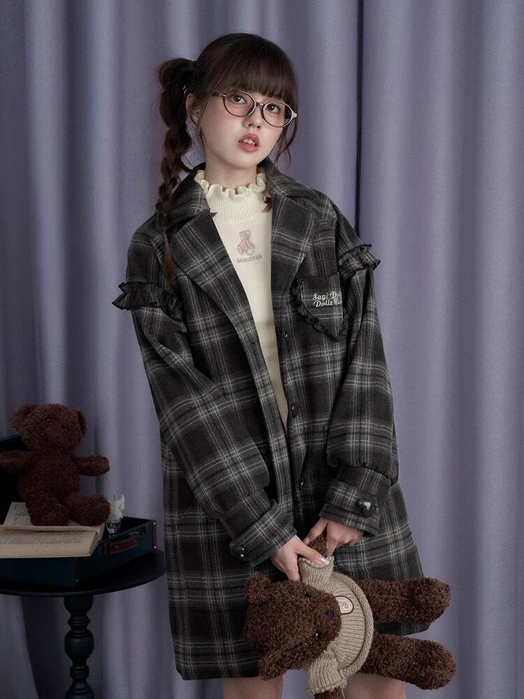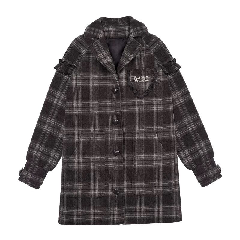 茶色 ガーリー ワンピース コート ハート アウター スクール チェック
