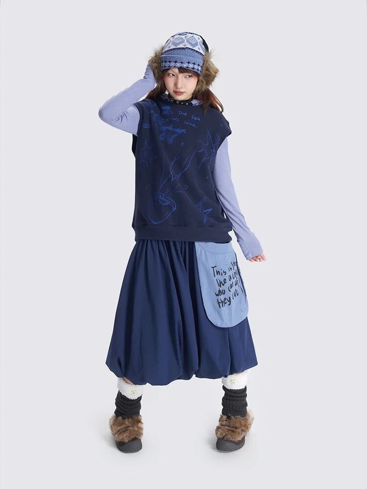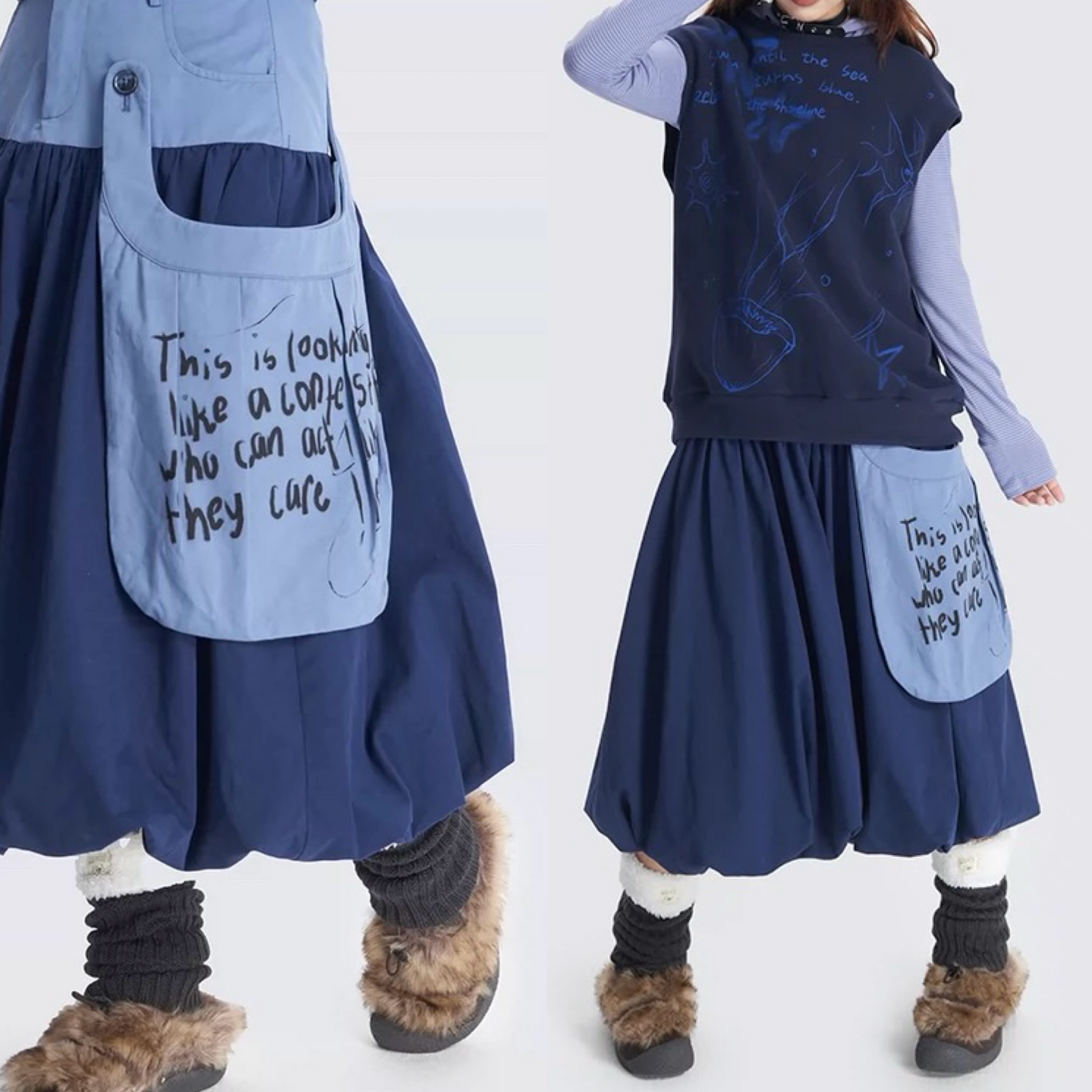 バルーン 水色 ネイビー カジュアル スカート ボトムス ガーリー