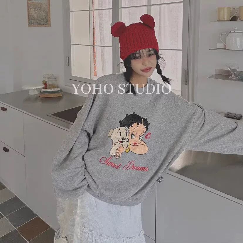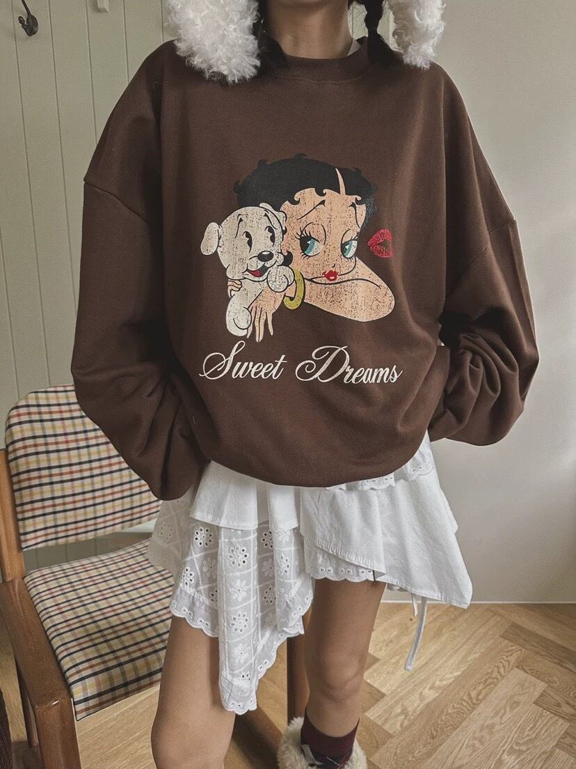 スウェット カジュアル 茶色 グレー トップス トレーナー