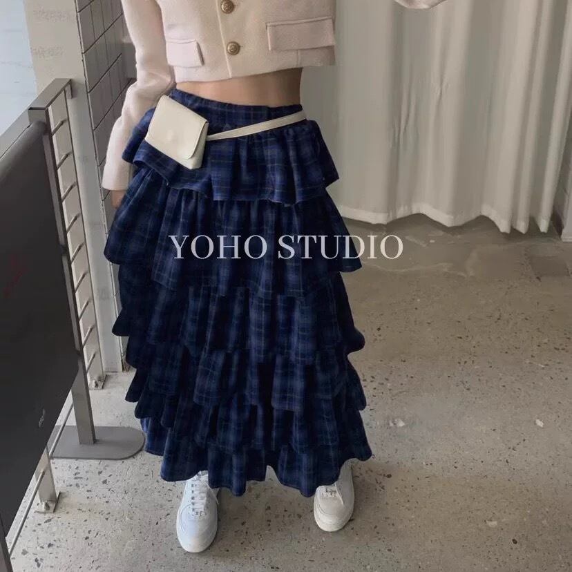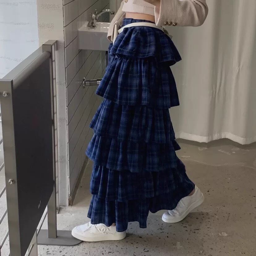 チェック ネイビー 茶色 ボトムス フリル スカート