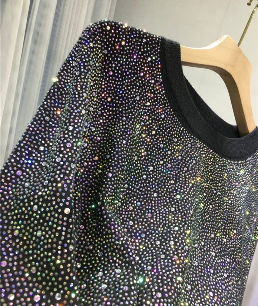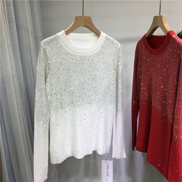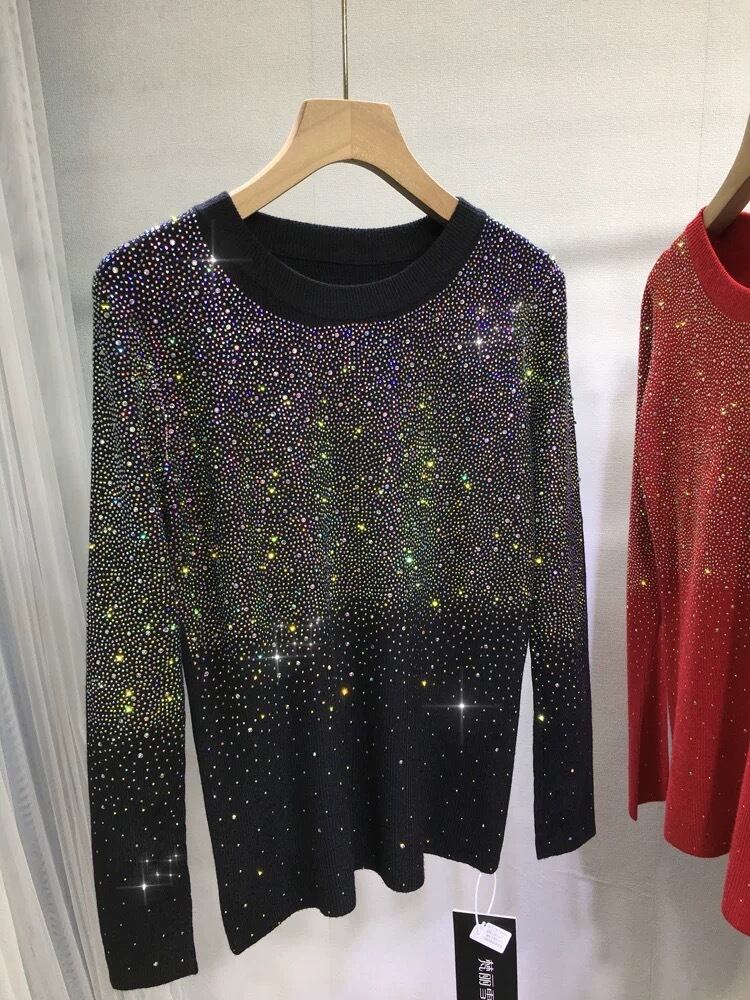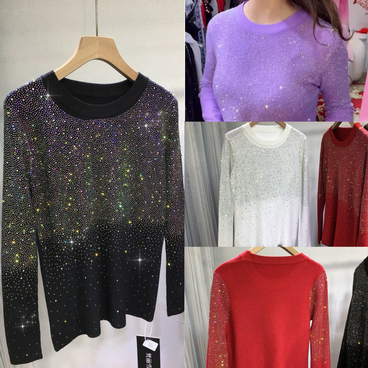 キラキラ ラインストーン 黒 紫 カーディガン 赤 白 丸首 ブラウス セーター
