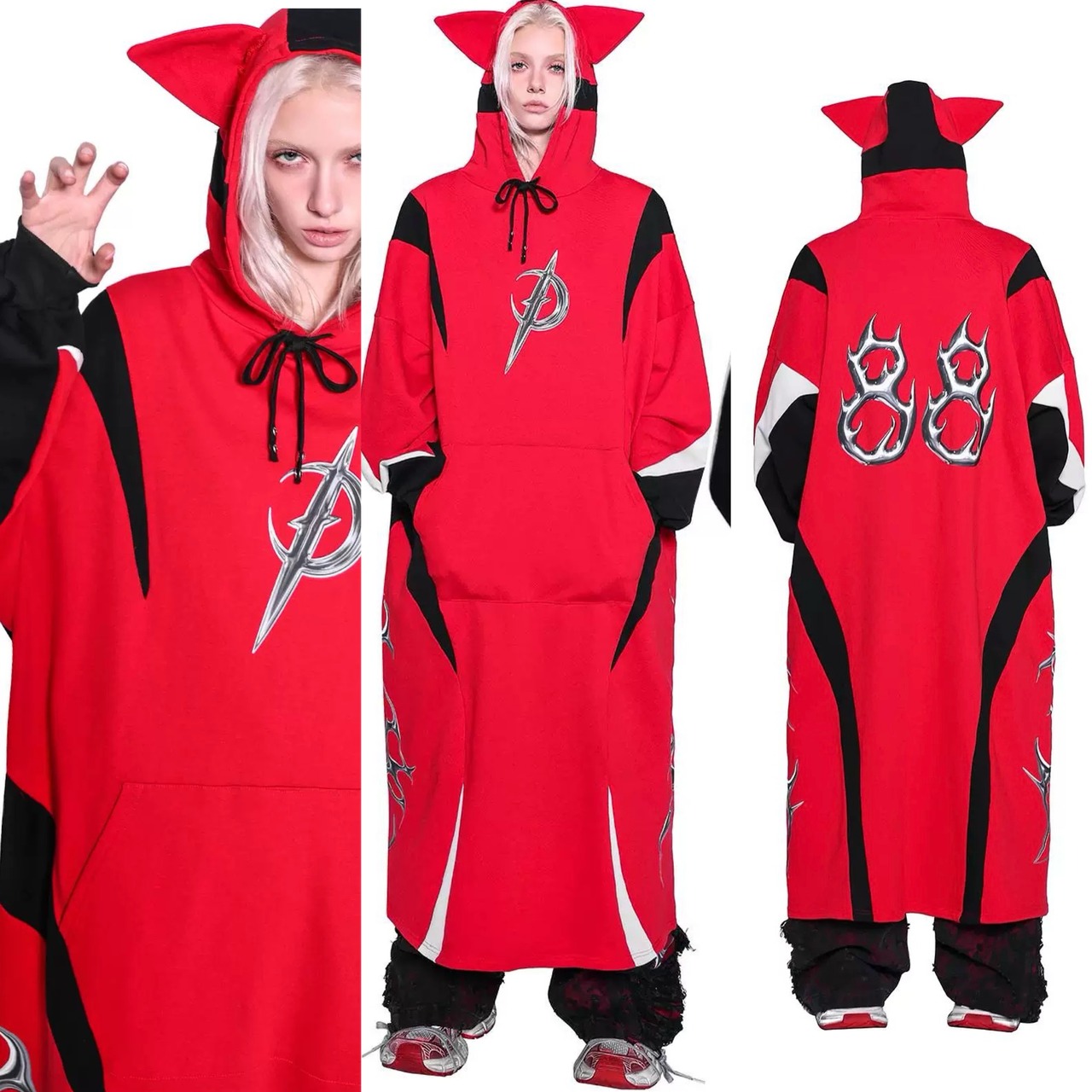 パーカー 赤 ねこ みみ ワンピース パーカー トレーナー アウター コート 黒 スウェット