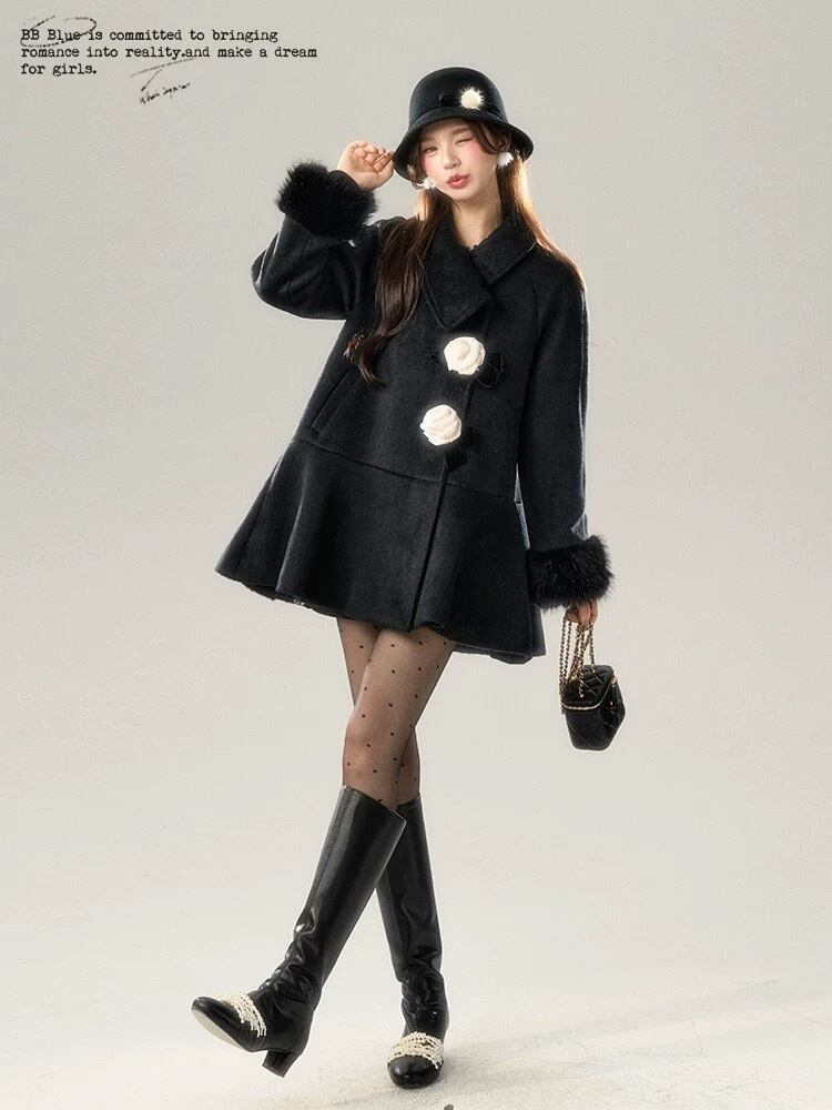 カメリア 白 黒 アウター コート ジャケット ファー ワンピース ガーリー リボン カメリア