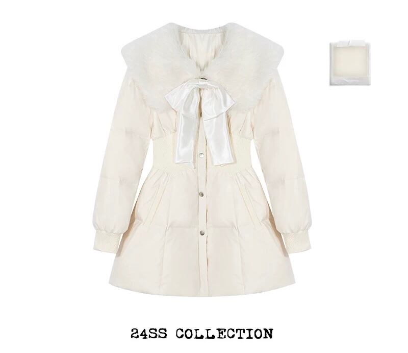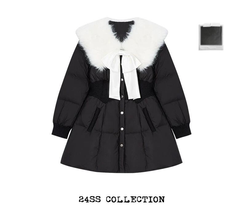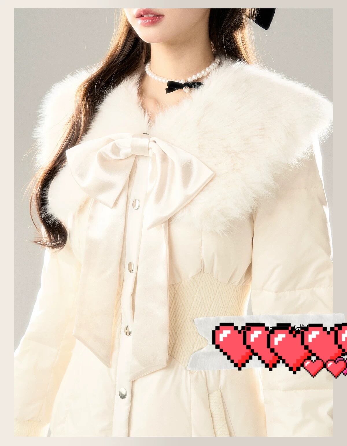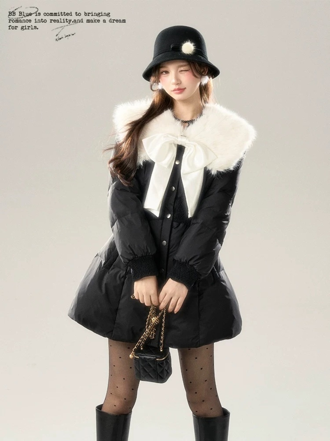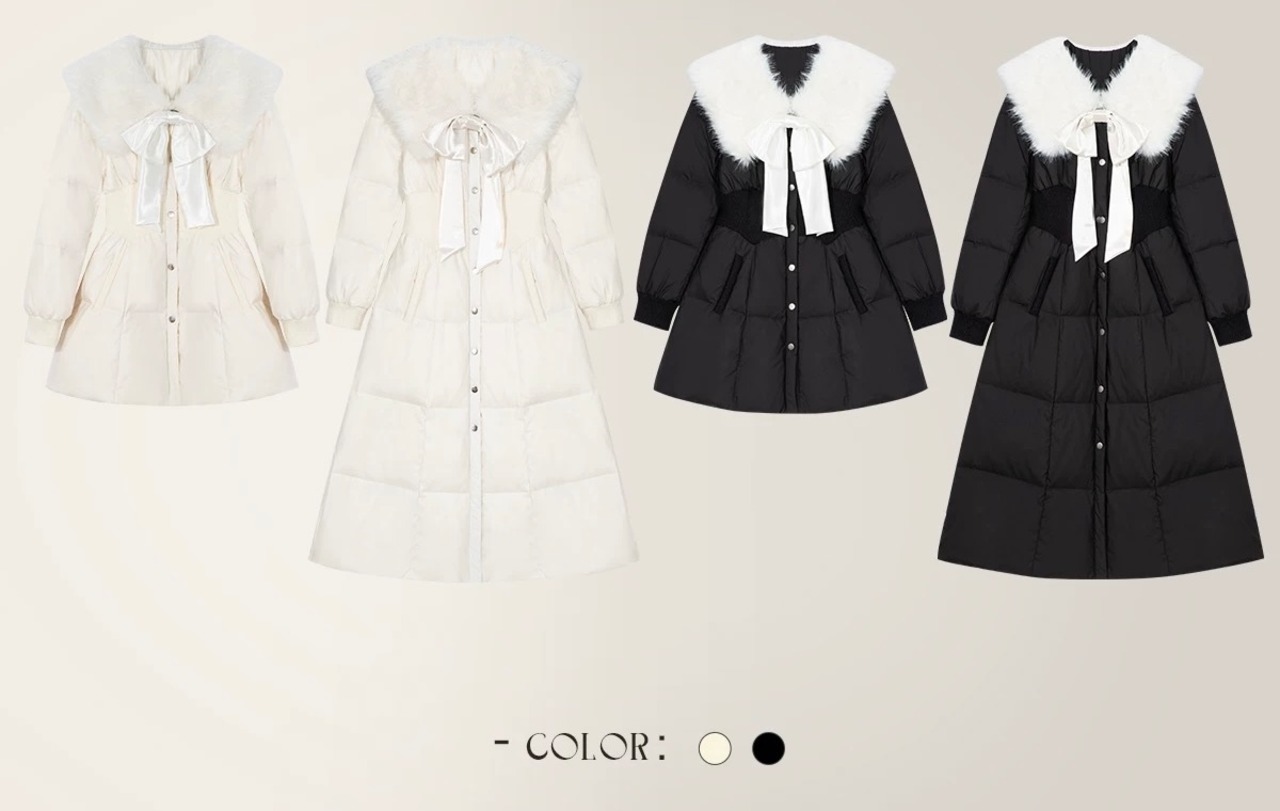 コート リボン ファー 白 黒 アウター ワンピース ガーリー ダウン 襟