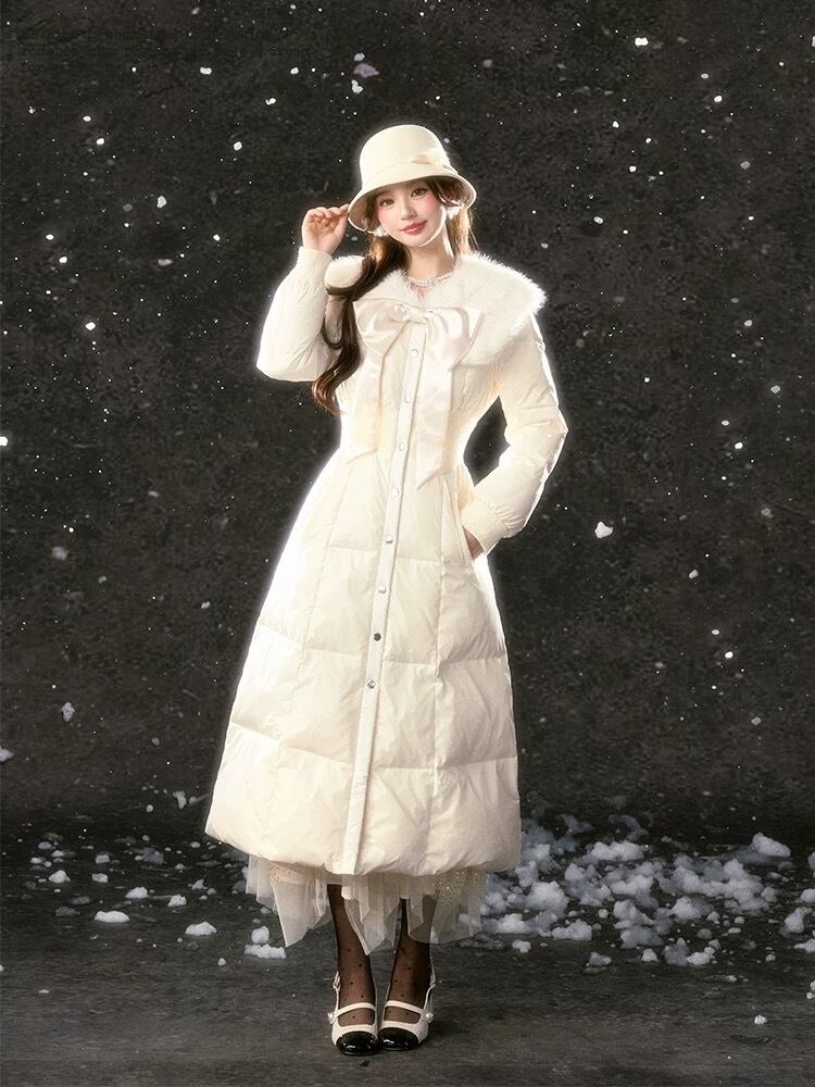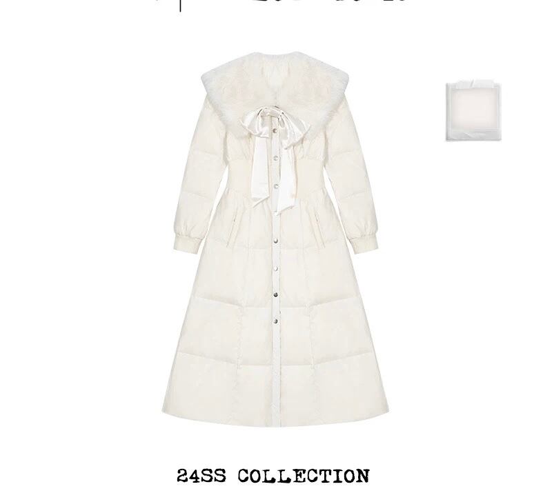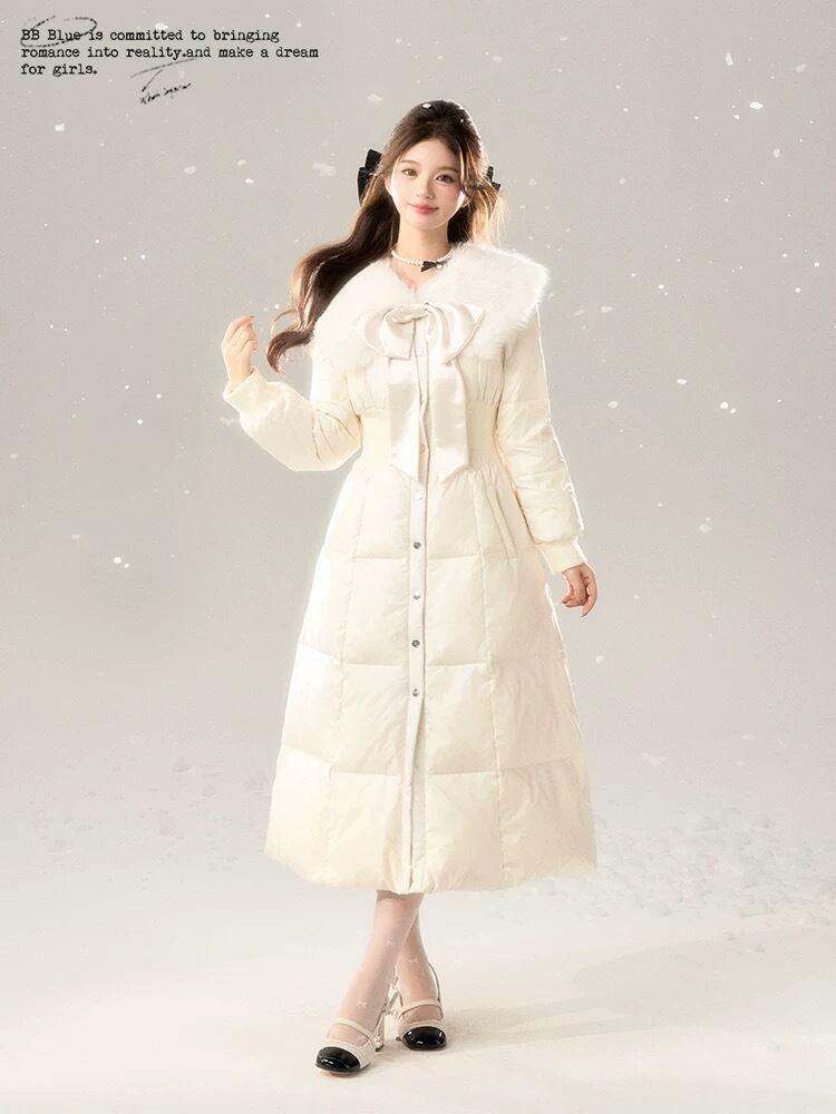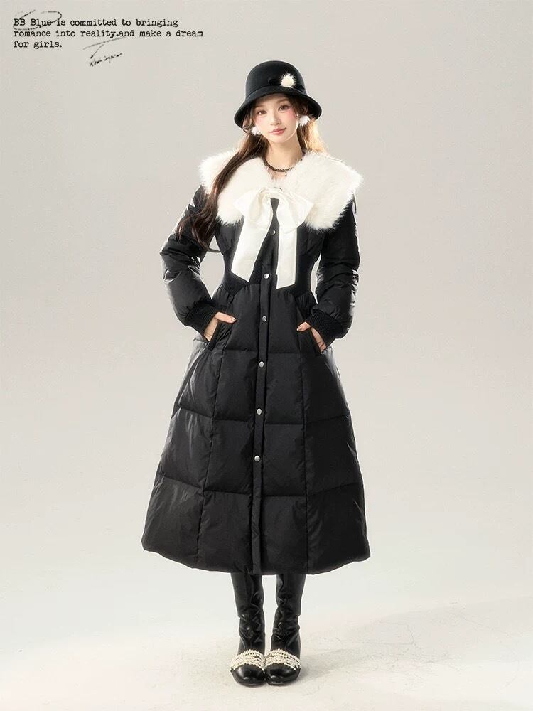 丸襟 ファー 白 黒 リボン ダウン コート ワンピース ガーリー