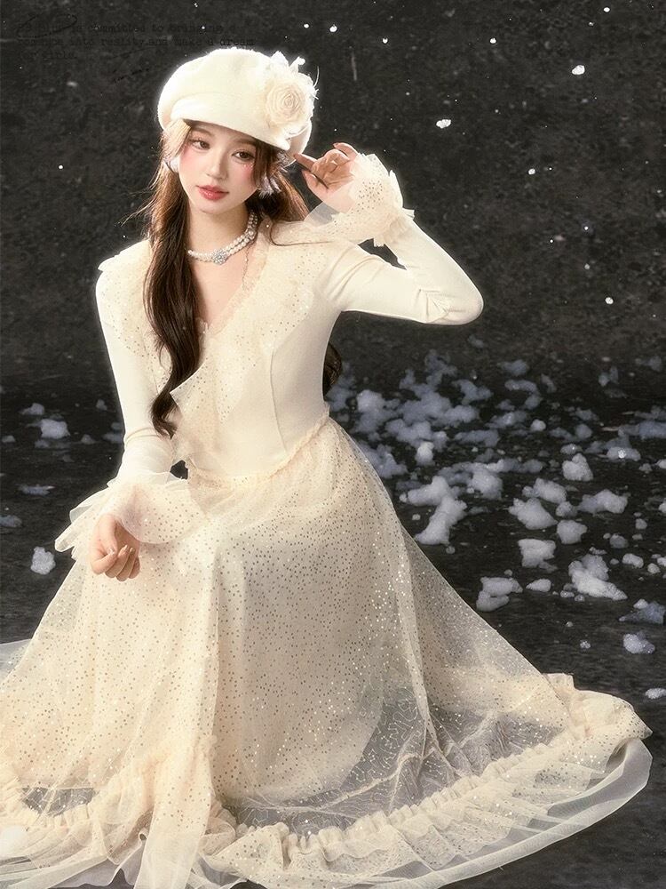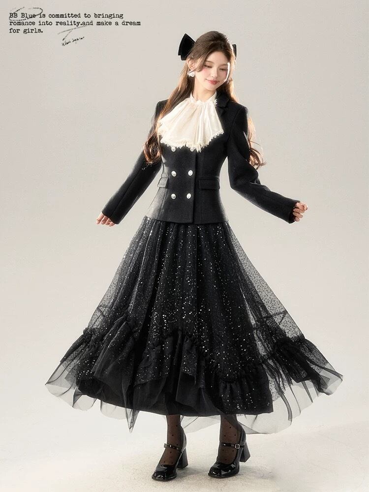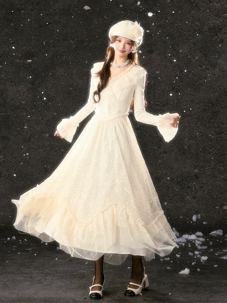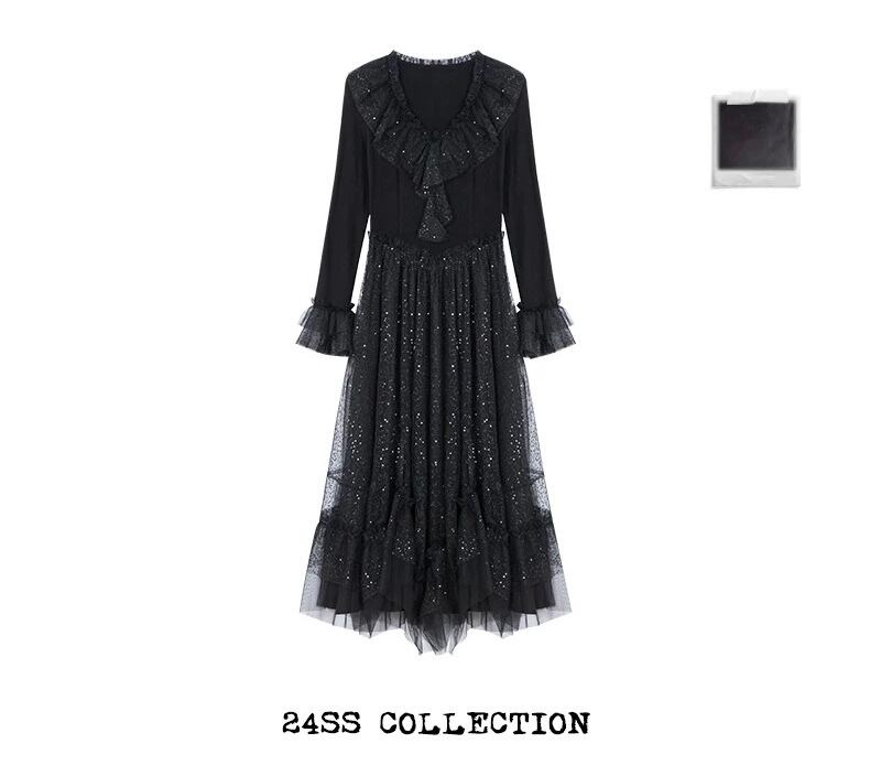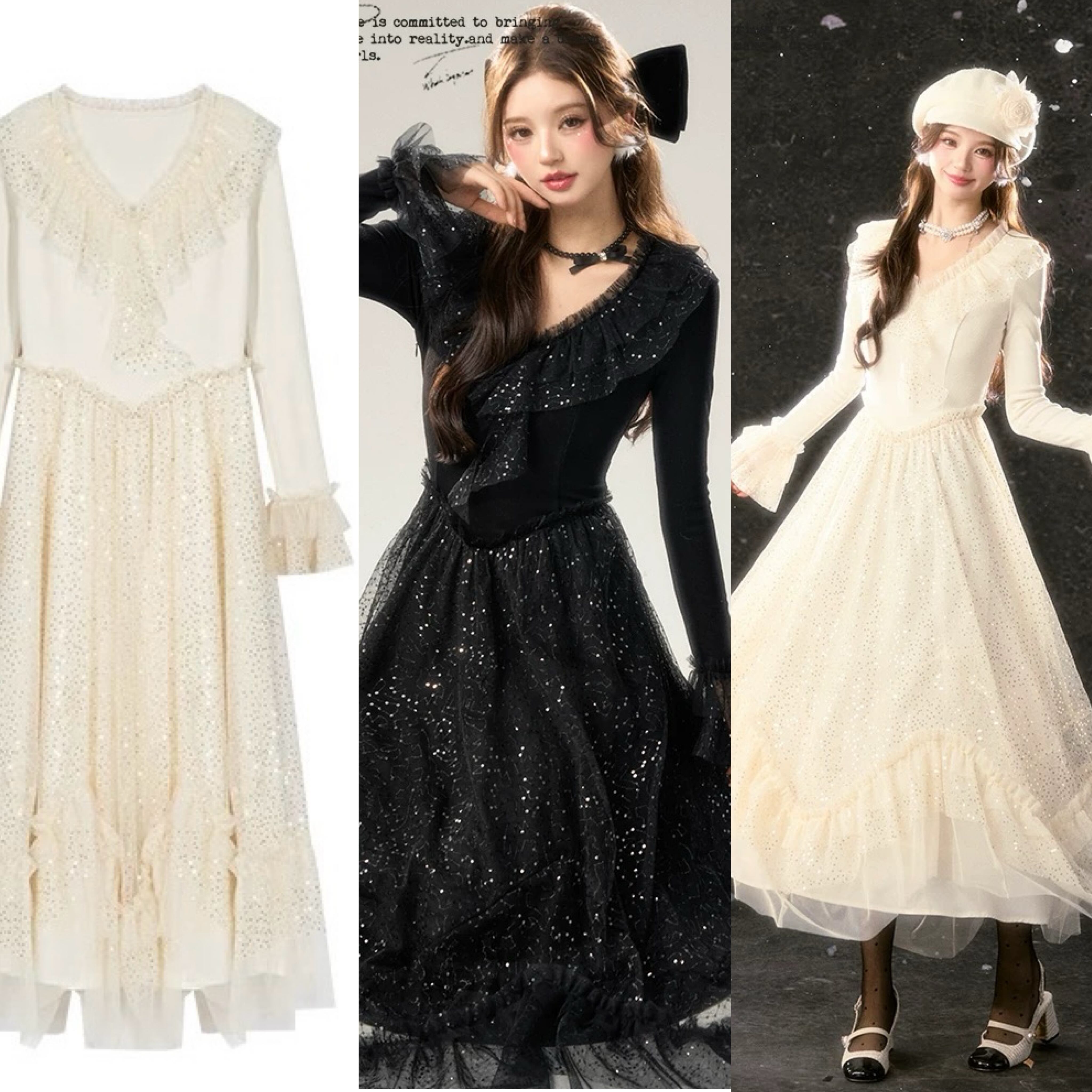 ブラウス キラキラ マキシ ベージュ 黒 スカート ワンピース ドレス
