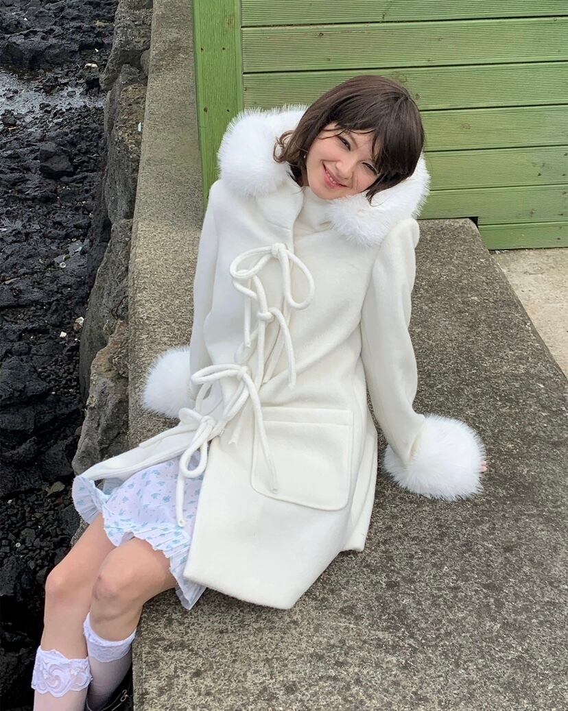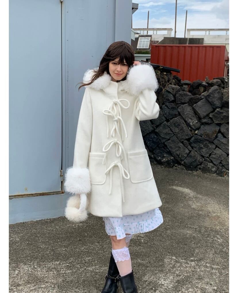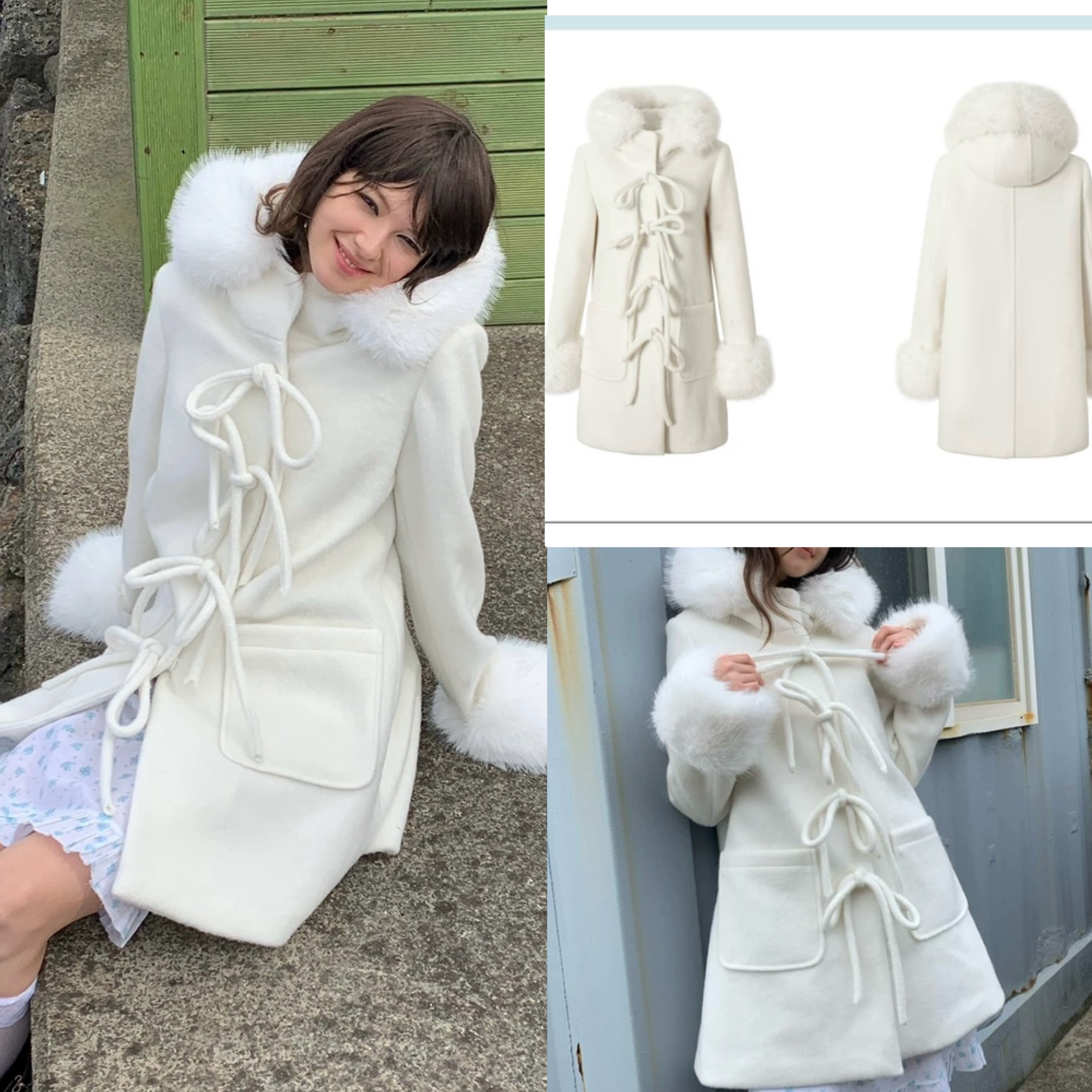 白 リボン ファー コート ワンピース ガーリー 可愛い アウター ジャケット