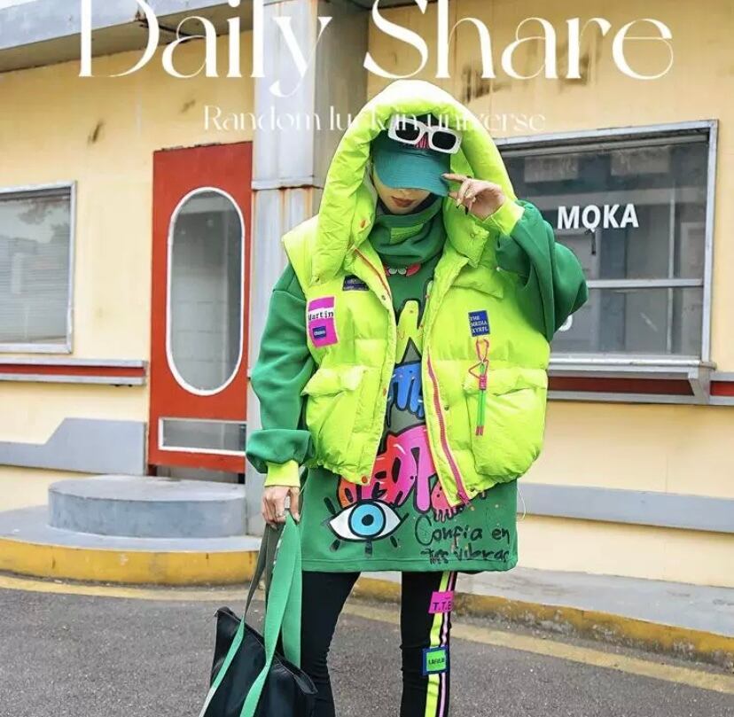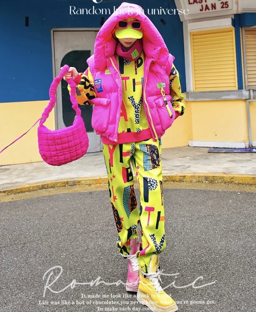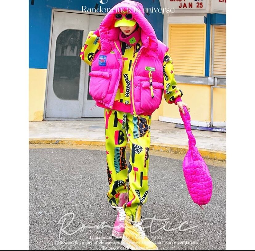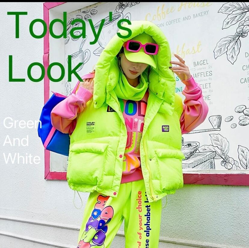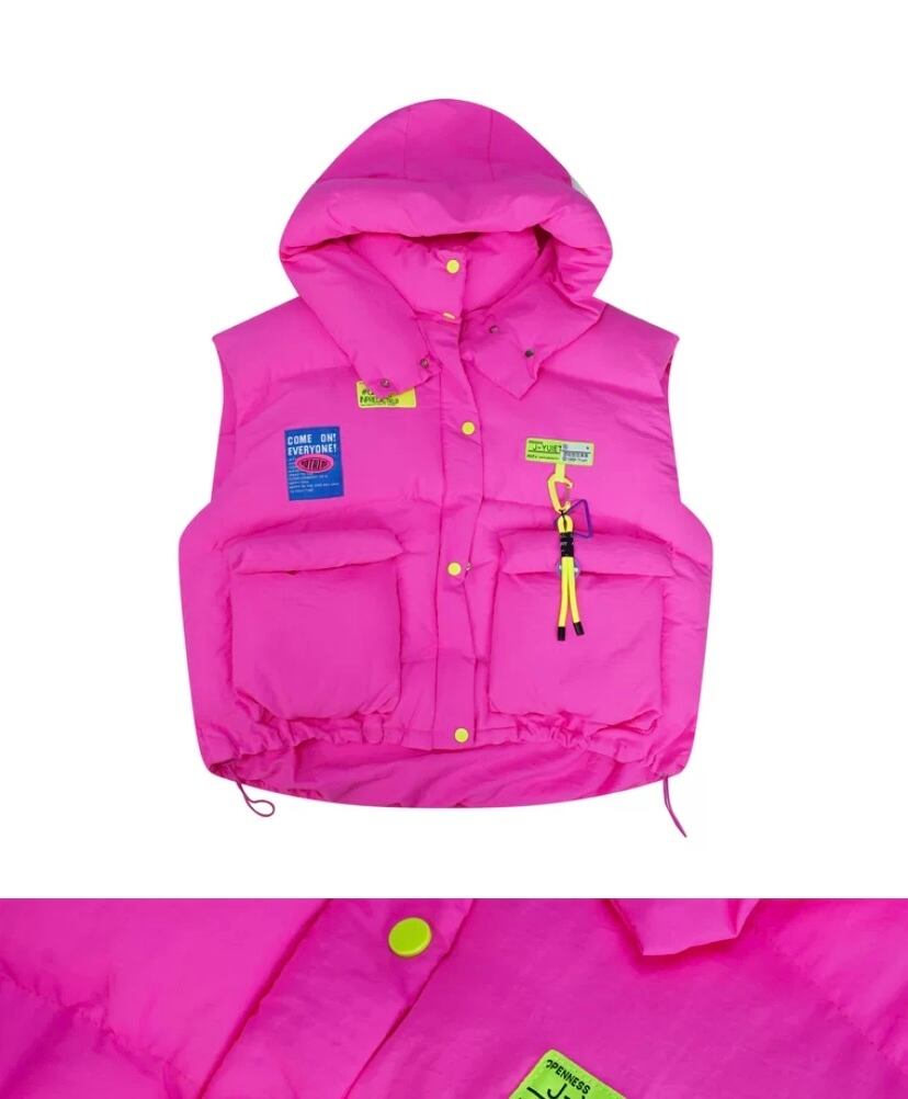 ベスト パーカー フード ネオンカラー 黄色 アウター コート ピンク 蛍光