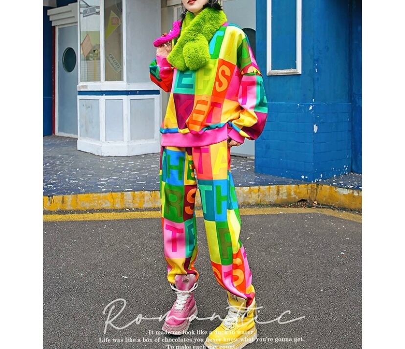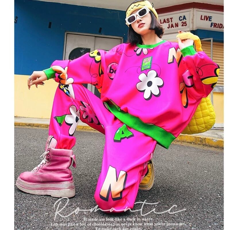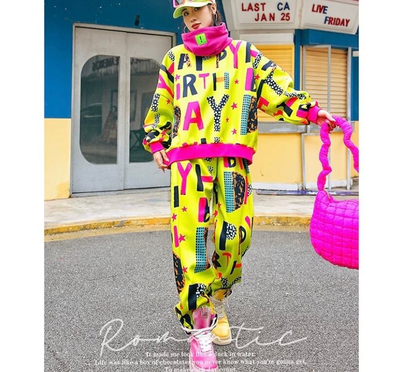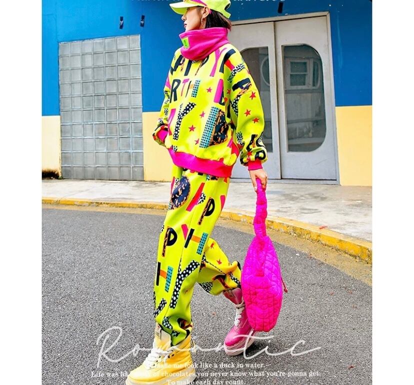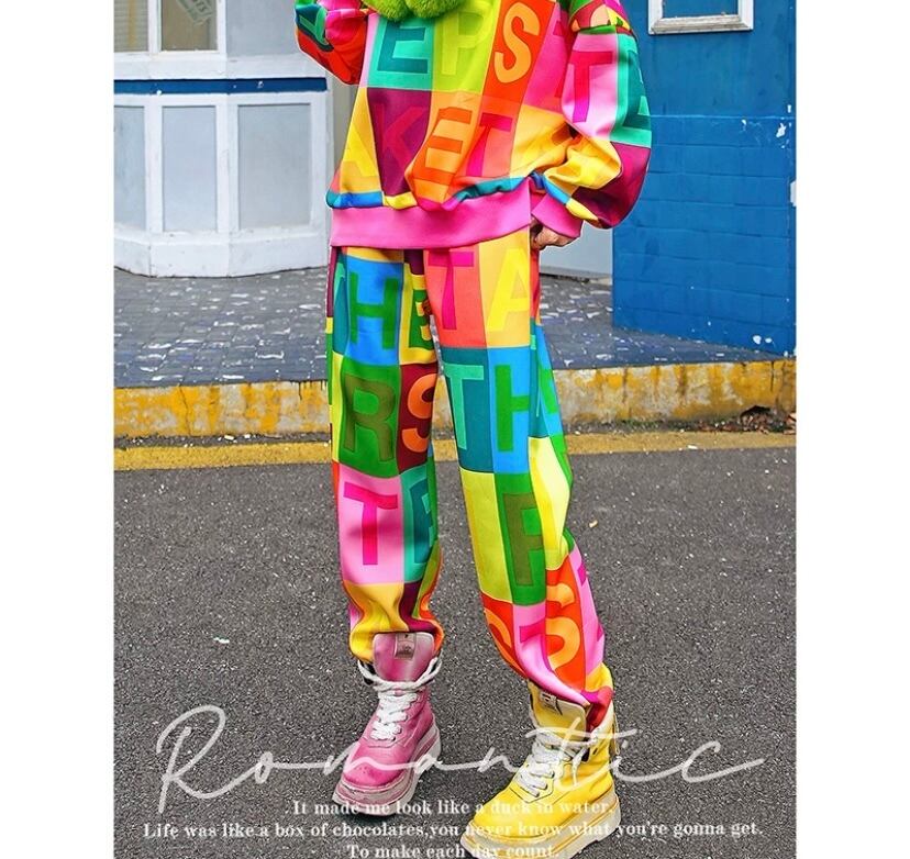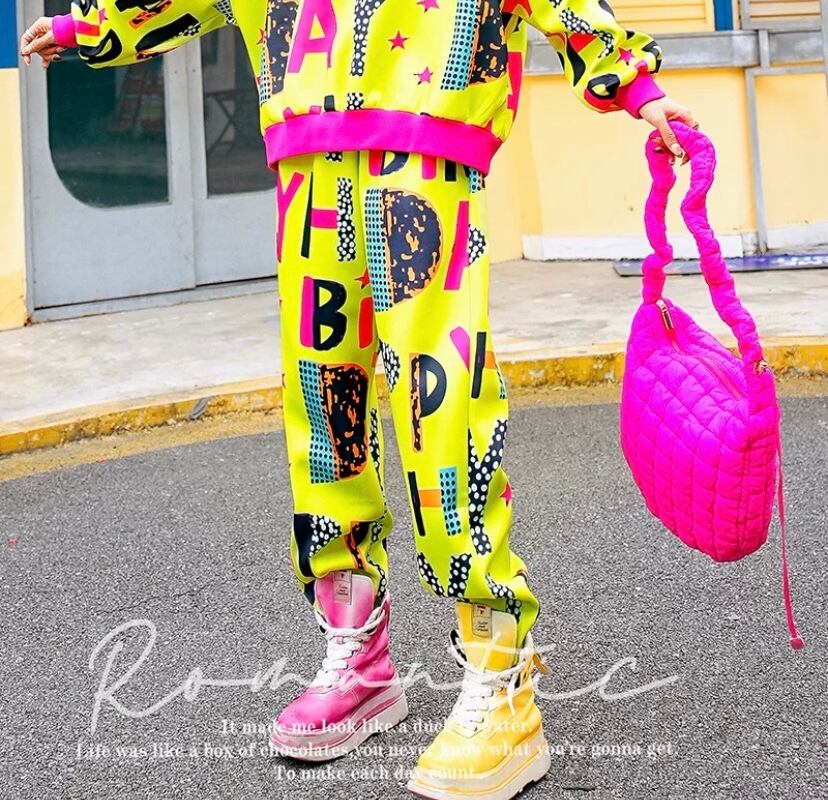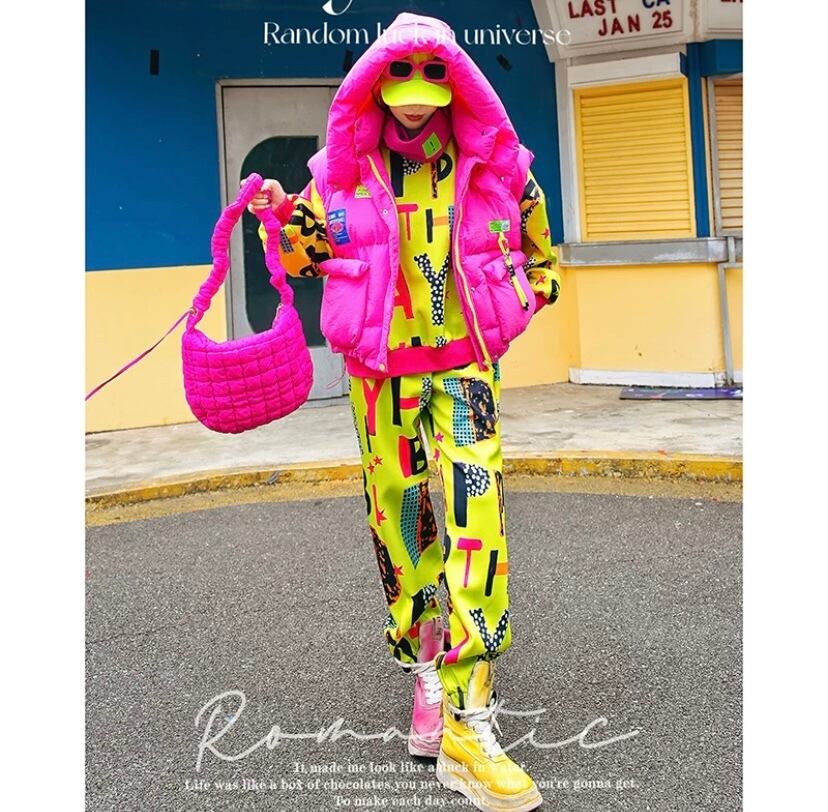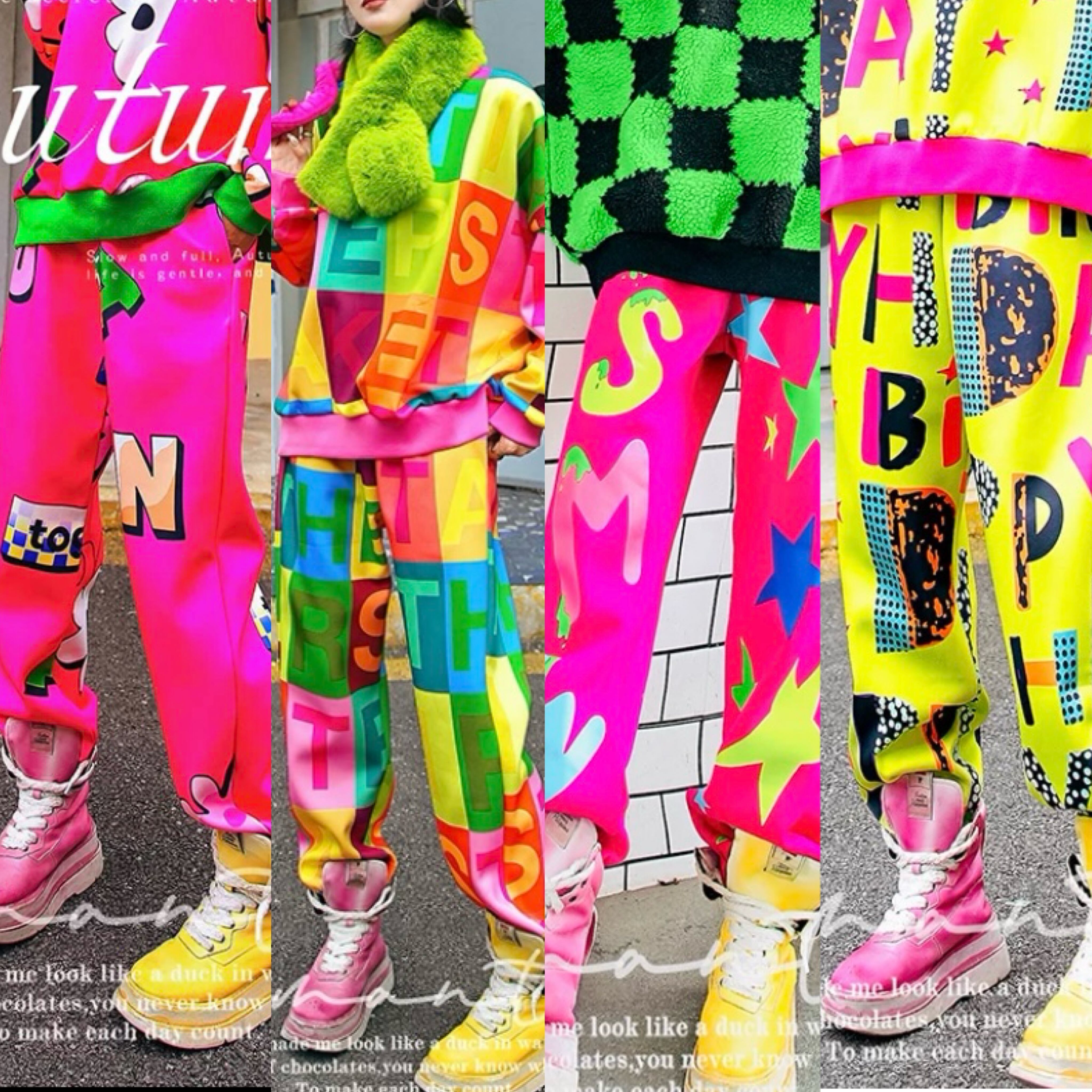 黄色 ネオンカラー 蛍光 ピンク スウェット カラフル パンツ カジュアル ボトムス タイツ