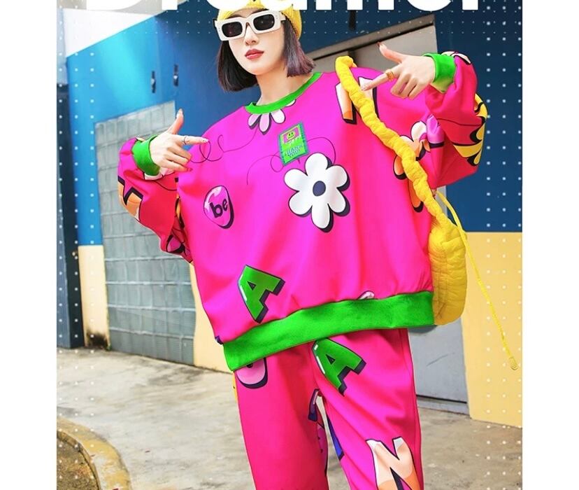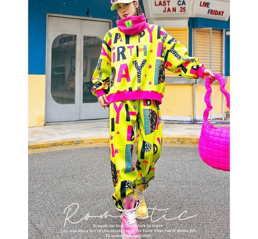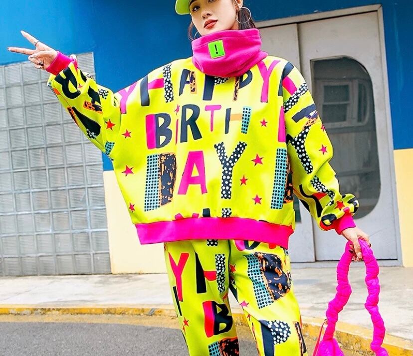 カラフル 黄色 パーカー スウェット トレーナー カジュアル 黄色 ピンク ネオン 蛍光
