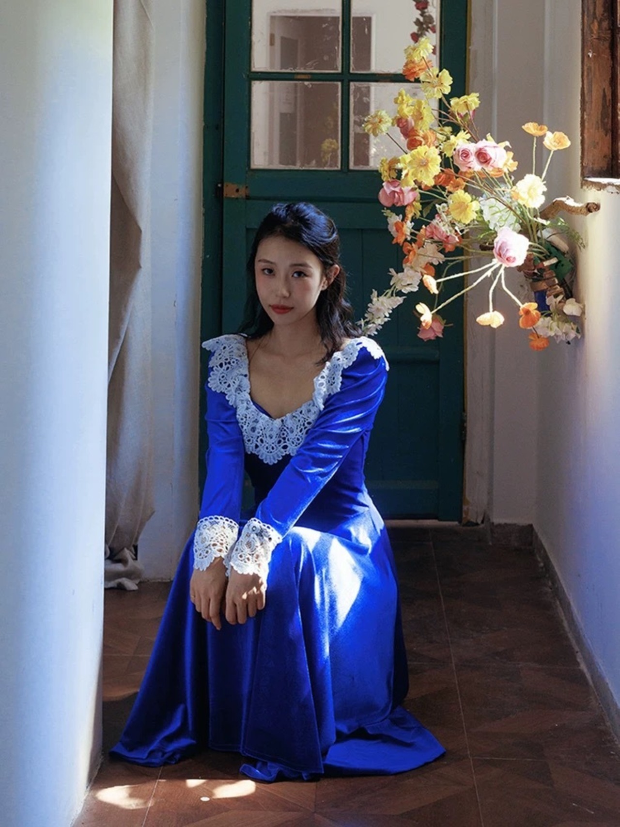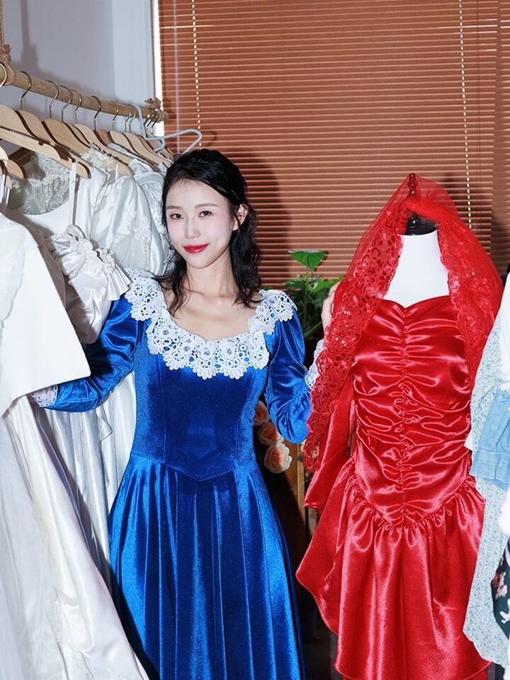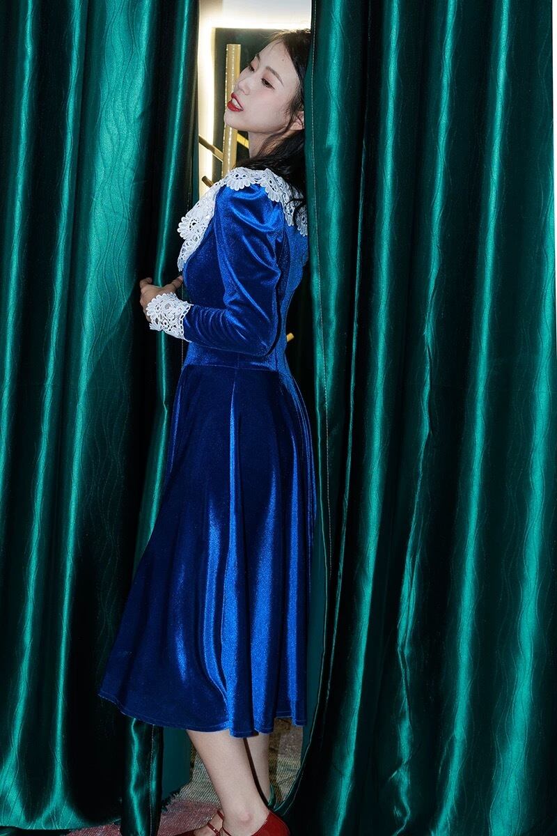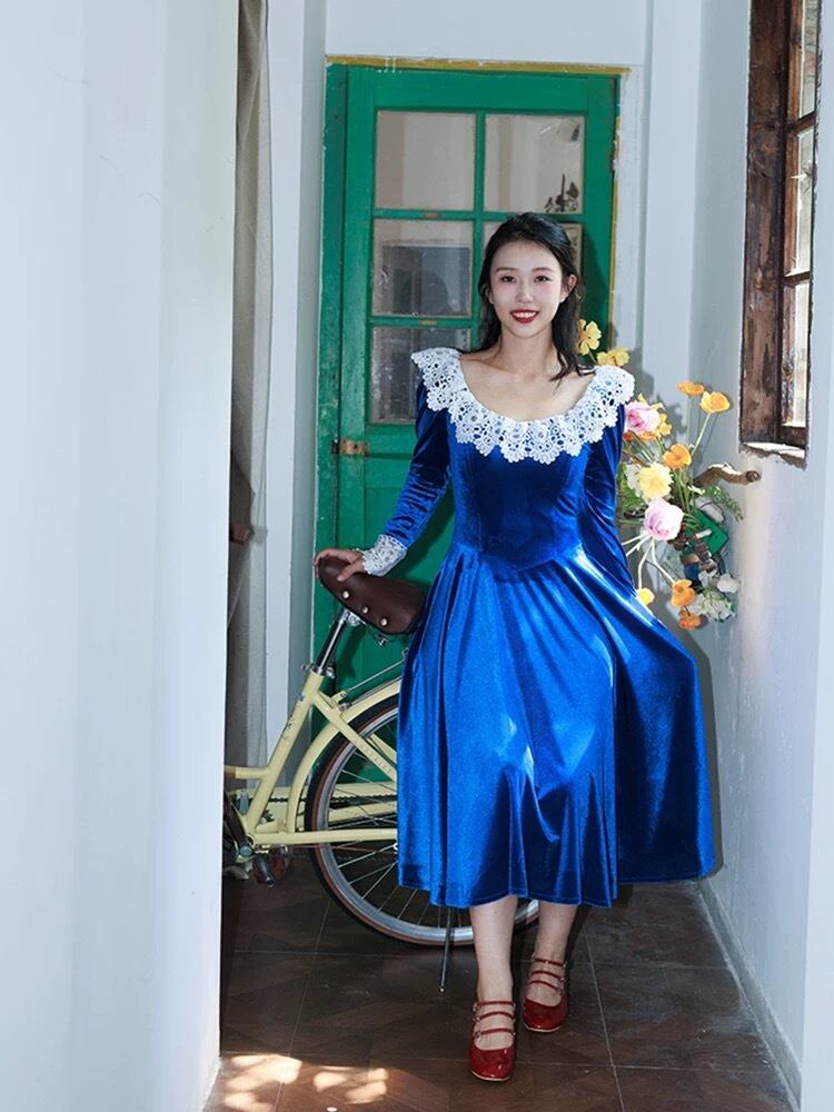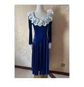 ベロア ベルベット ブルー 青 ワンピース XL クラシック