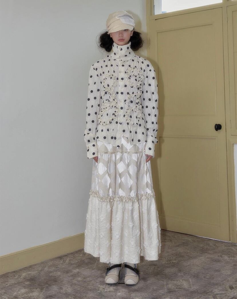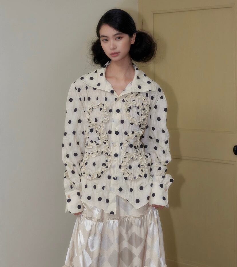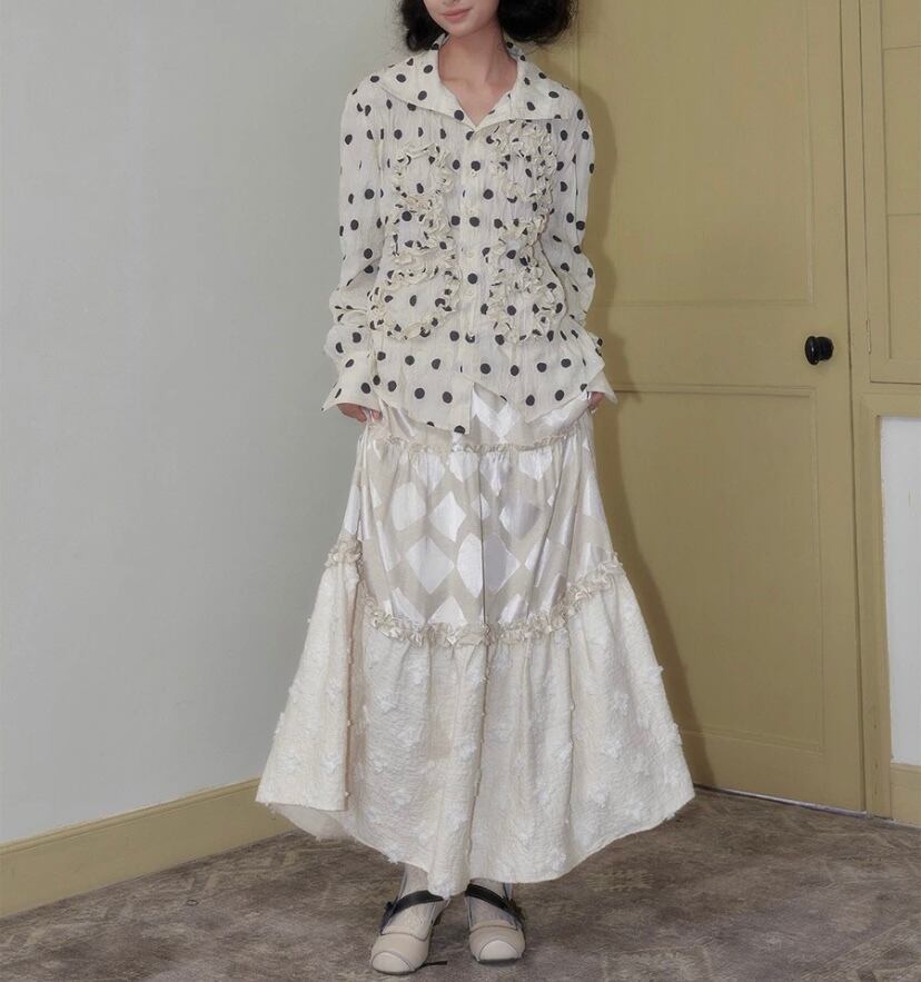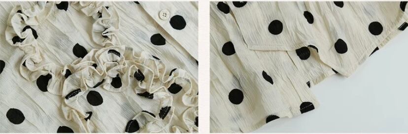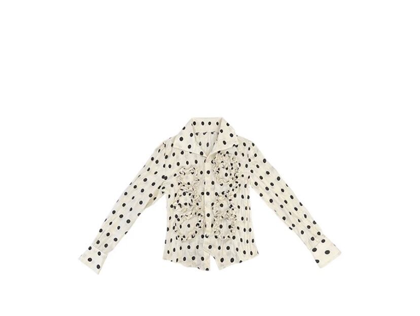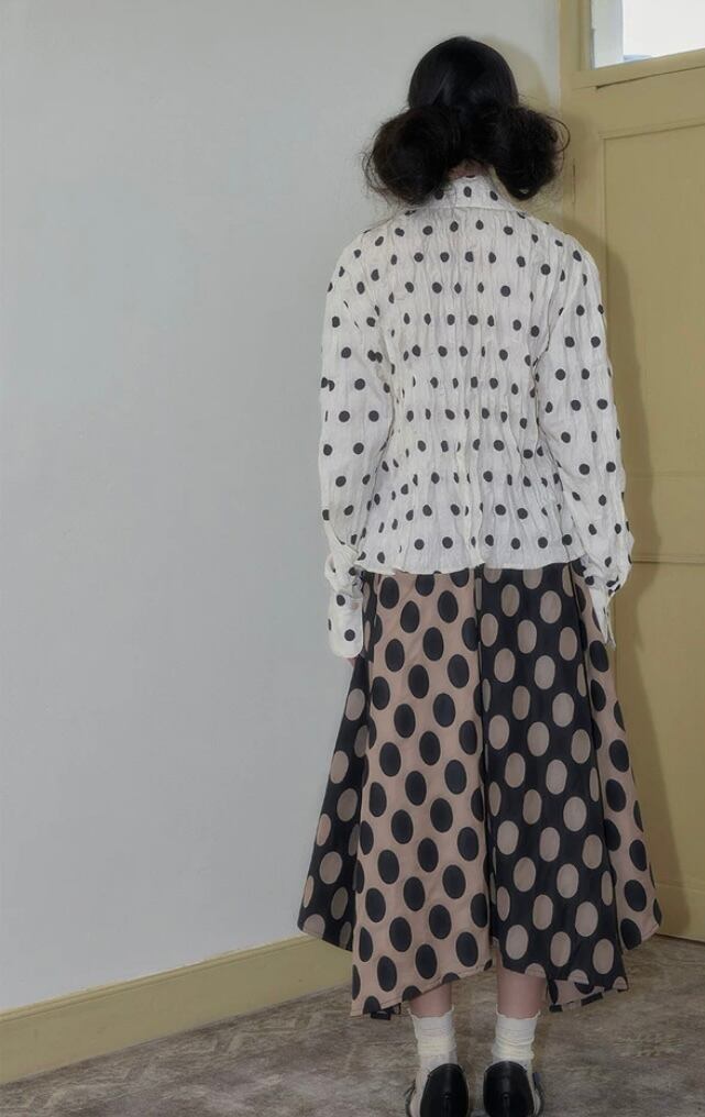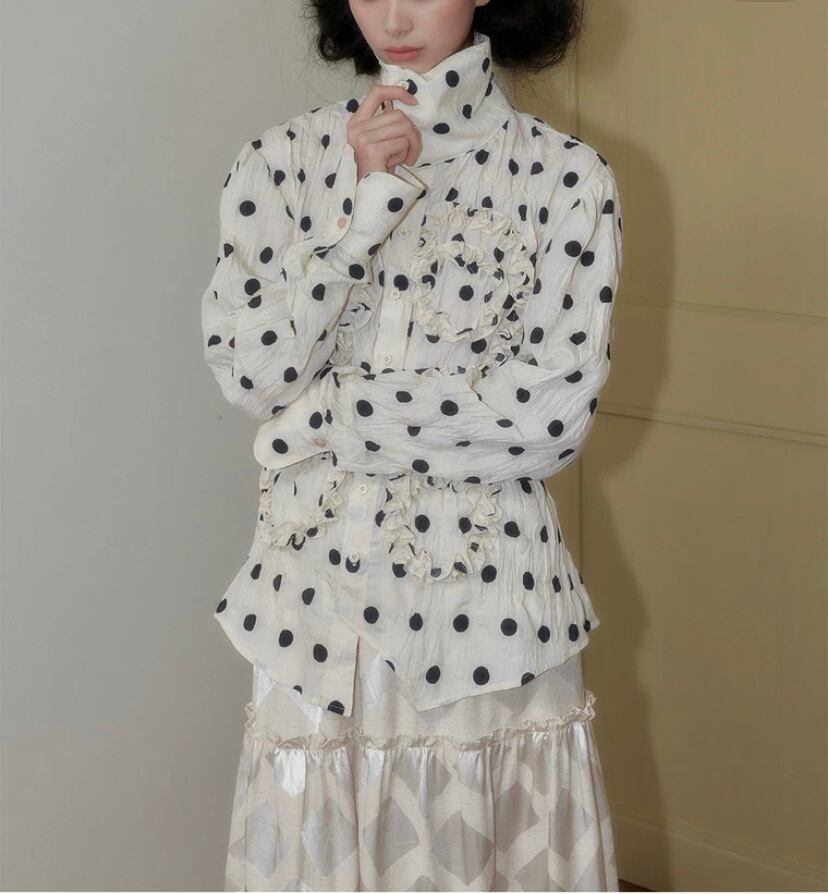白 水玉 ドット 黒 ブラウス シャツ レトロ トップス