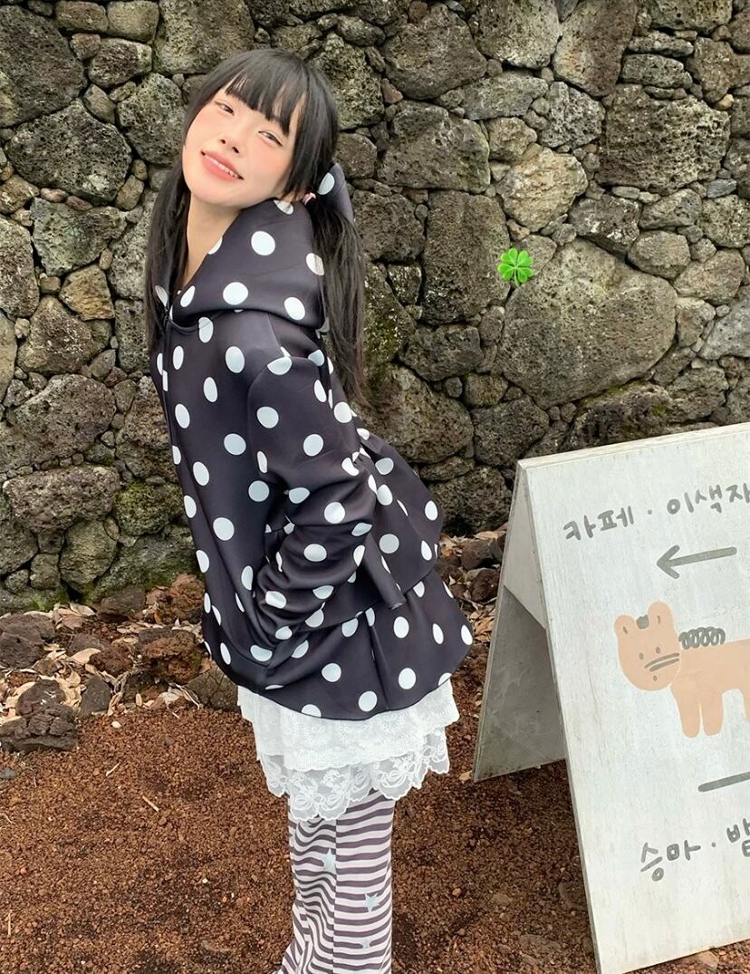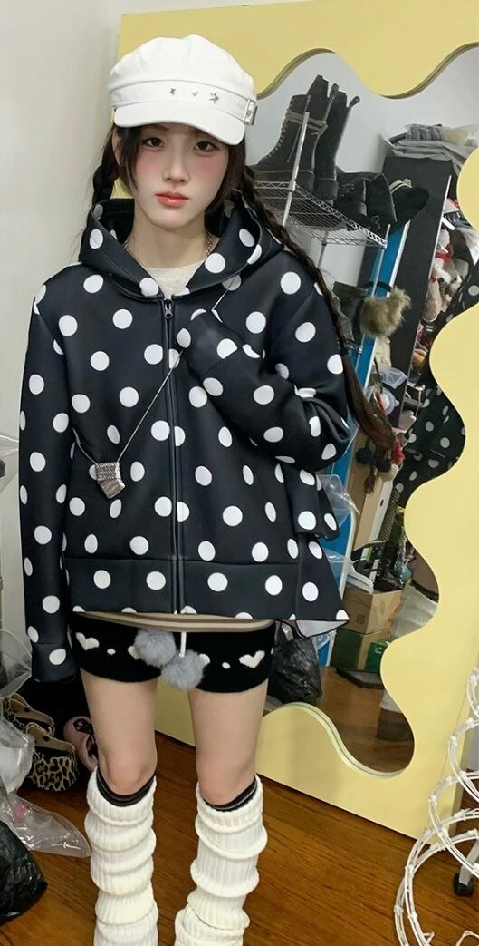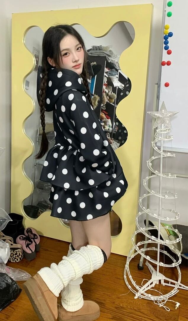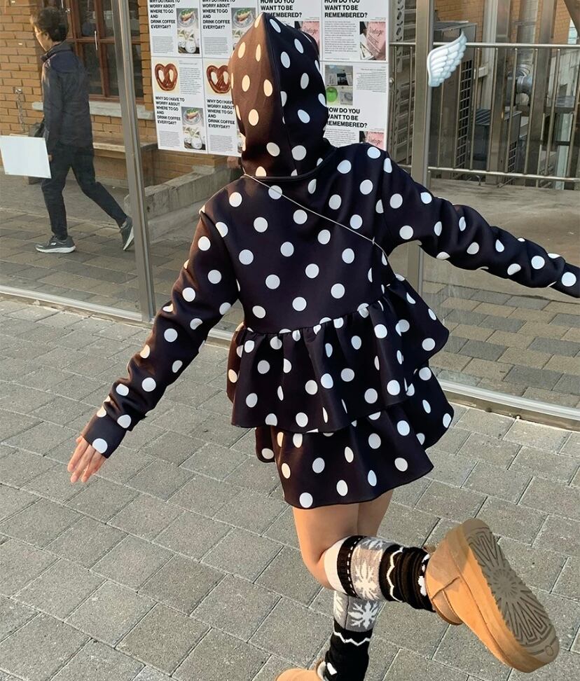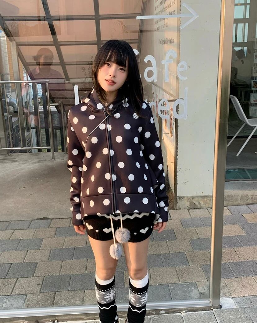 パーカー 水玉 ドット 白 黒 スウェット アウター ジャンパー