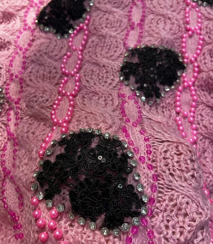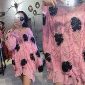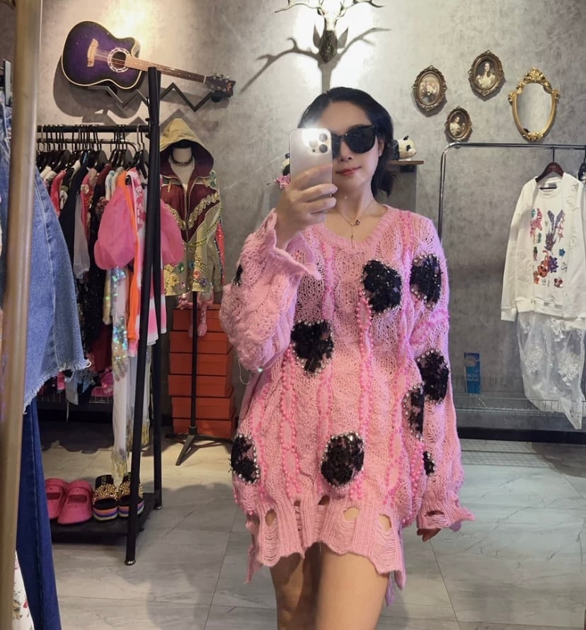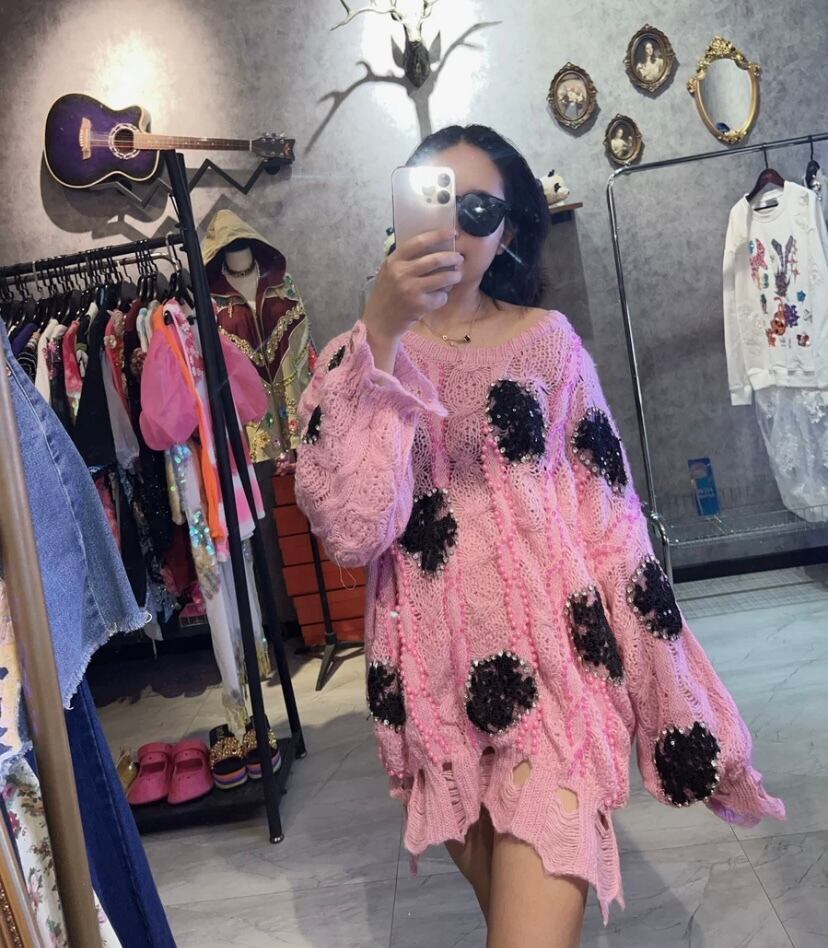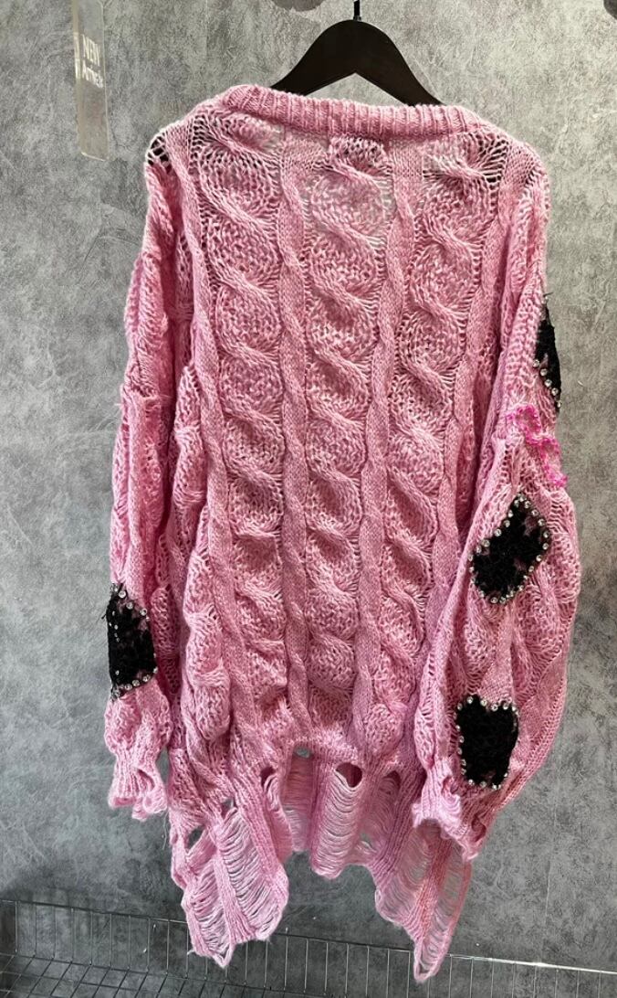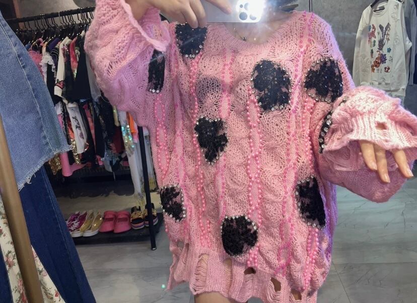 ダメージ セーター ニット 水玉 ピンク 黒 キラキラ カーディガン