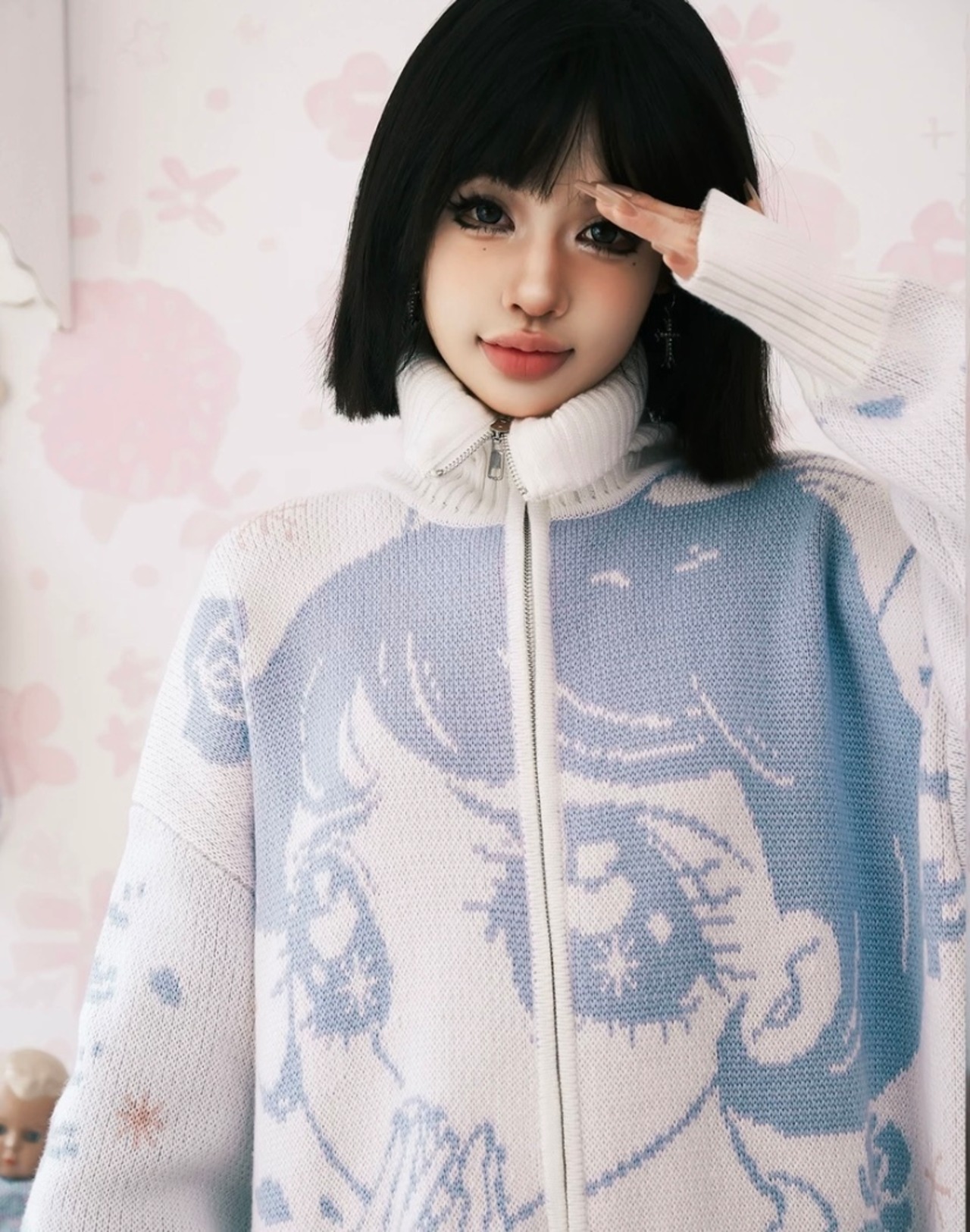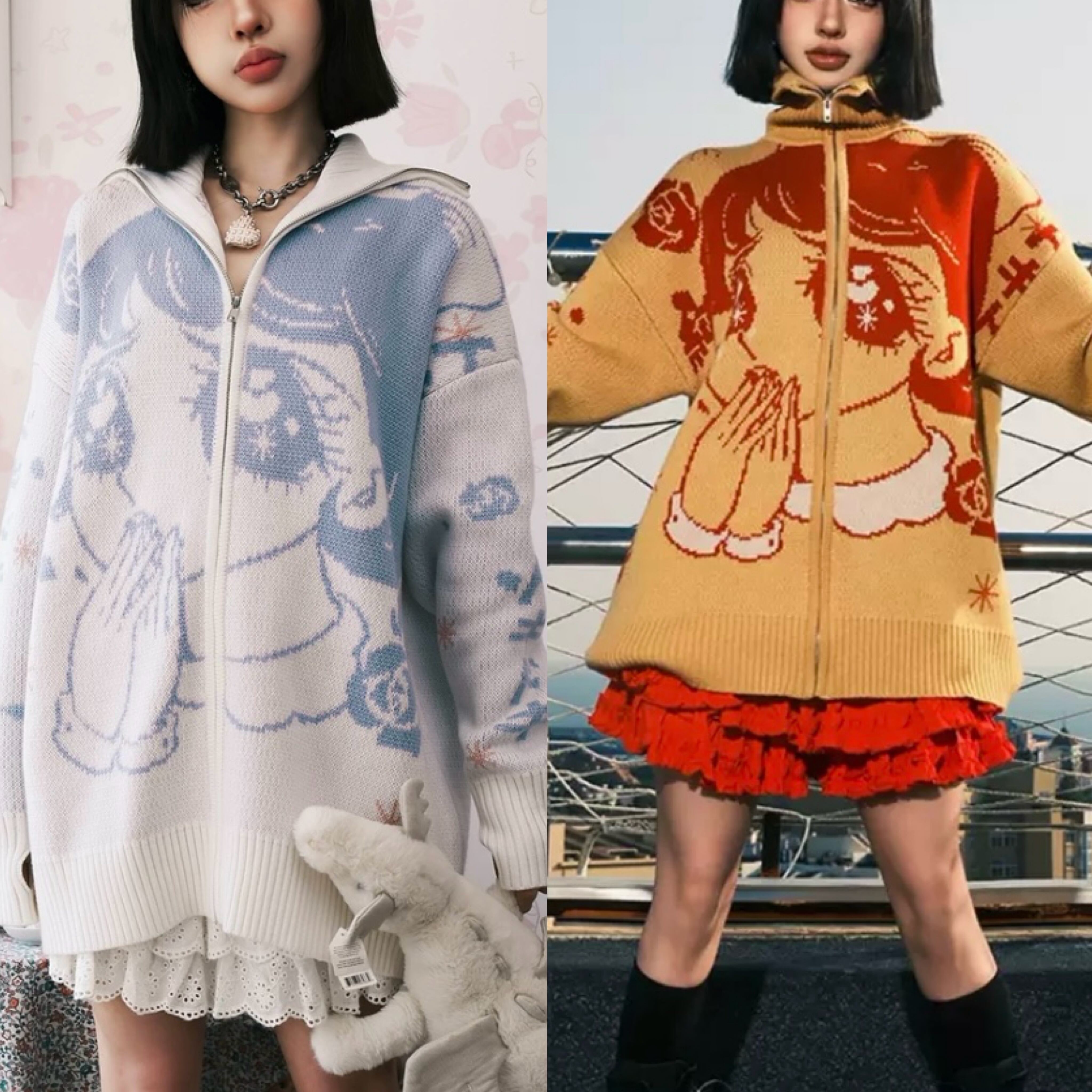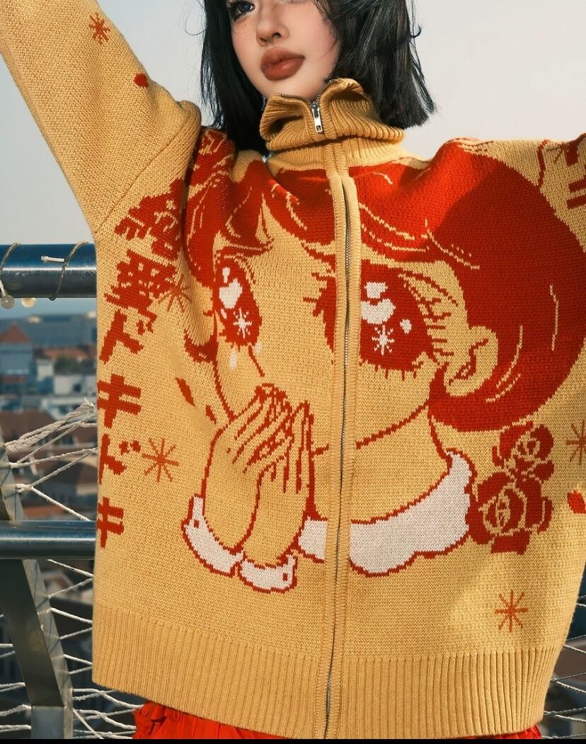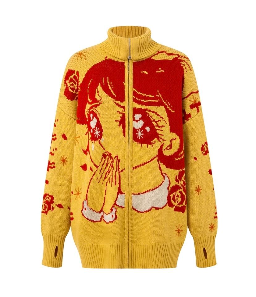 黄色 白 カーディガン セーター 可愛い ガーリー アウター 水色 黄色 赤 白