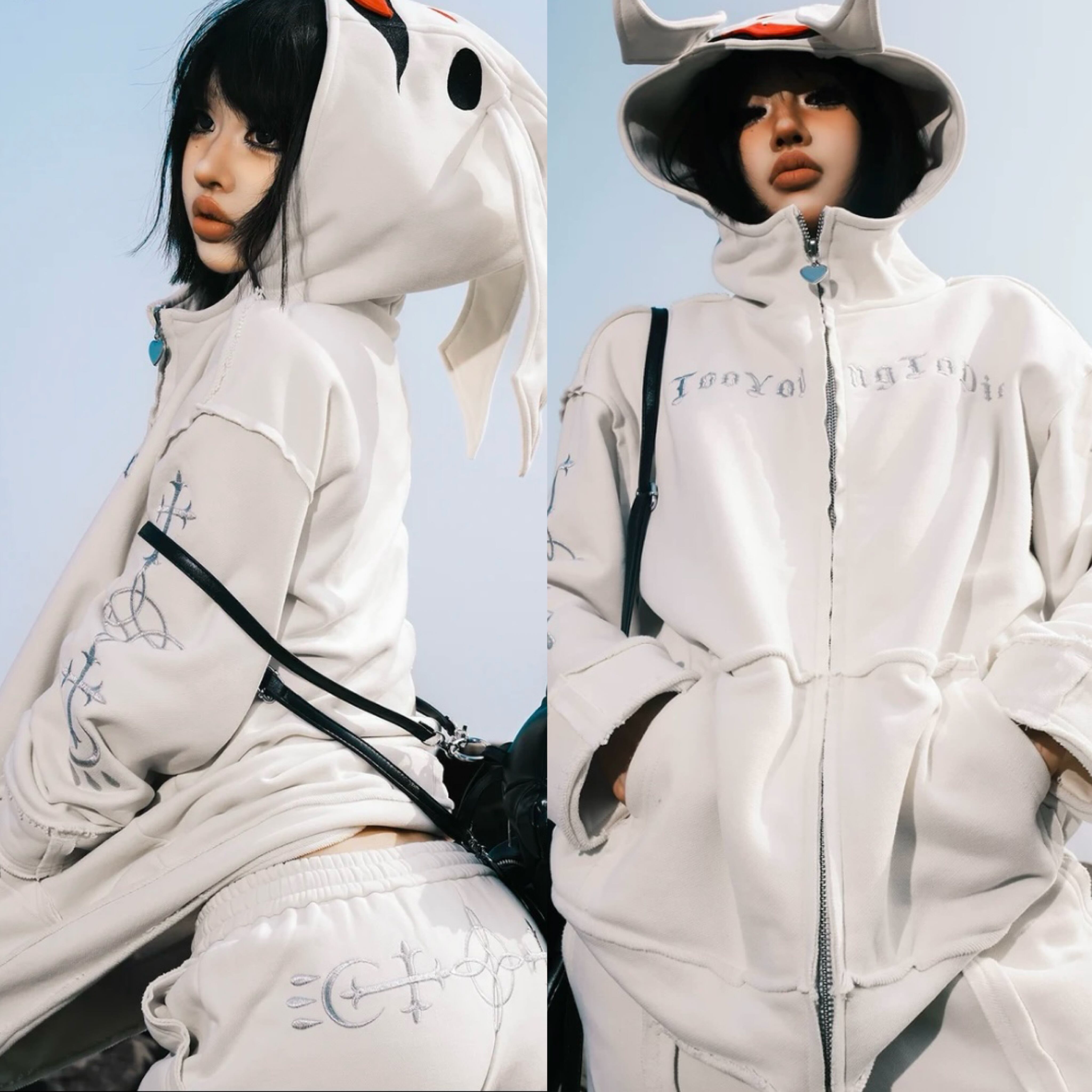 パーカー スウェット トレーナー アウター 白 モンスター カジュアル スウェット