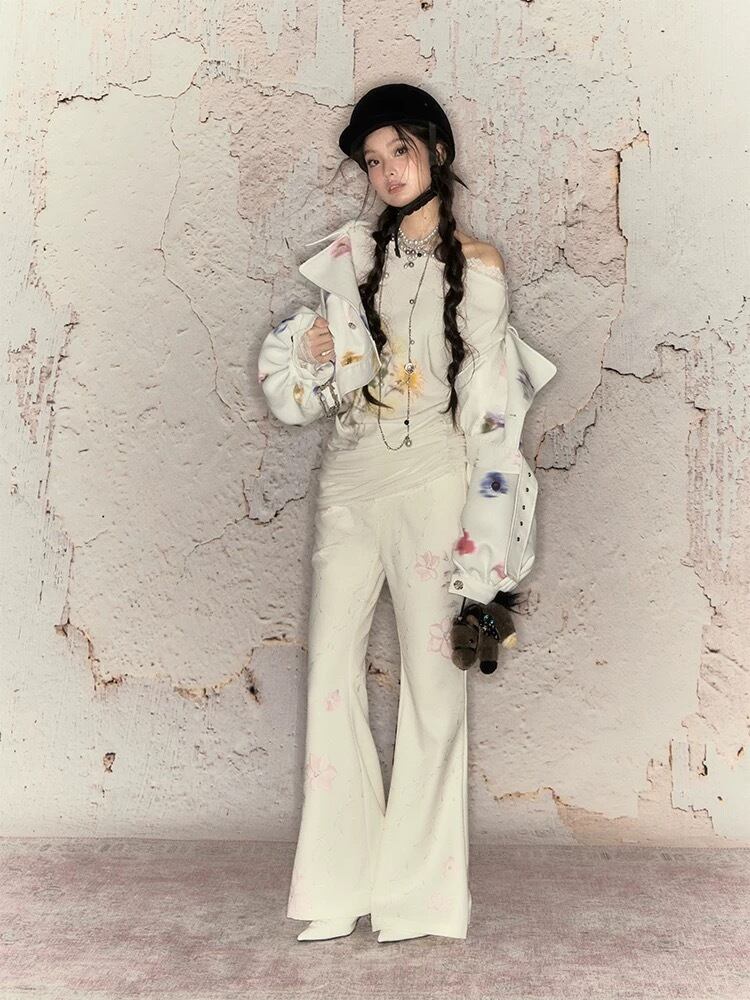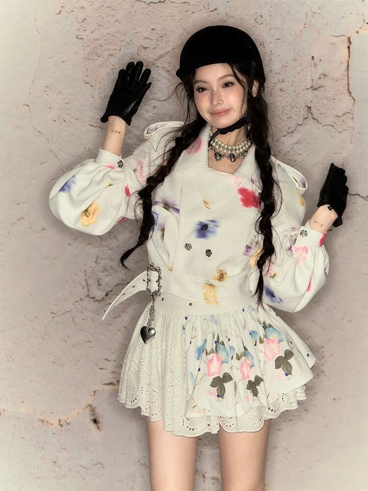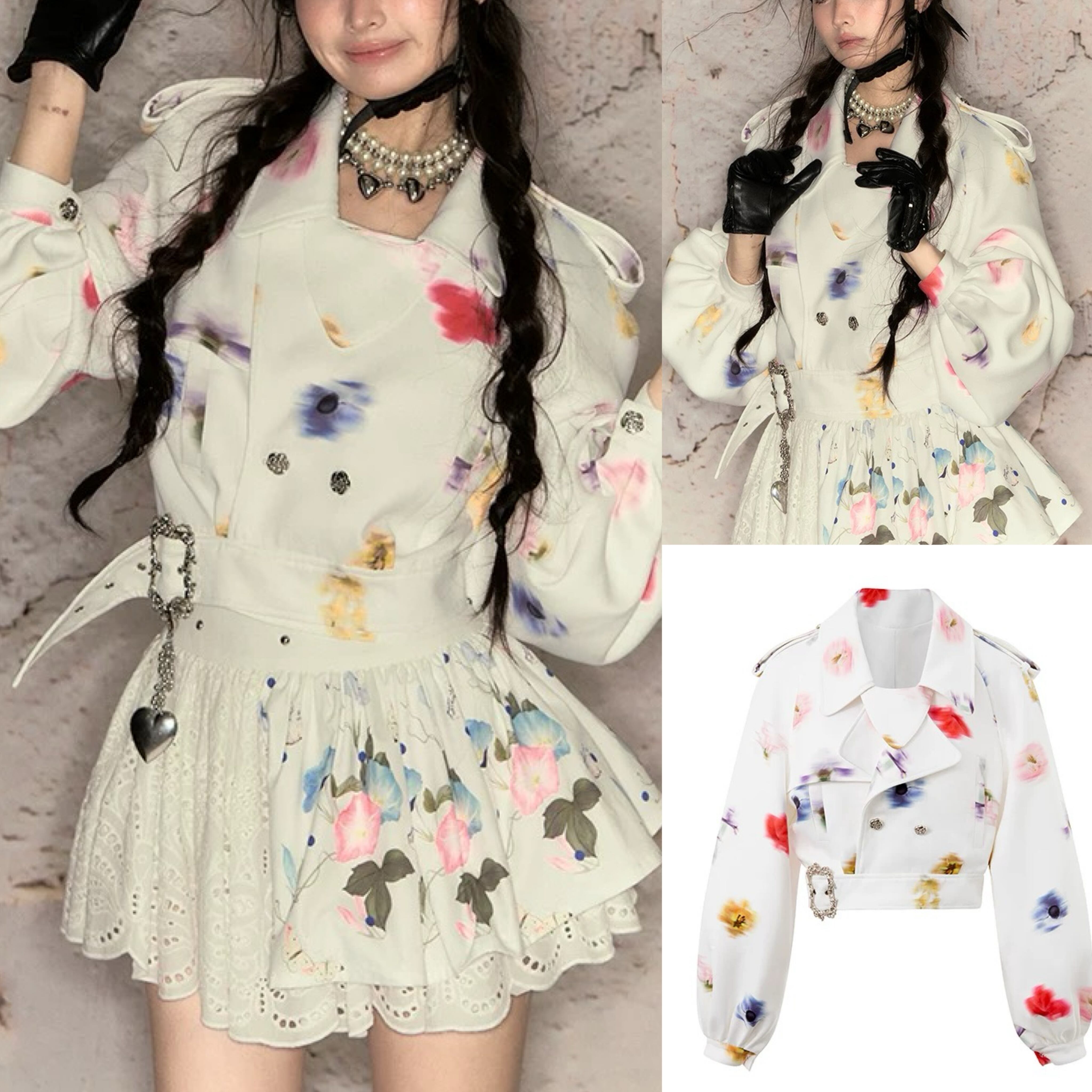 【ジャケット】アウター 花柄 白 爽やか ブルゾン カーディガン コート