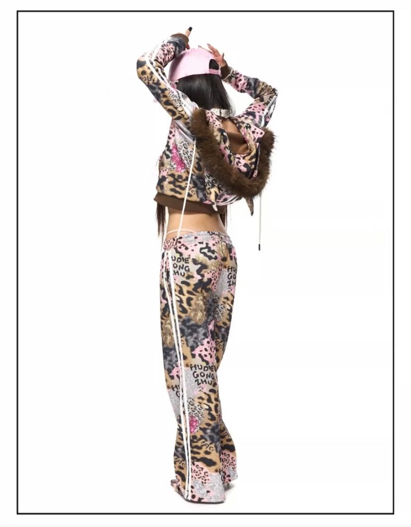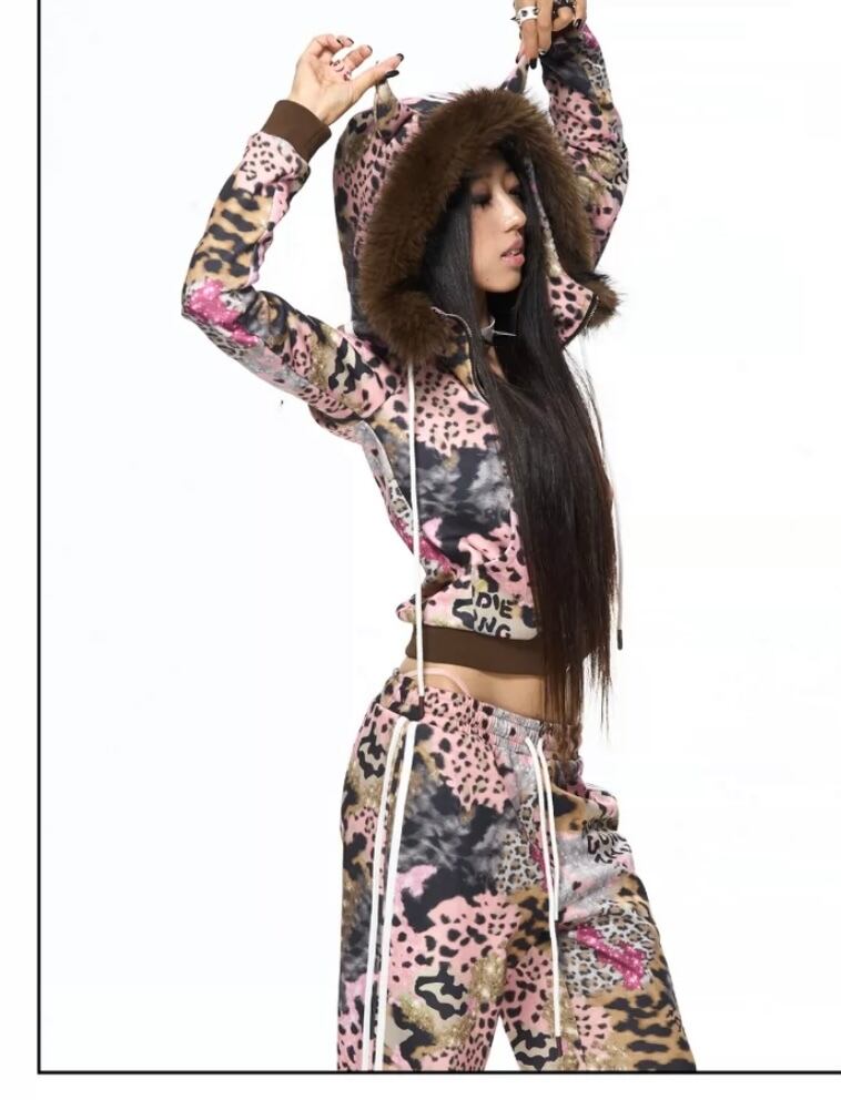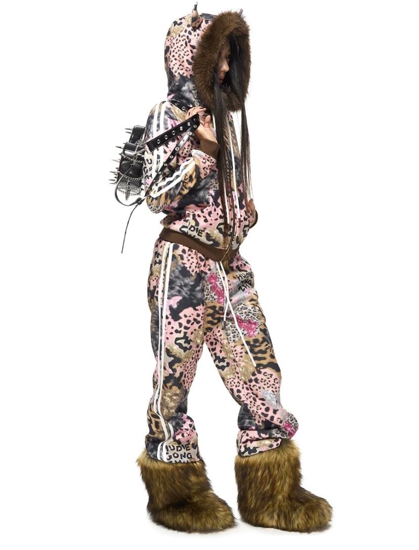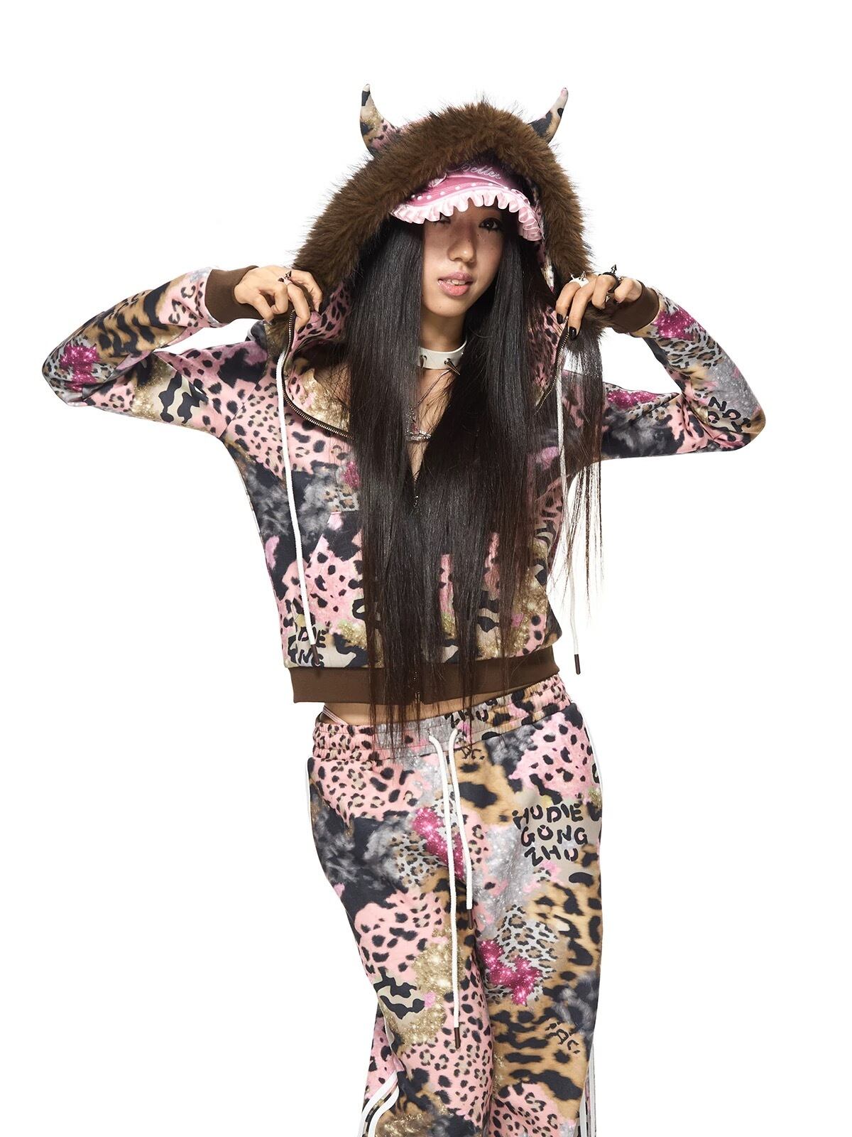 【パーカー】カジュアル トレーナー レオパード 茶色 スウェット
