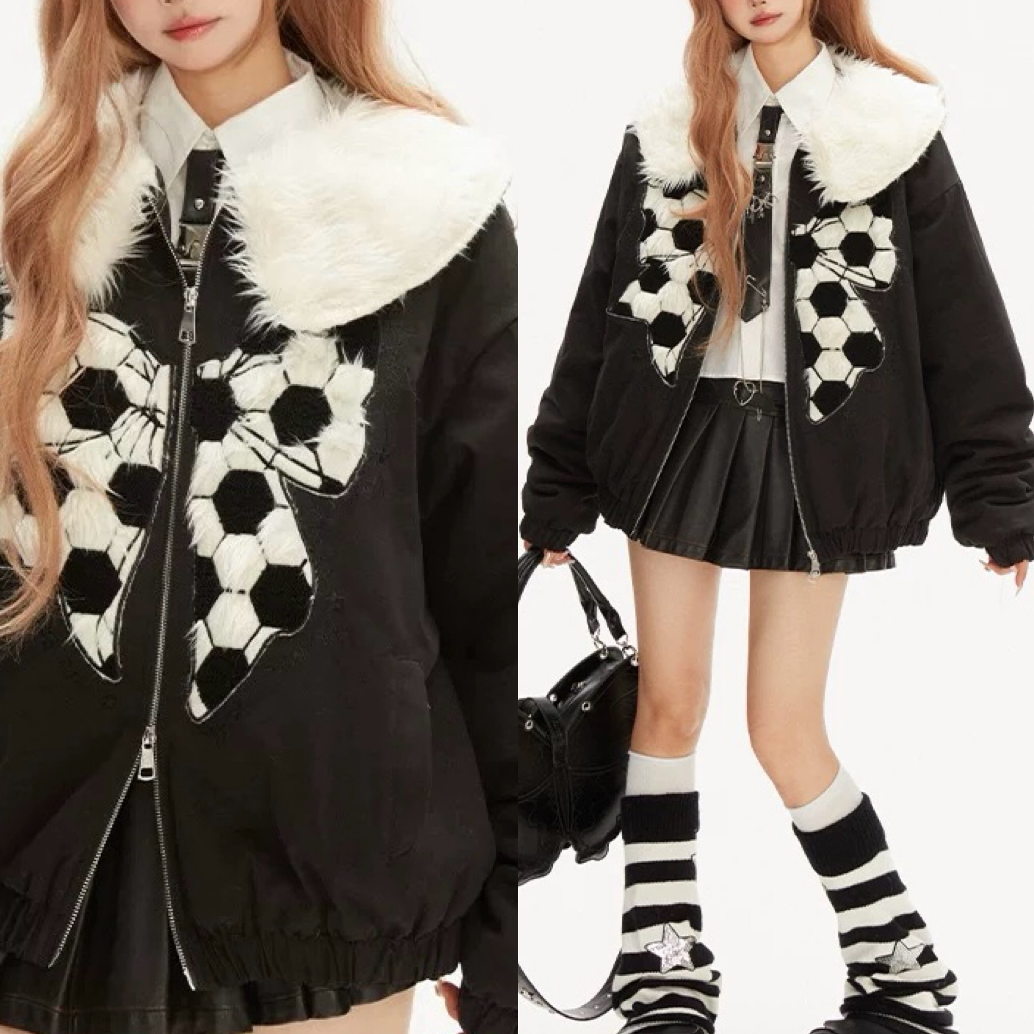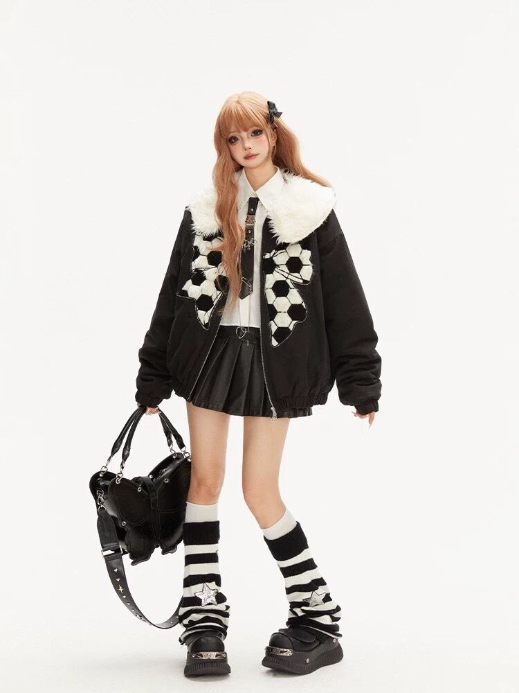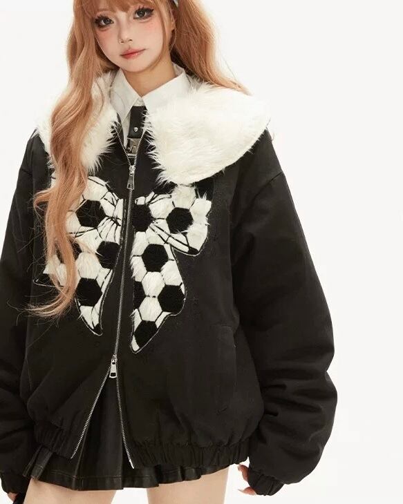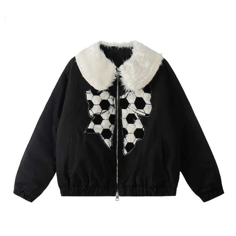 サッカー 黒 アウター ジャケット コート ブルゾン 丸襟 サッカー 黒