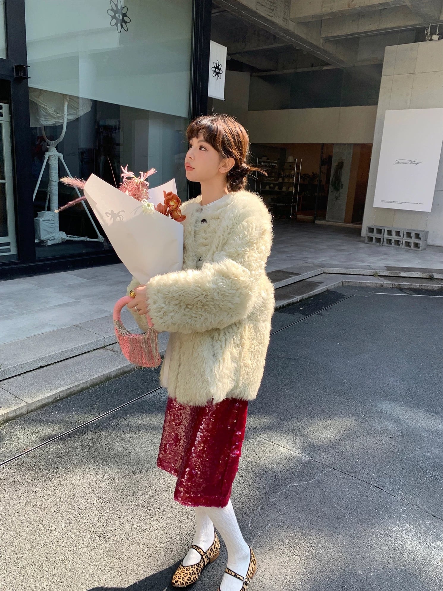 スパンコール キラキラ スカート 赤 ボトムス タイト うろこ