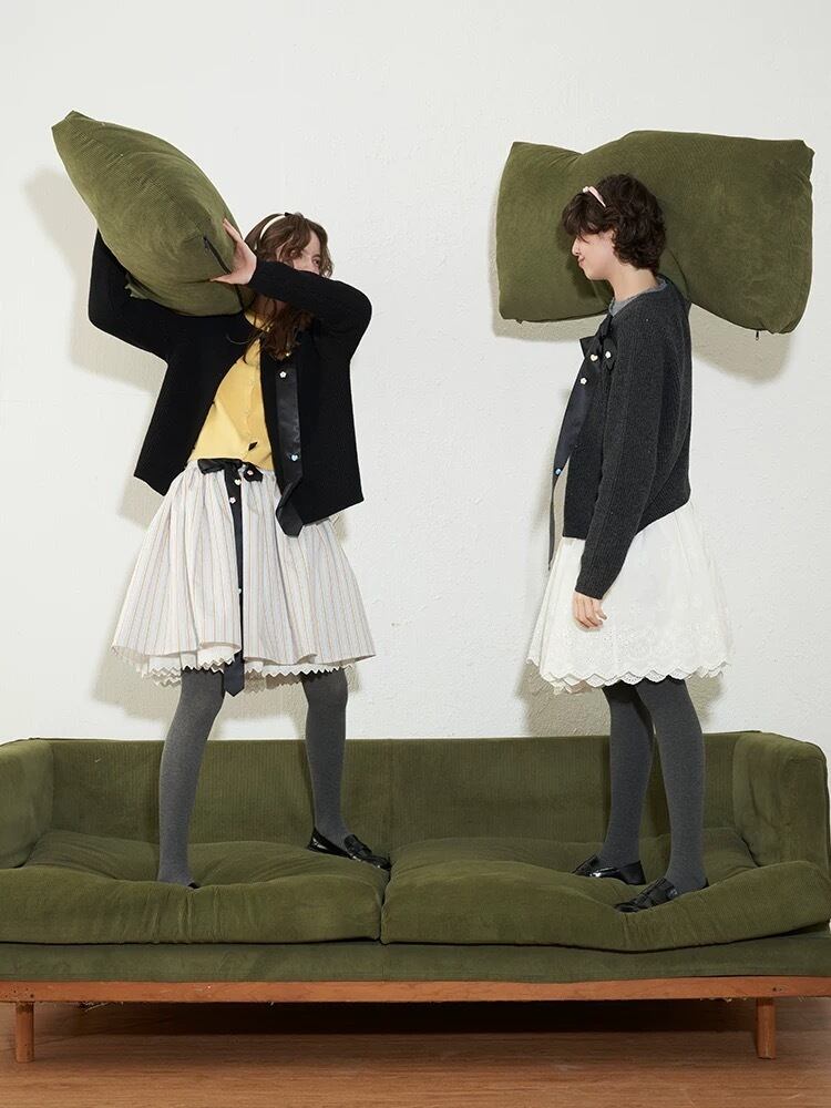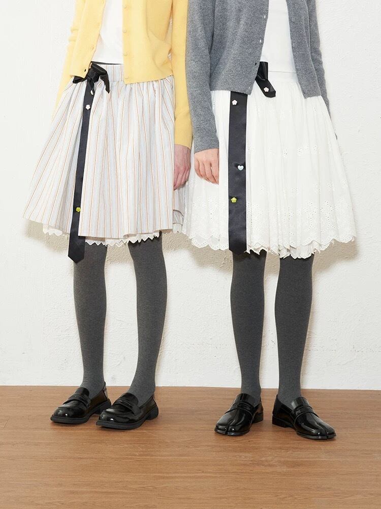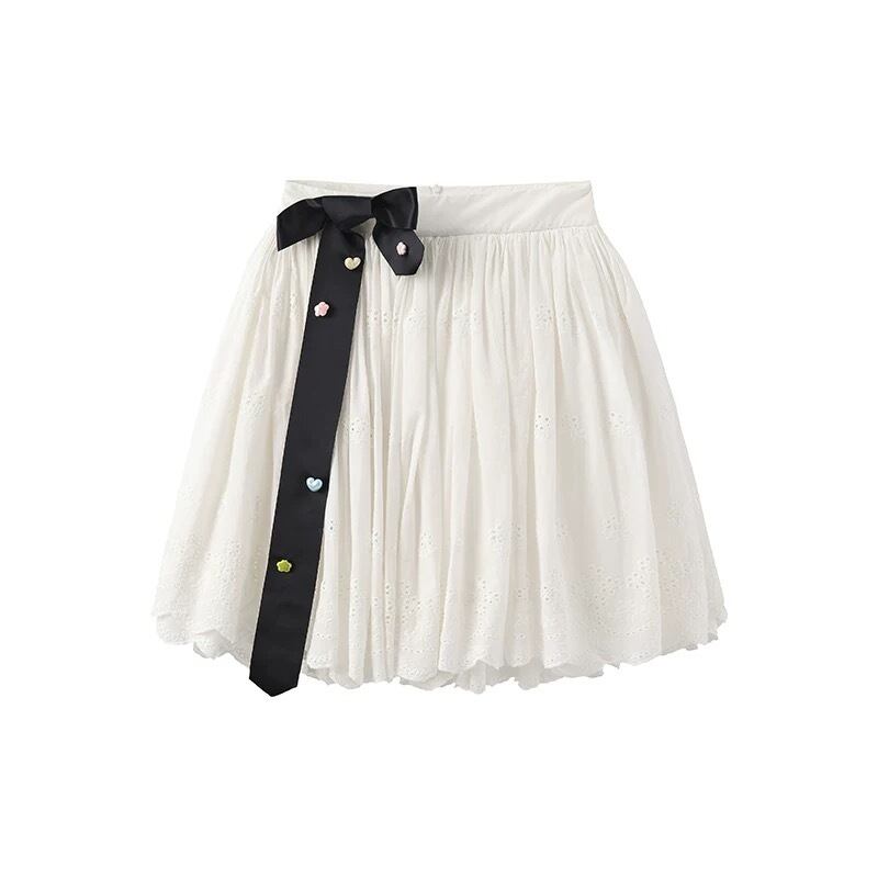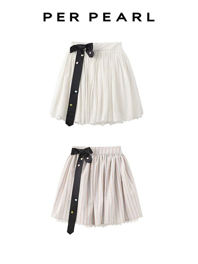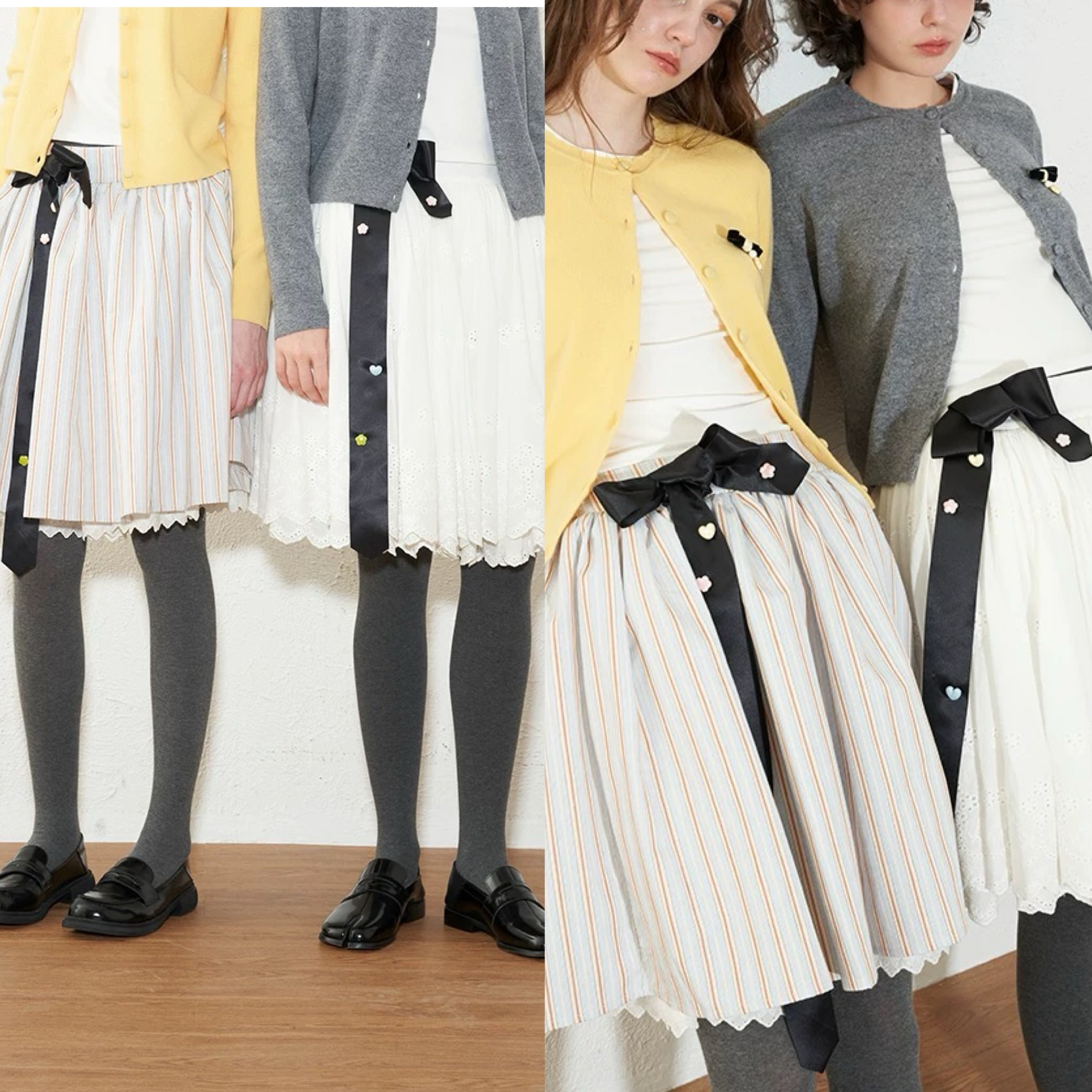 フレア シンプル リボン カジュアル 白 膝 スカート ボトムス チェック