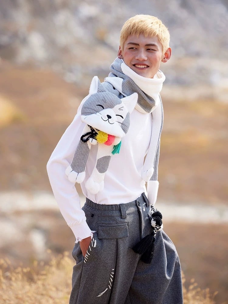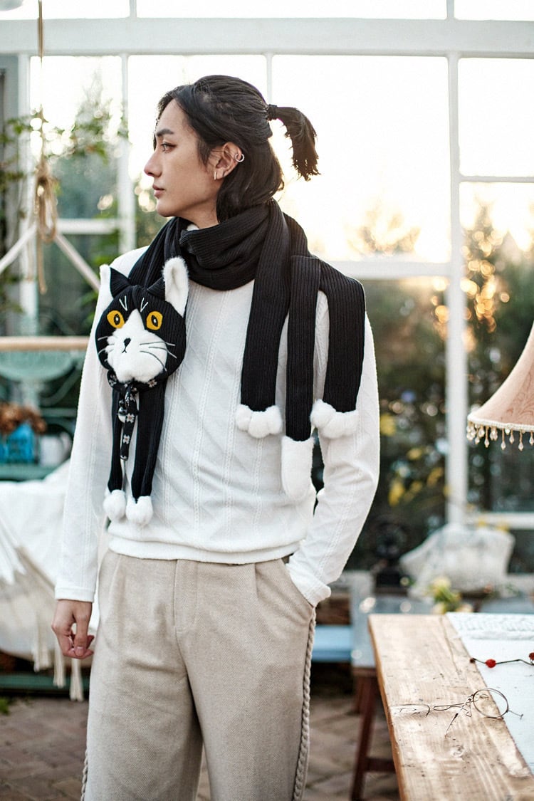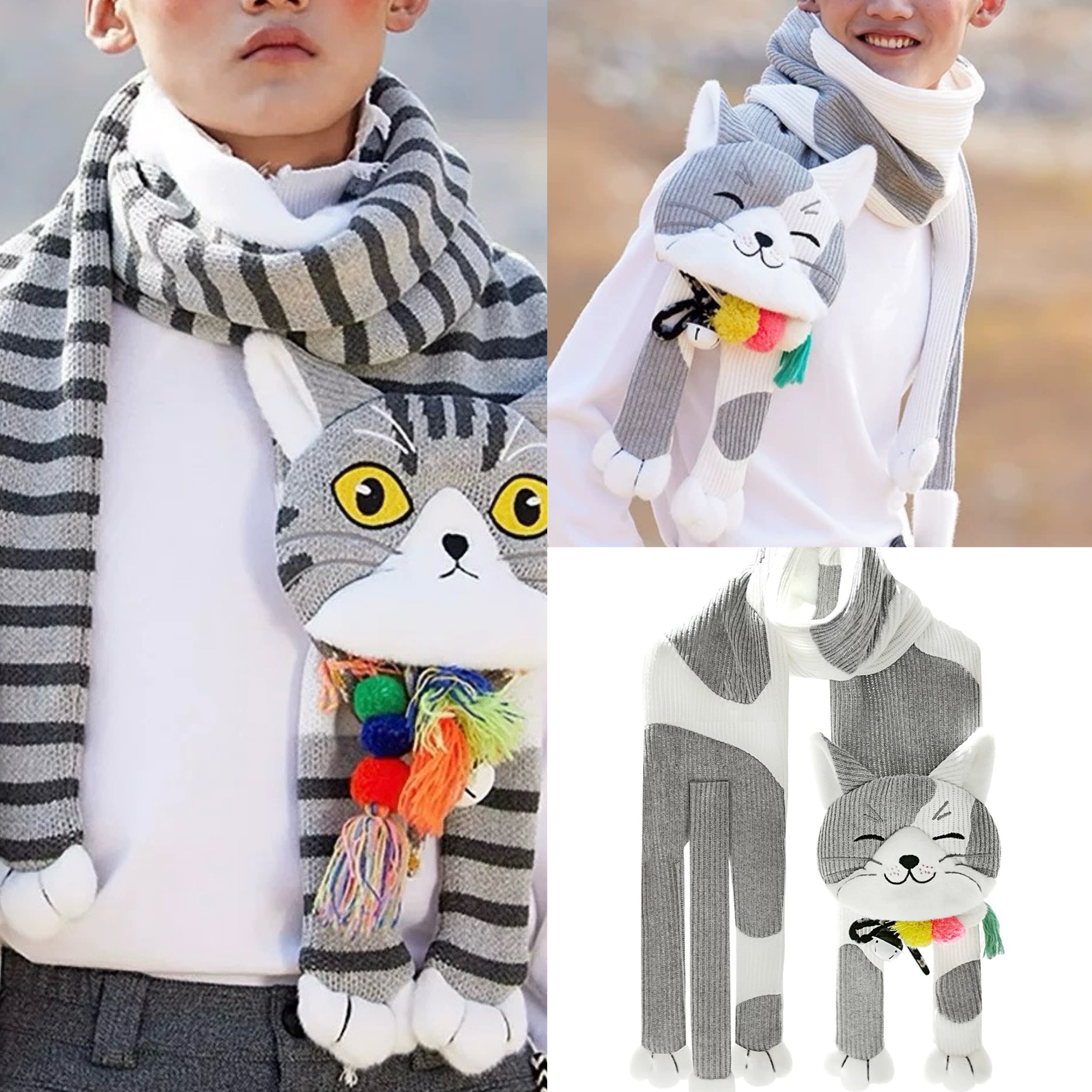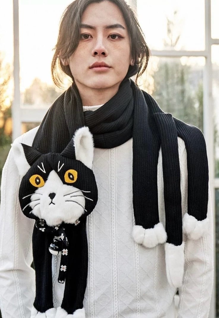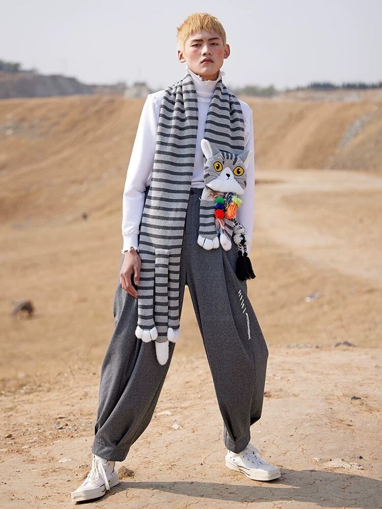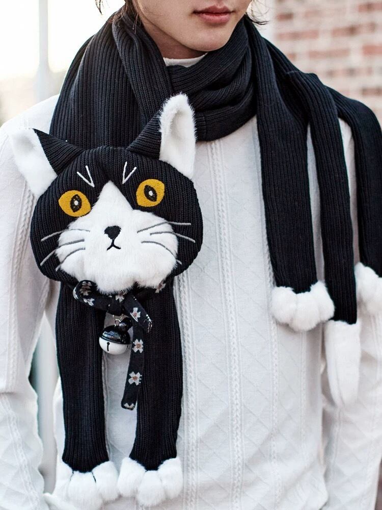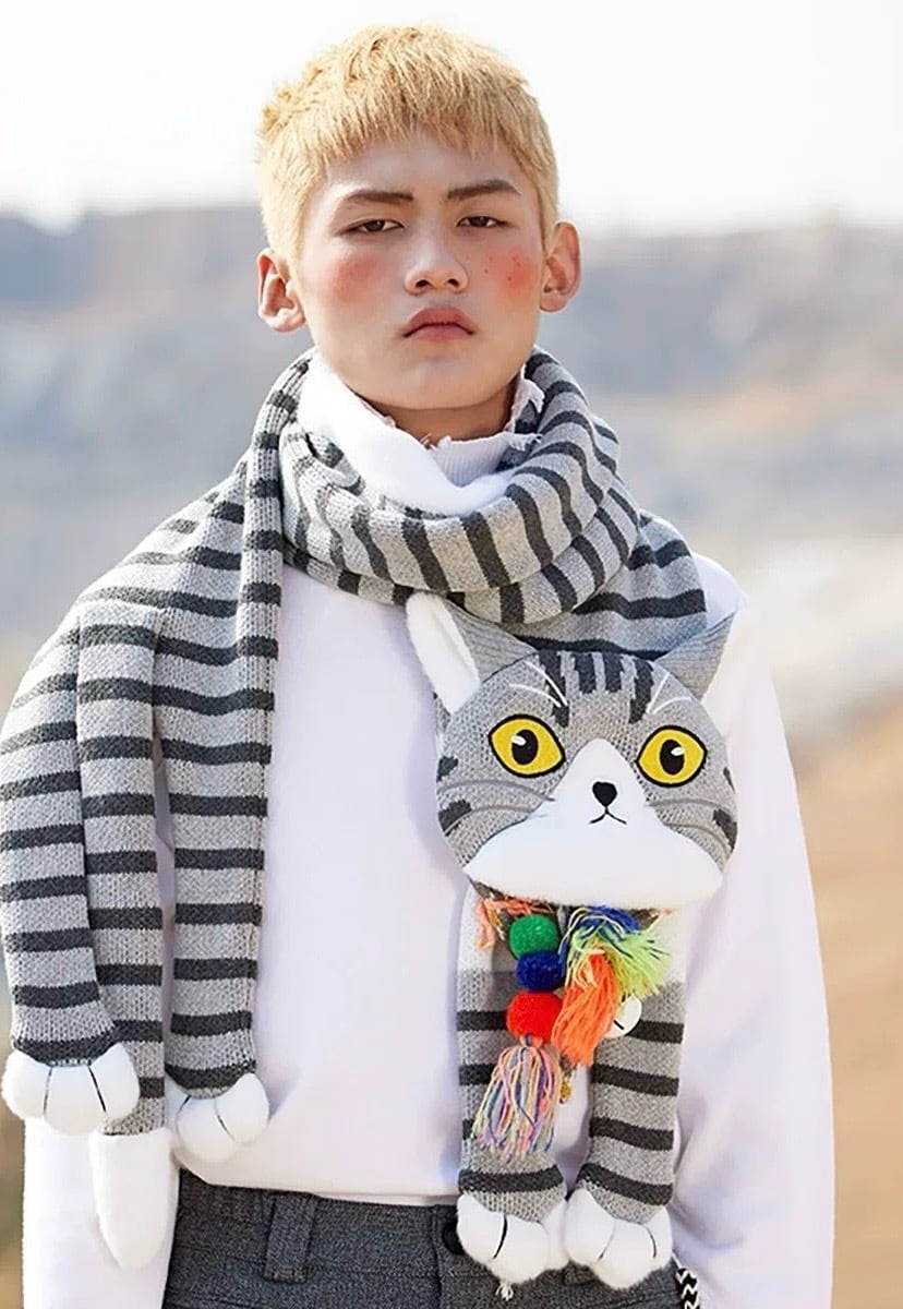 しましま ねこちゃん グレー ねこ マフラー ショール ロング 可愛い