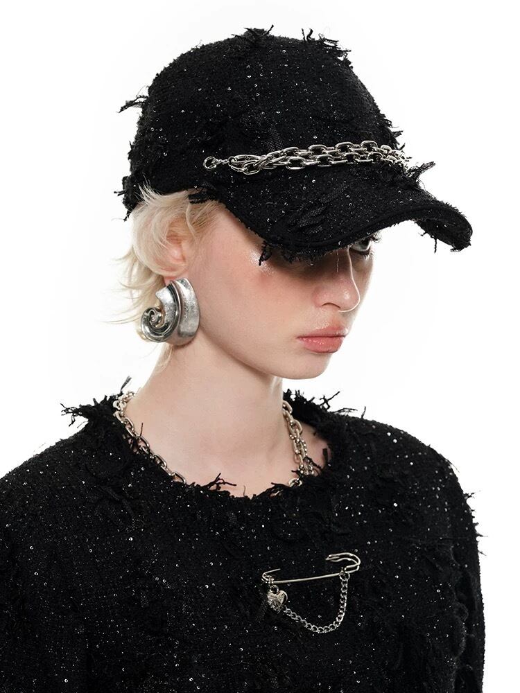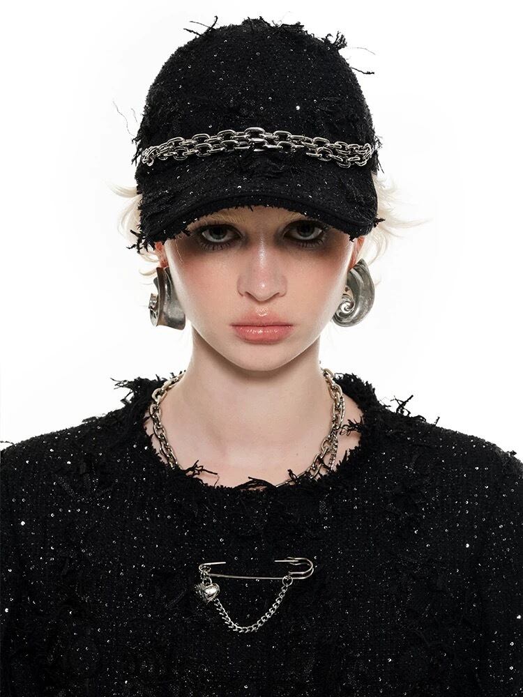 黒 ツイード ブラック 帽子 ヘアアクセサリー キャップ キラキラ