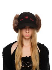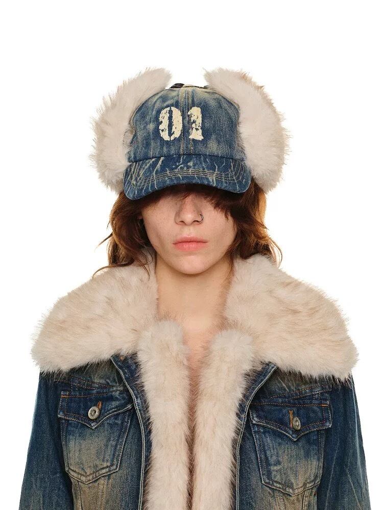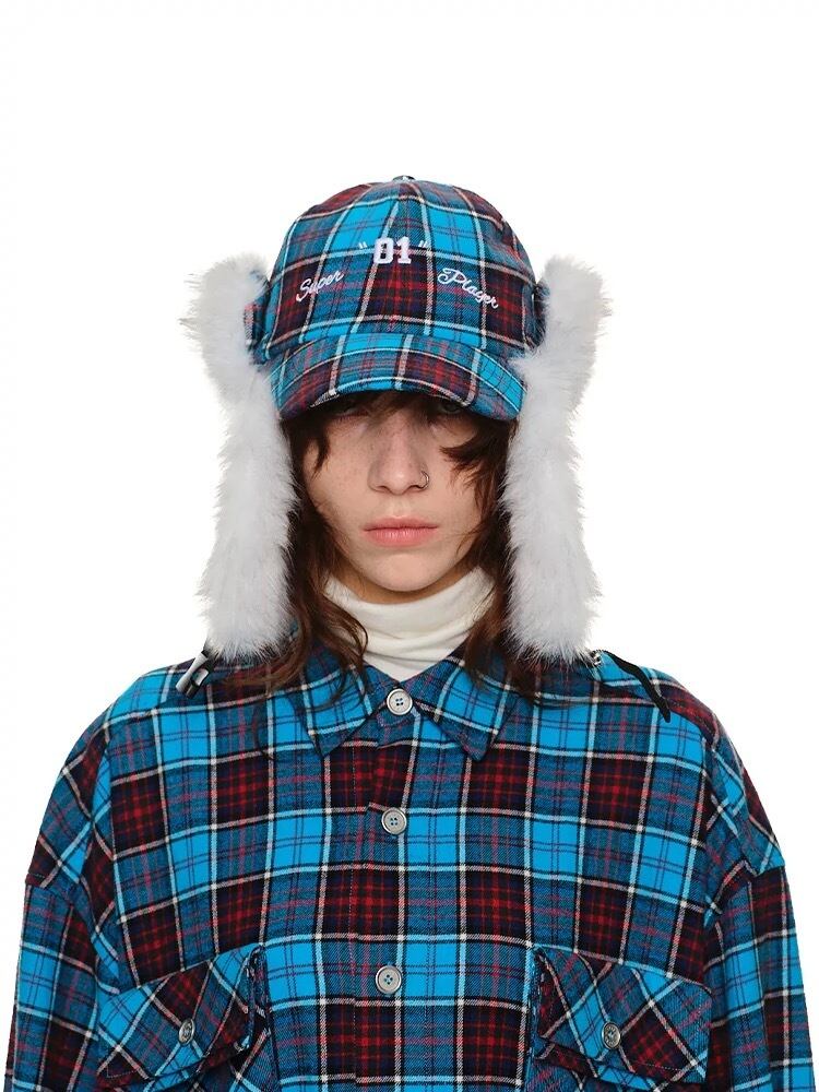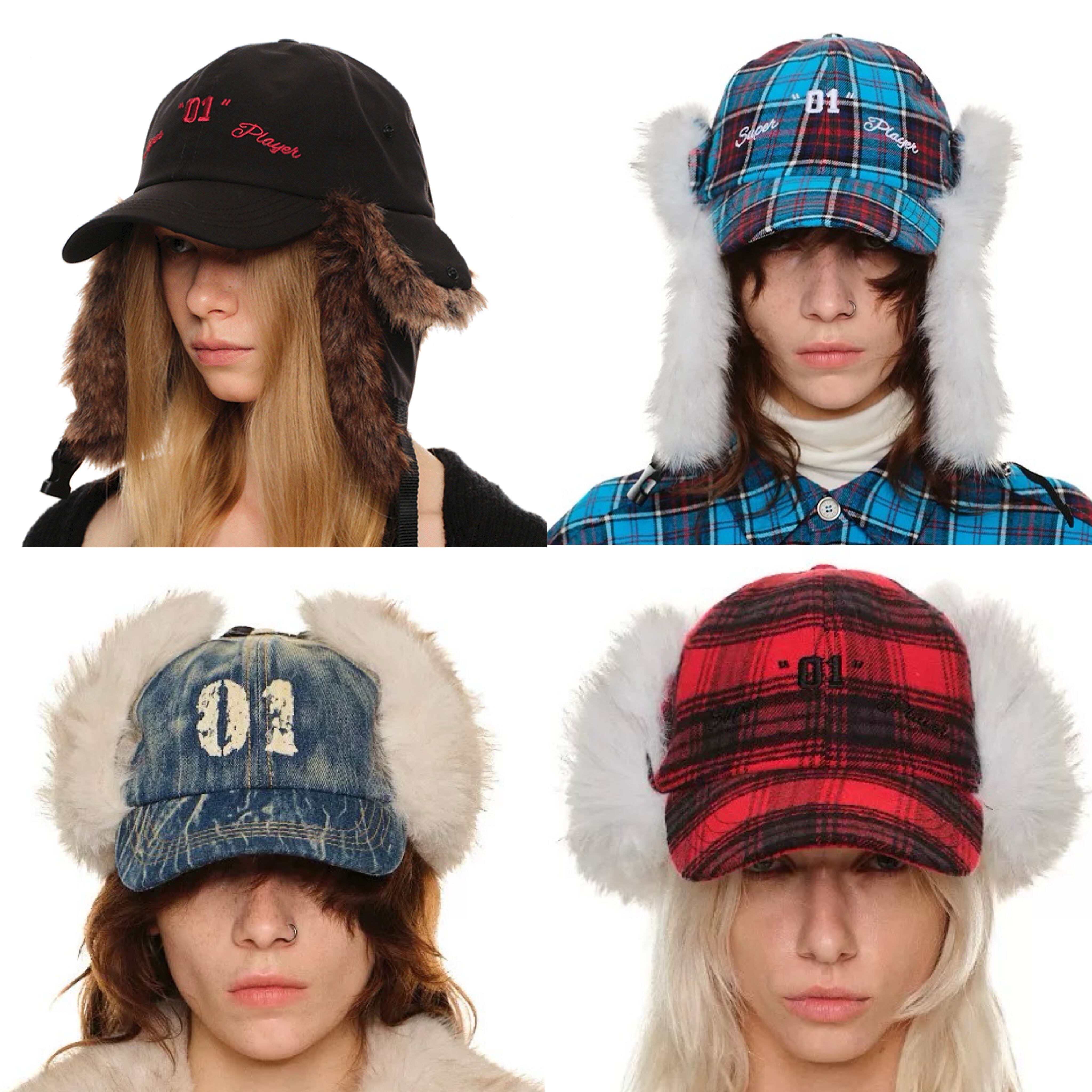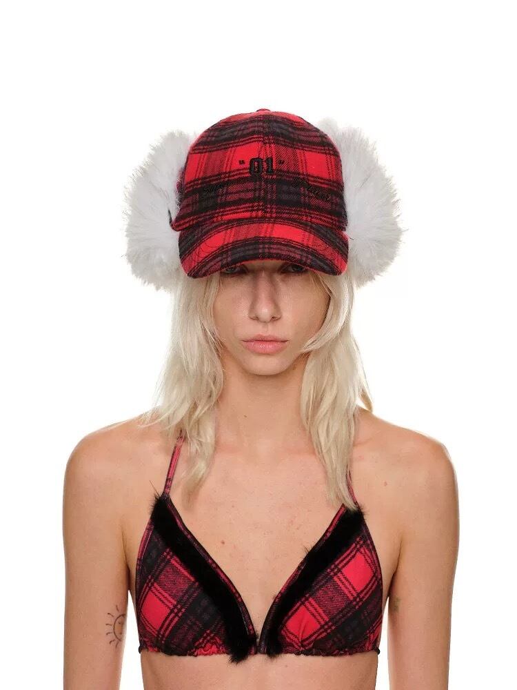 キャップ 赤 水色 チェック 黒 ファー 帽子 ヘアアクセサリー デニム 01 チェック 赤 耳あて イヤーカフ イヤーアーム