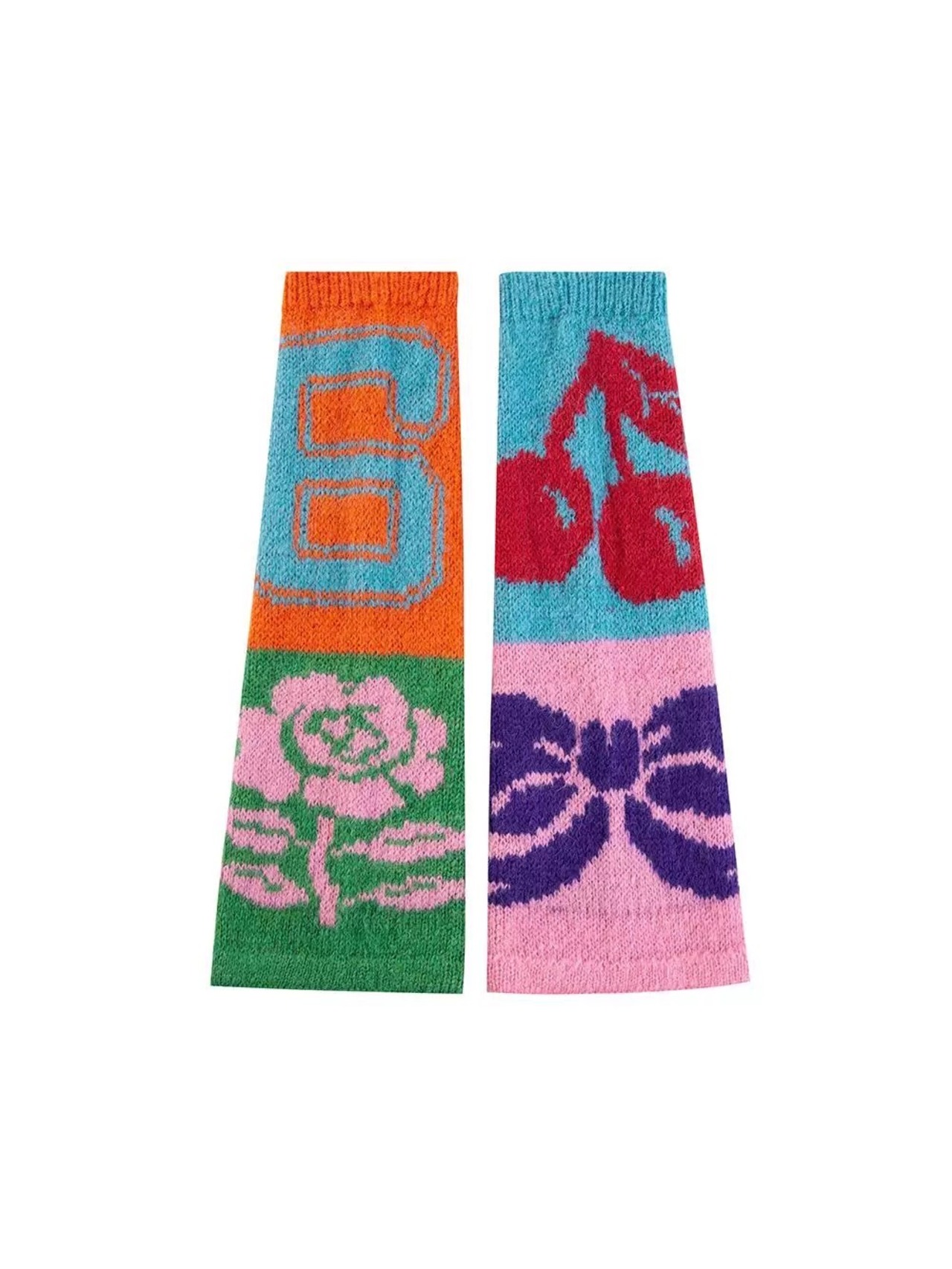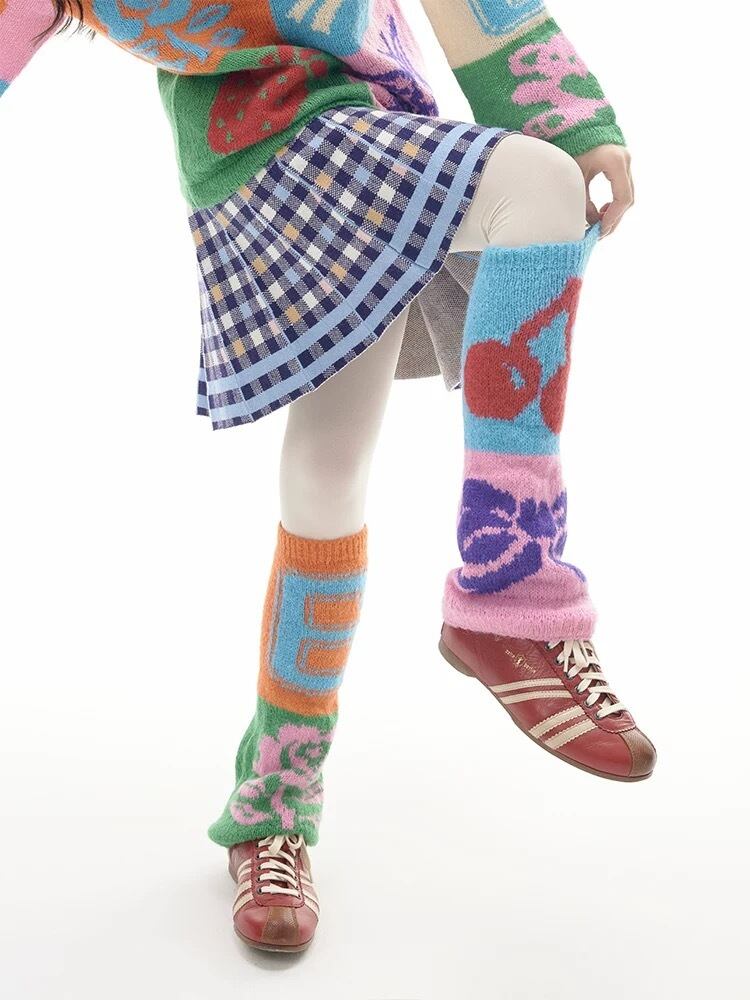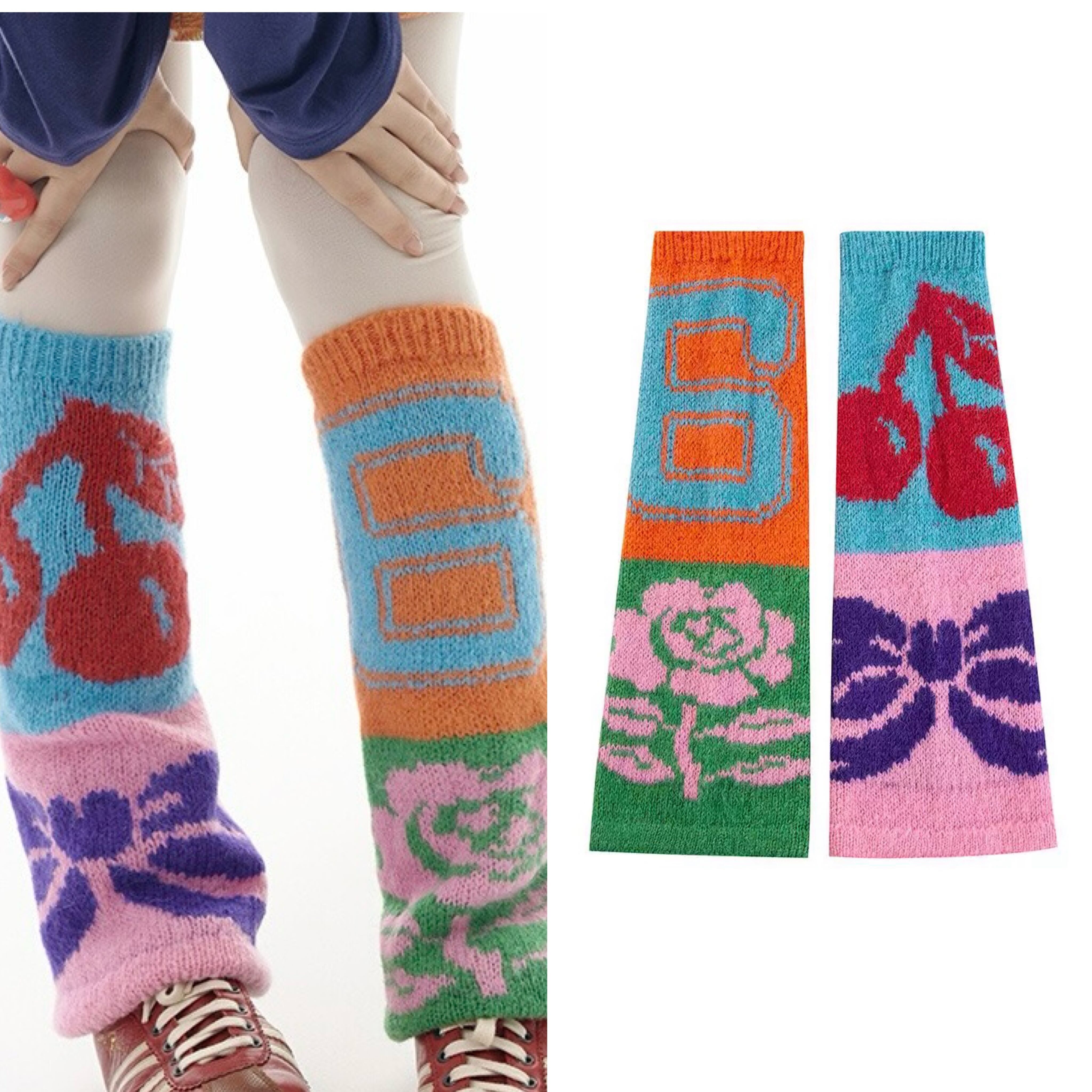 レッグウォーマー 靴下 タイツ カラフル 水色 緑 オレンジ 花柄 フラワー