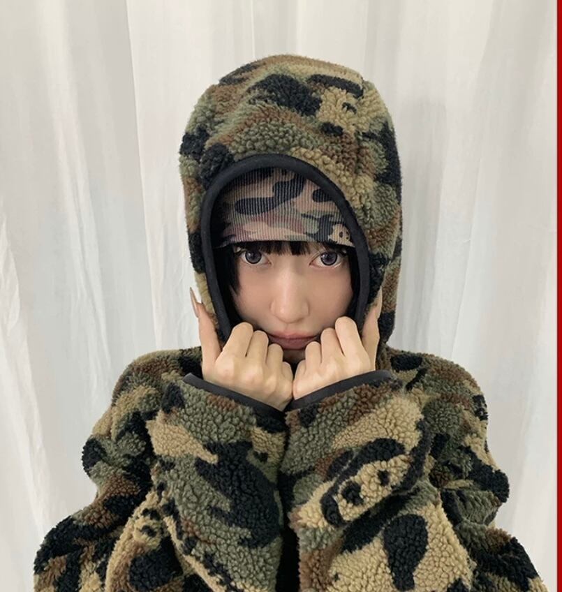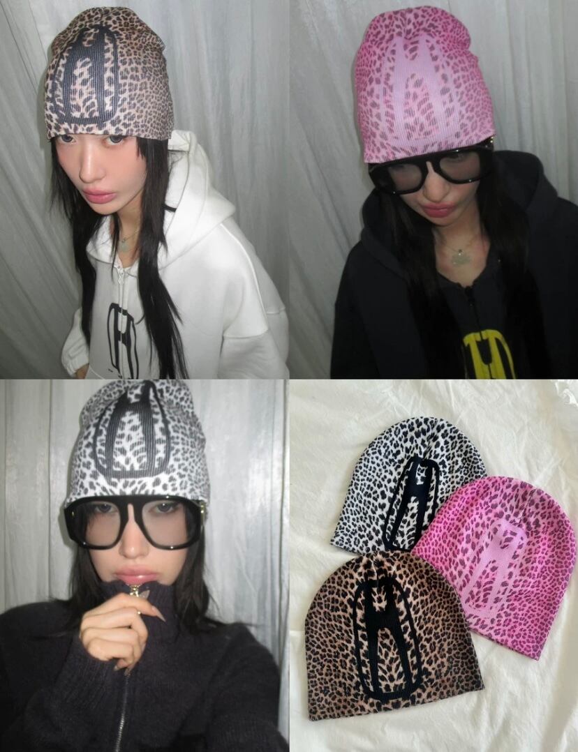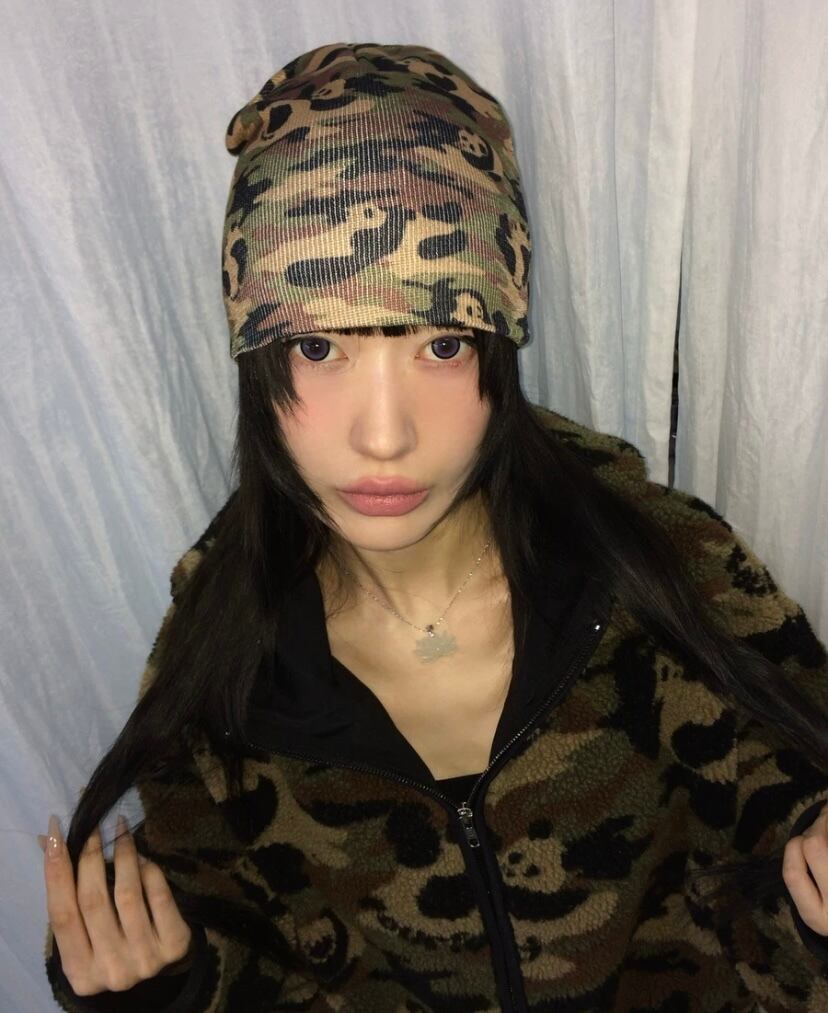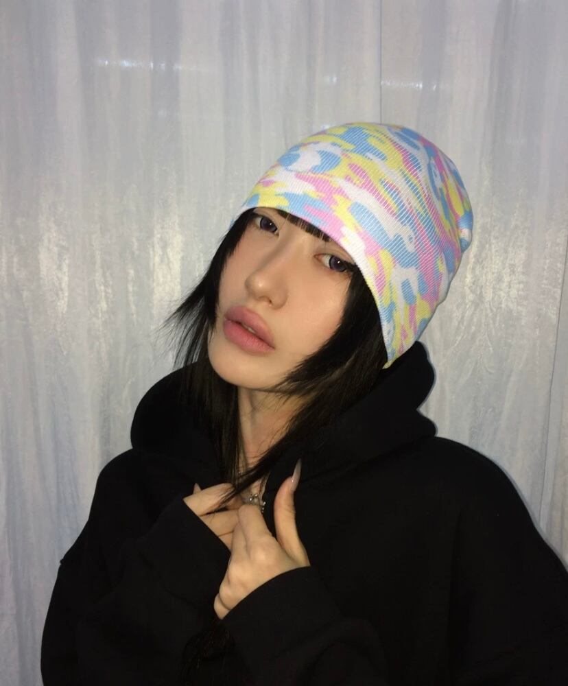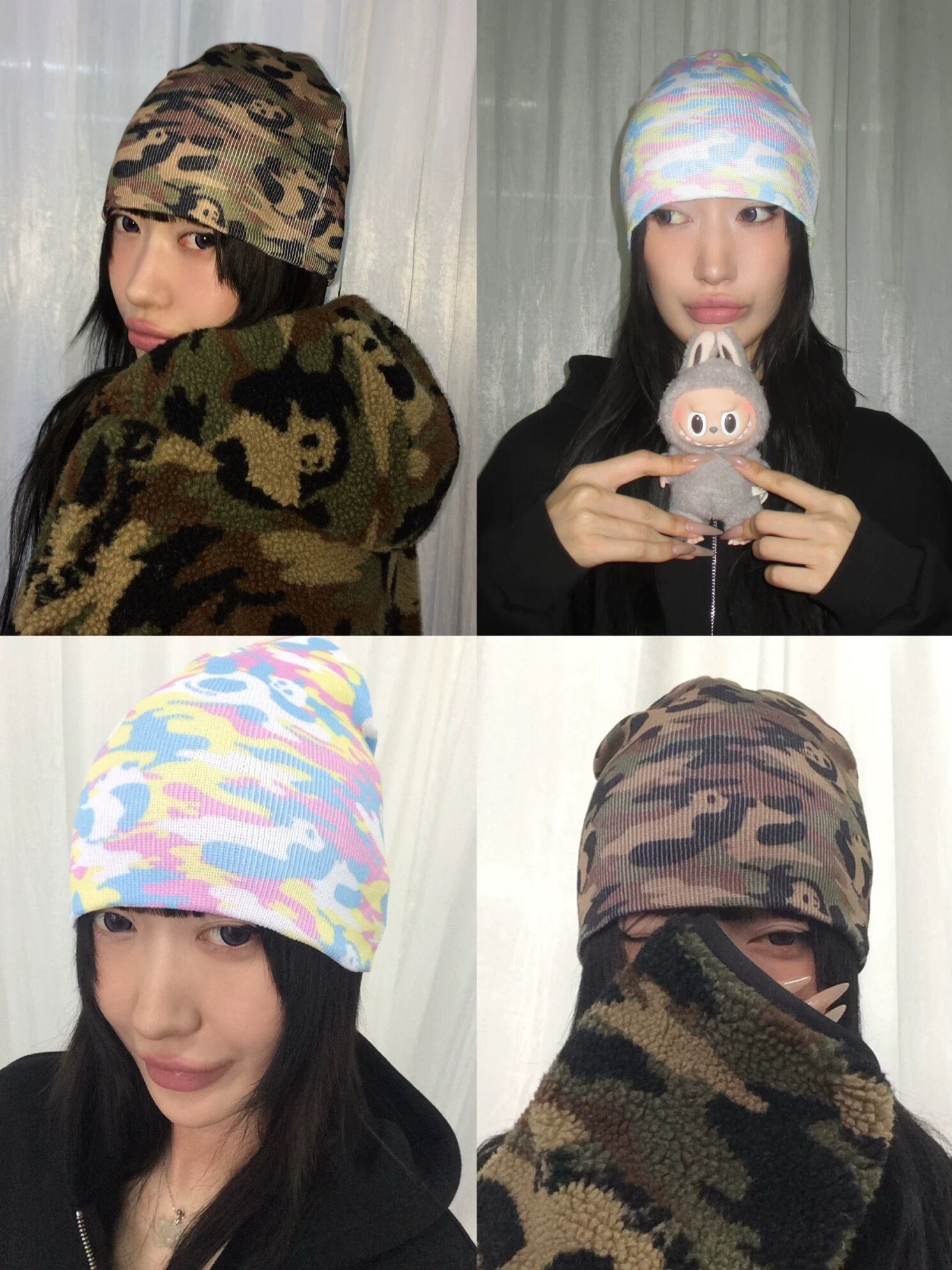 カラフル 迷彩 カモフラージュ ニット帽 ピンク グレー 帽子 キャップ