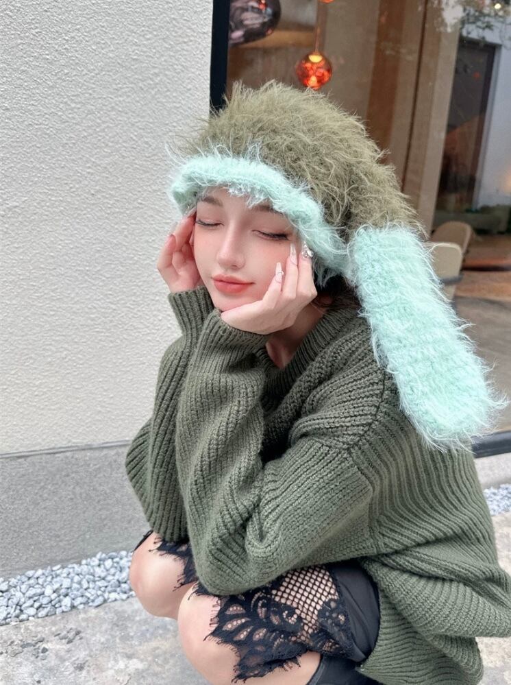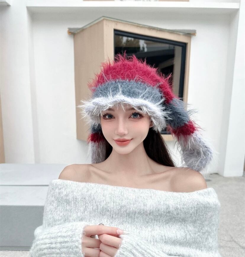 うさぎ うさみみ 帽子 キャップ ピンク ボーダー 赤 グレー 緑 水色 可愛い