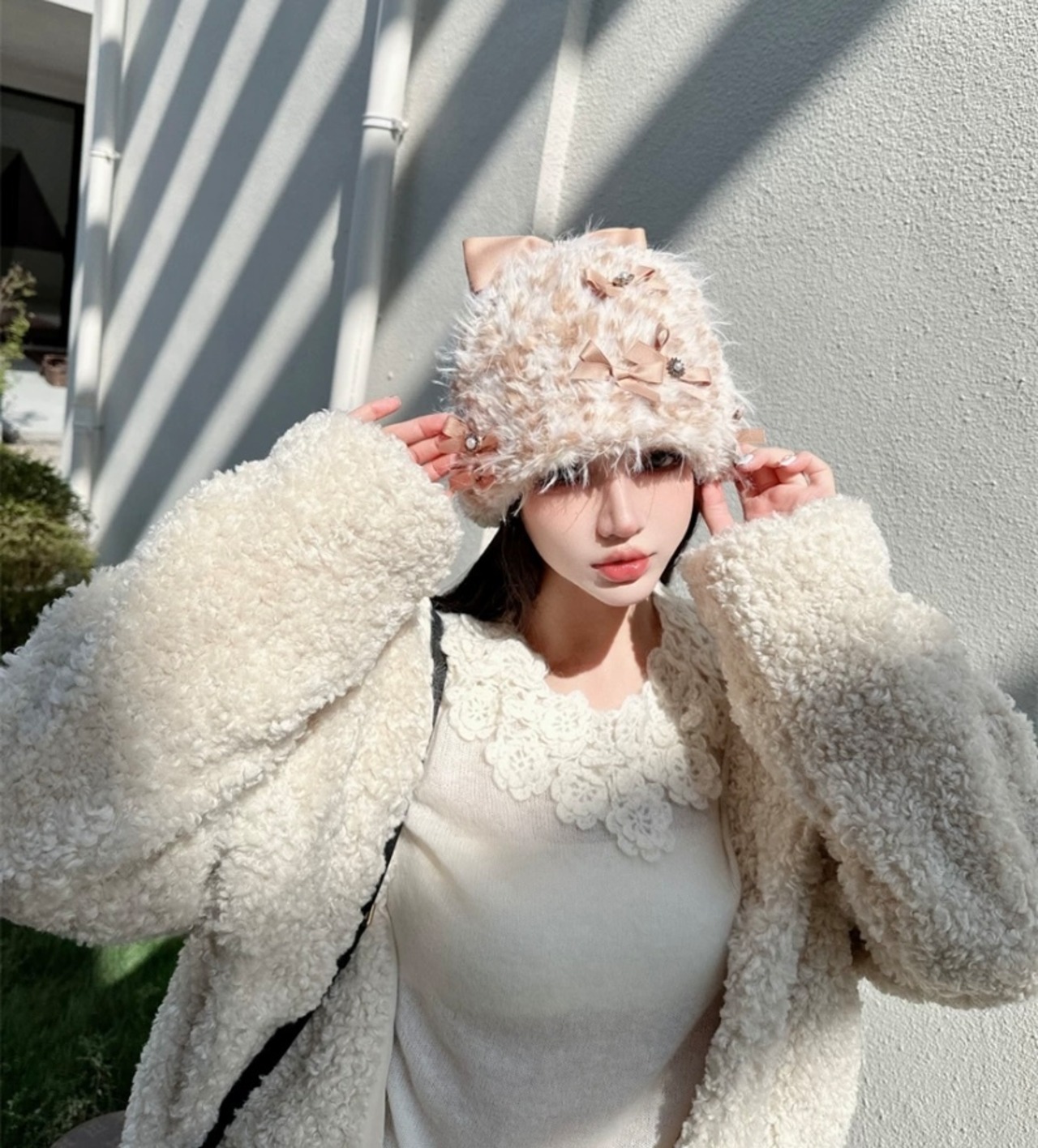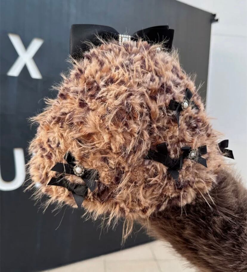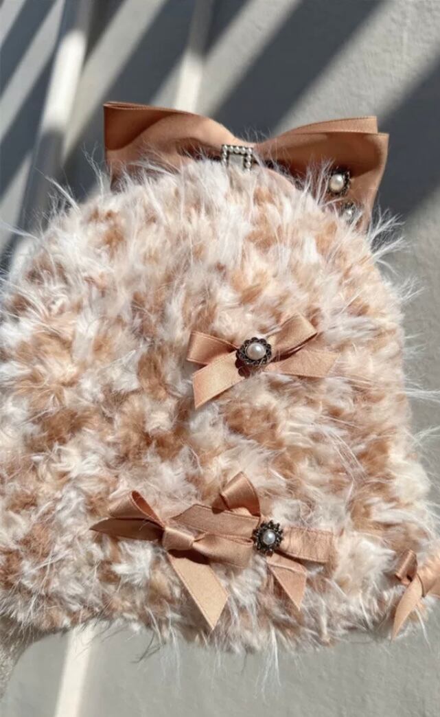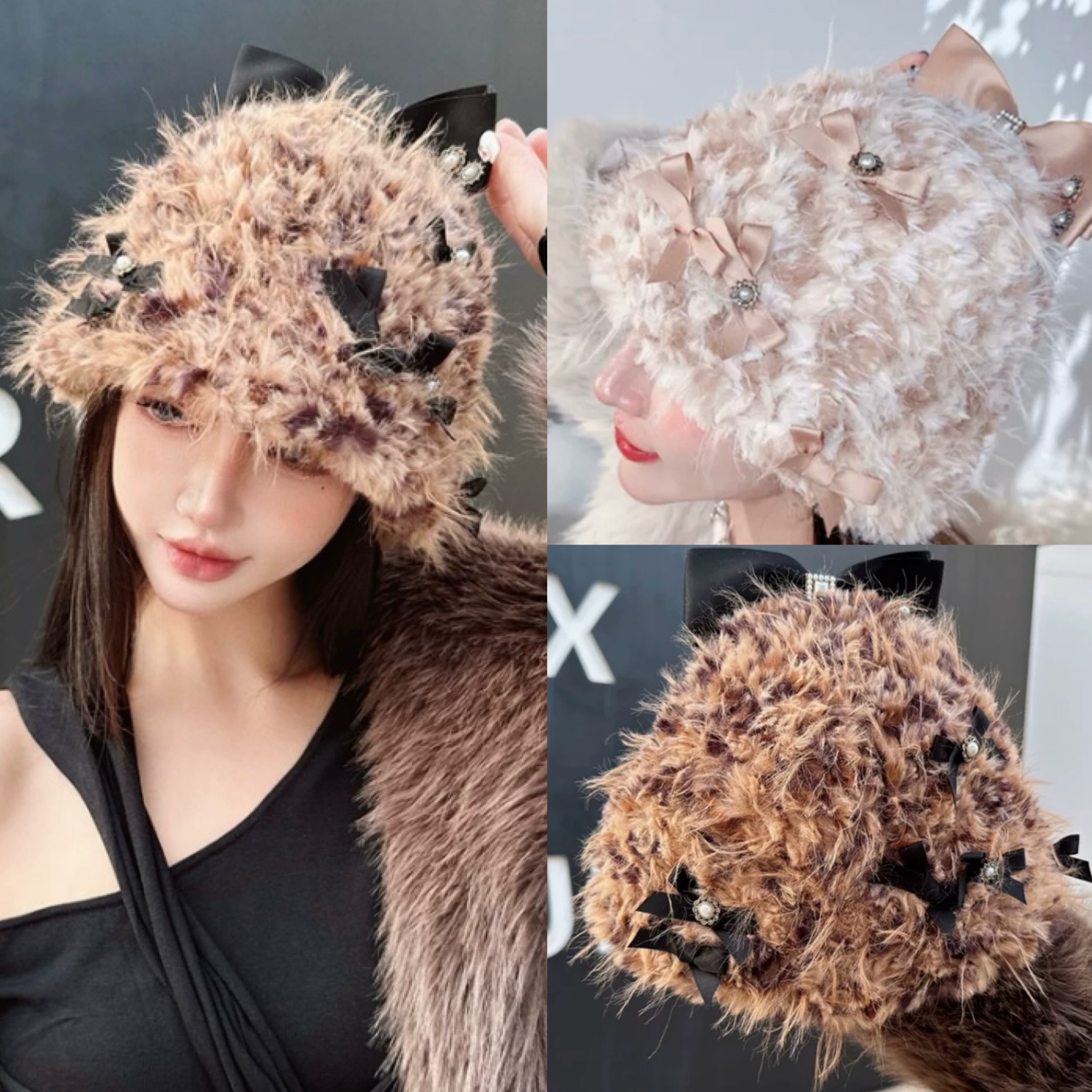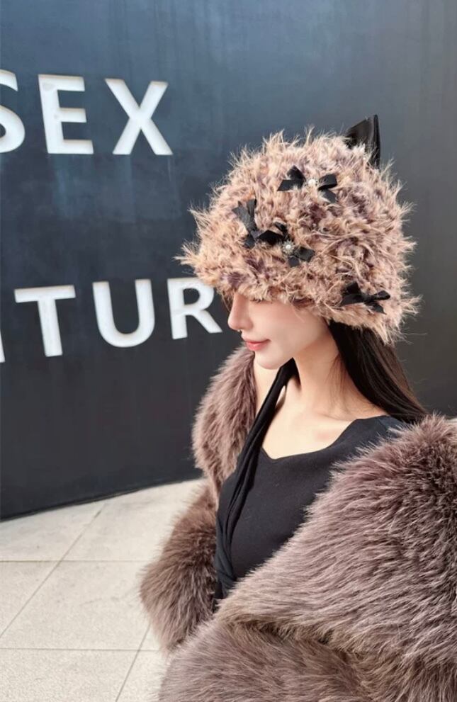 帽子 茶色 黒 リボン ファー ふわふわ ガーリー