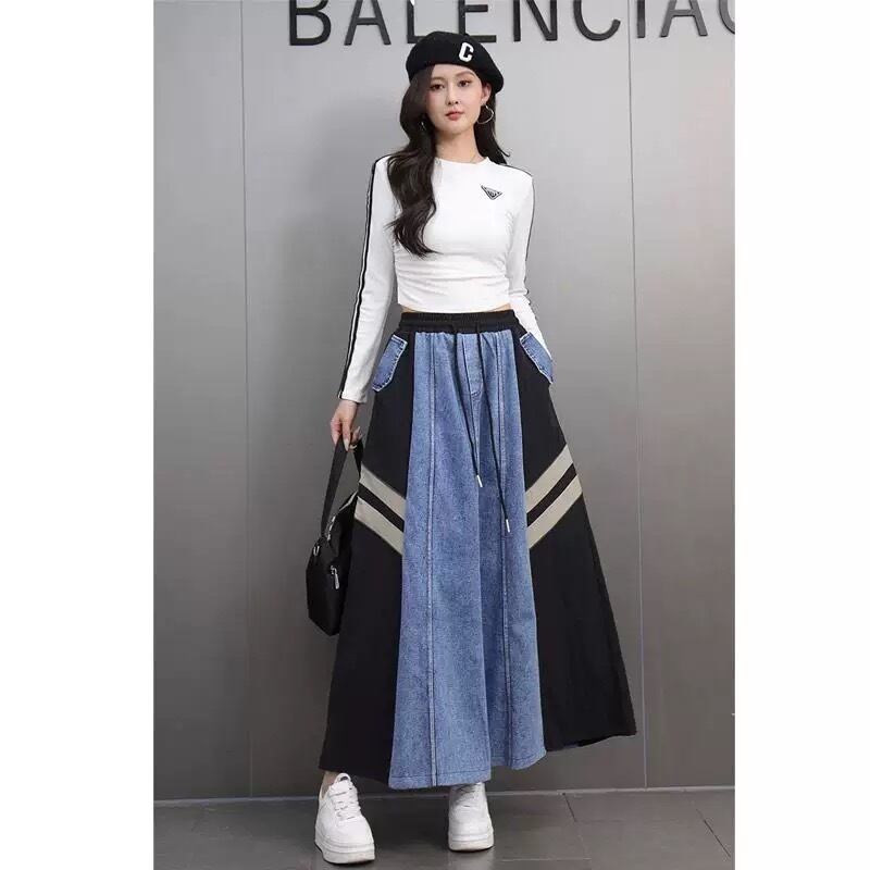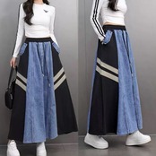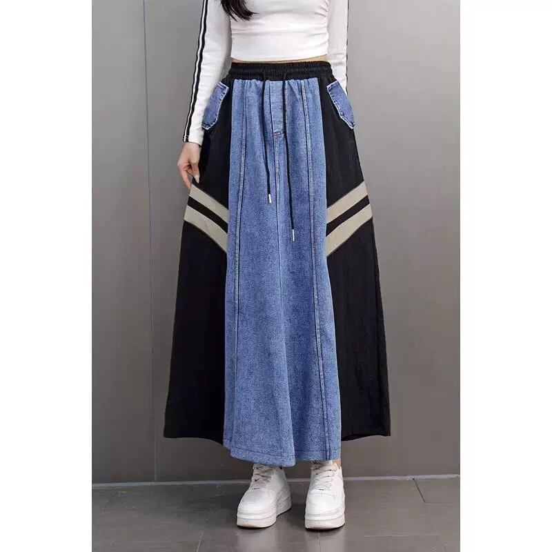 デニム スカート ボトムス 水色 スウェット スポーティー カジュアル