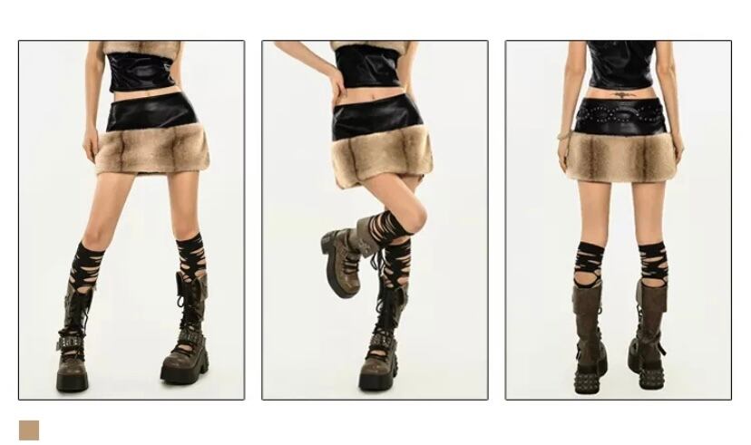 ベアトップ 黒 ファー ベージュ レザー ボトムス ダンス クラブ