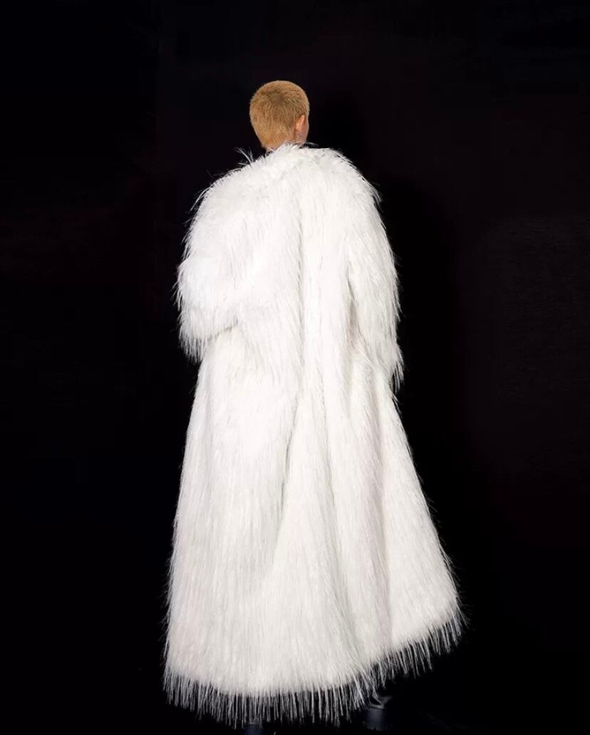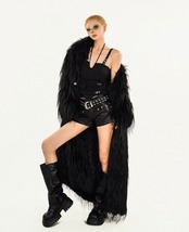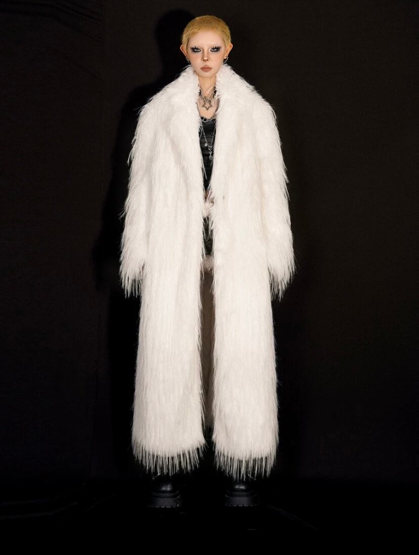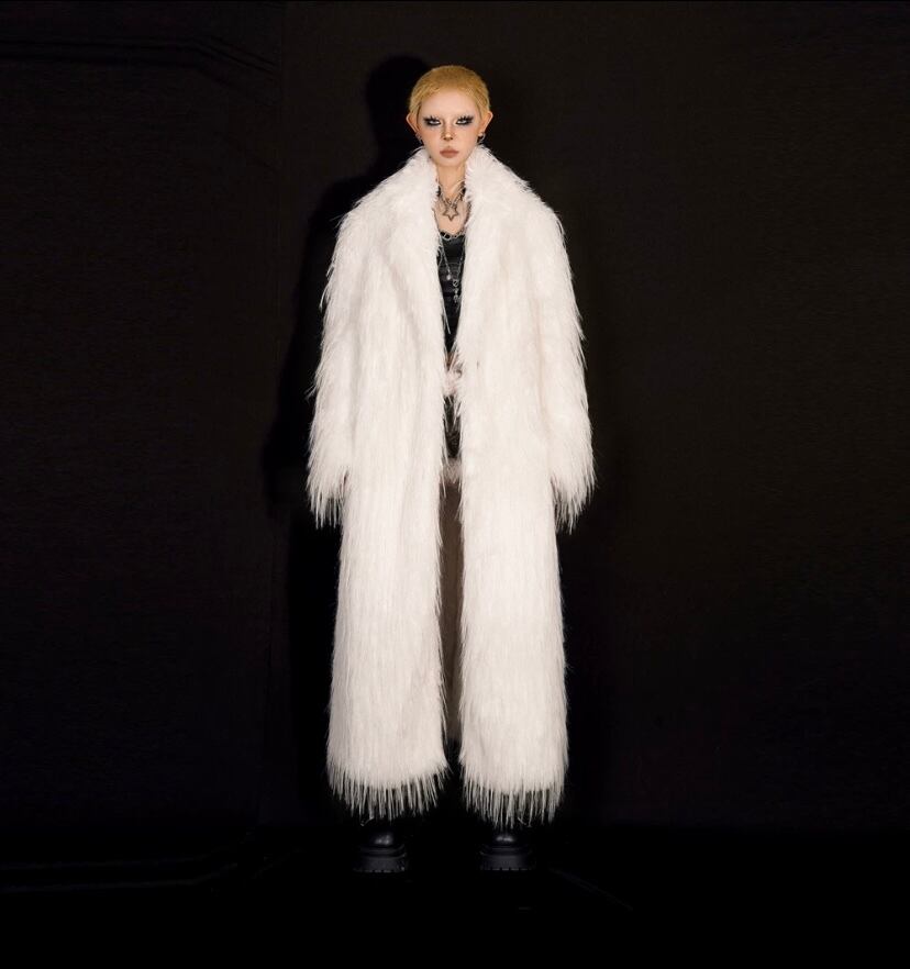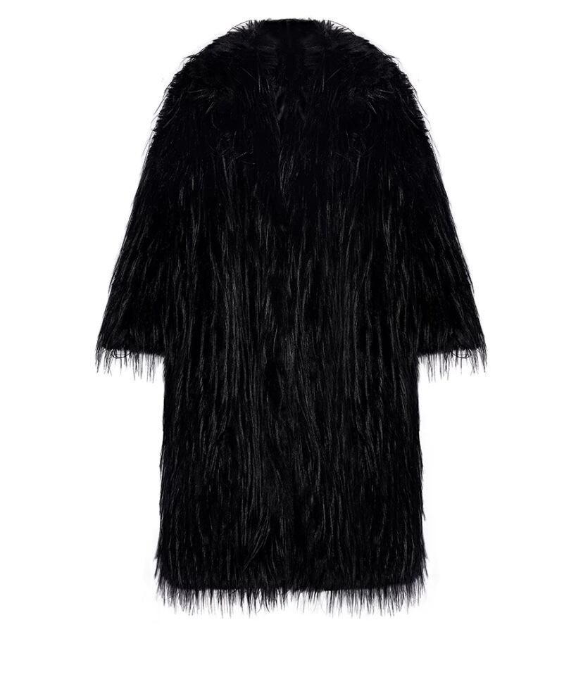 黒 白 ファー アウター コート ジャケット ストリート ワイルド ゴージャス シンプル