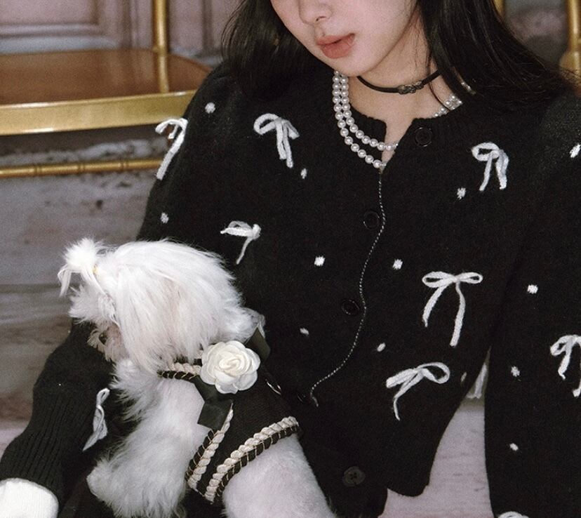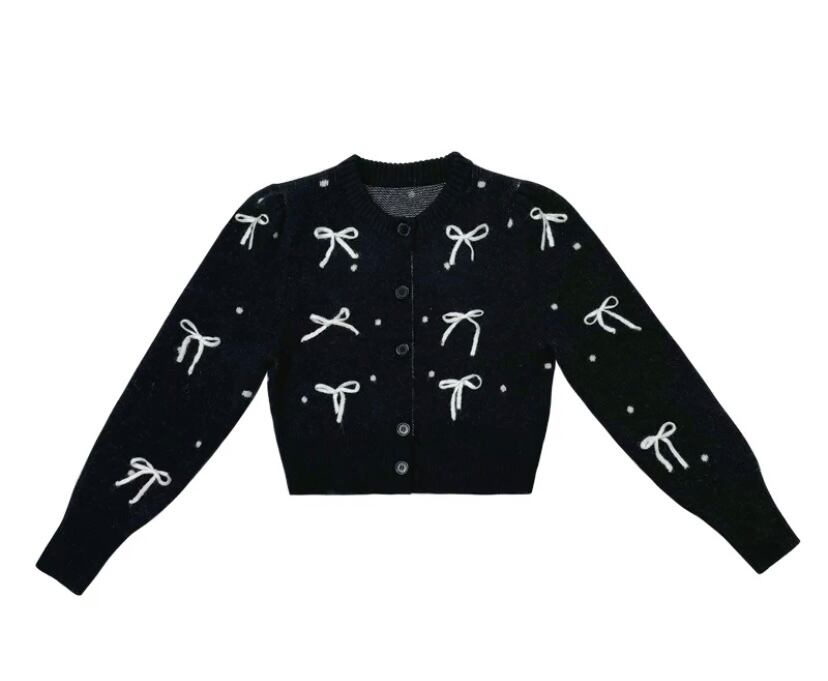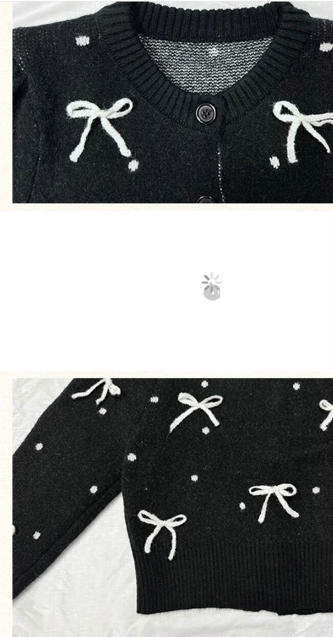 黒 リボン ガーリー カーディガン セーター アウター コート 可愛い セーター トップス