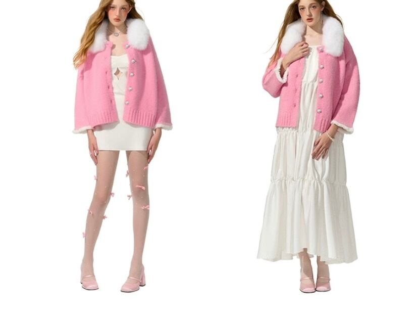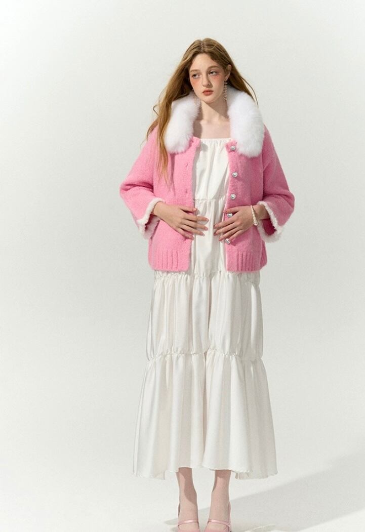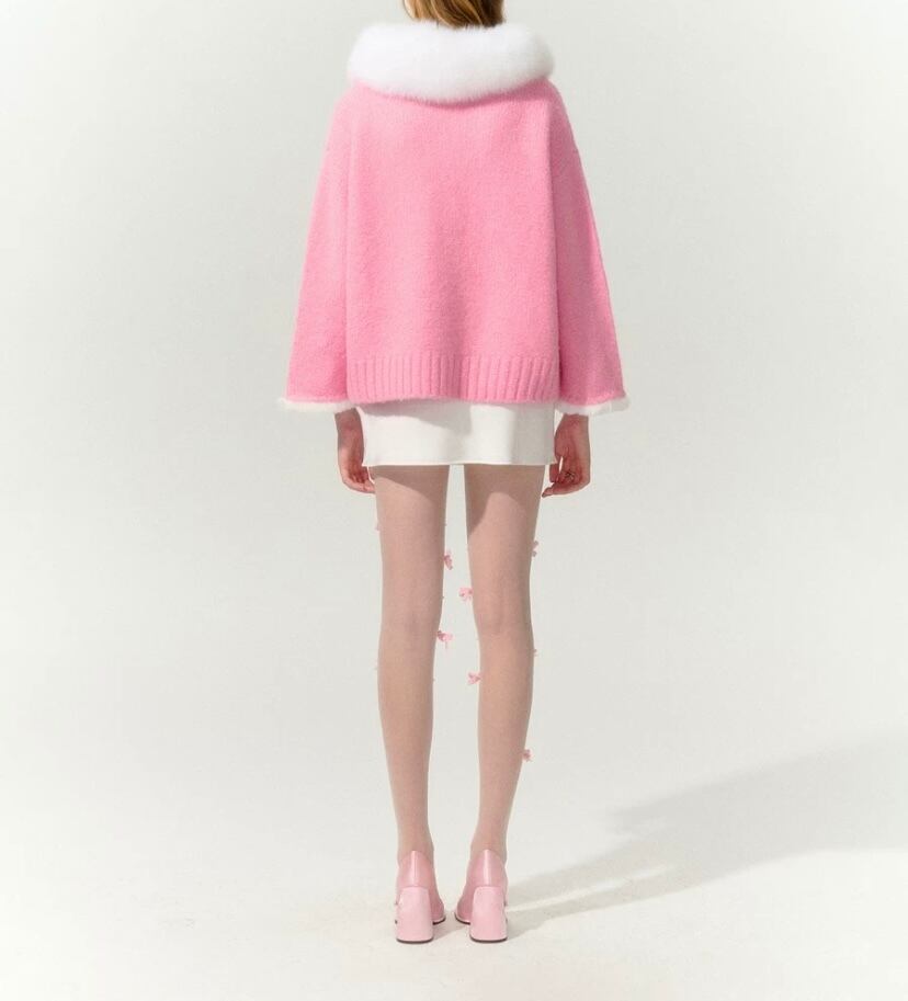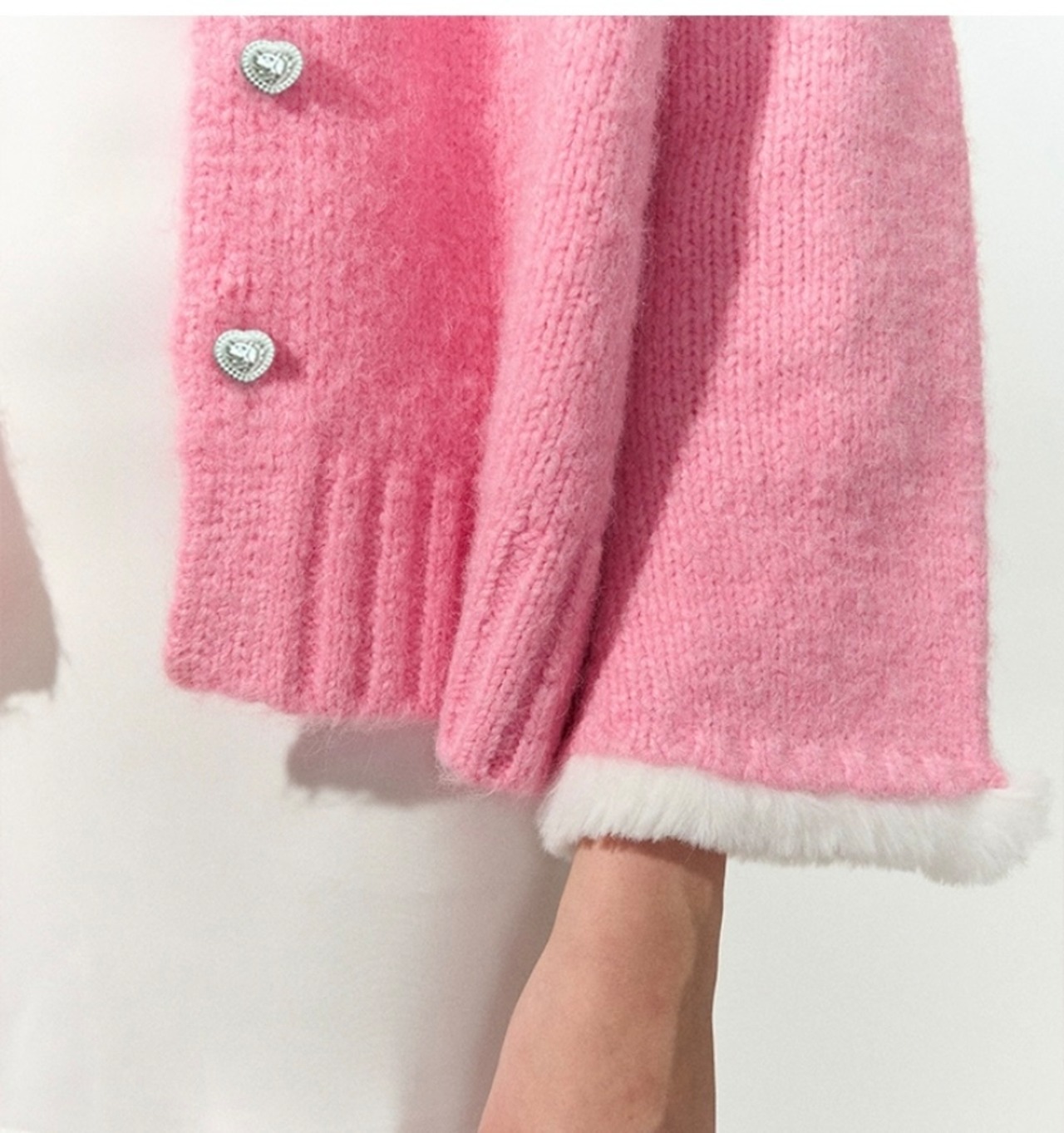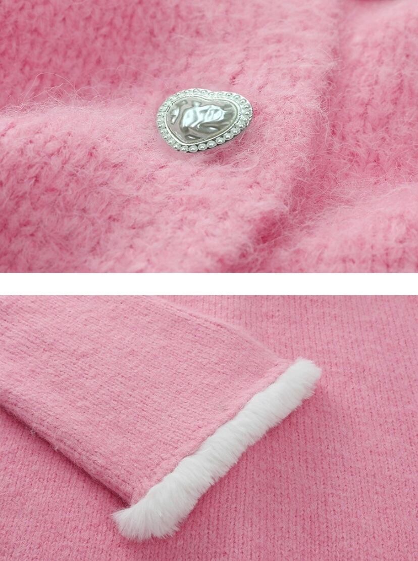 襟 ファー ピンク 白 アウター コート ハート ジャケット カーディガン セーター ポンチョ