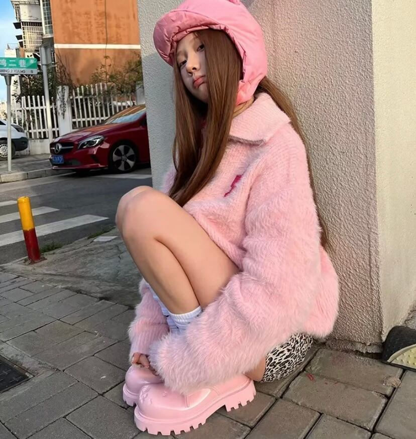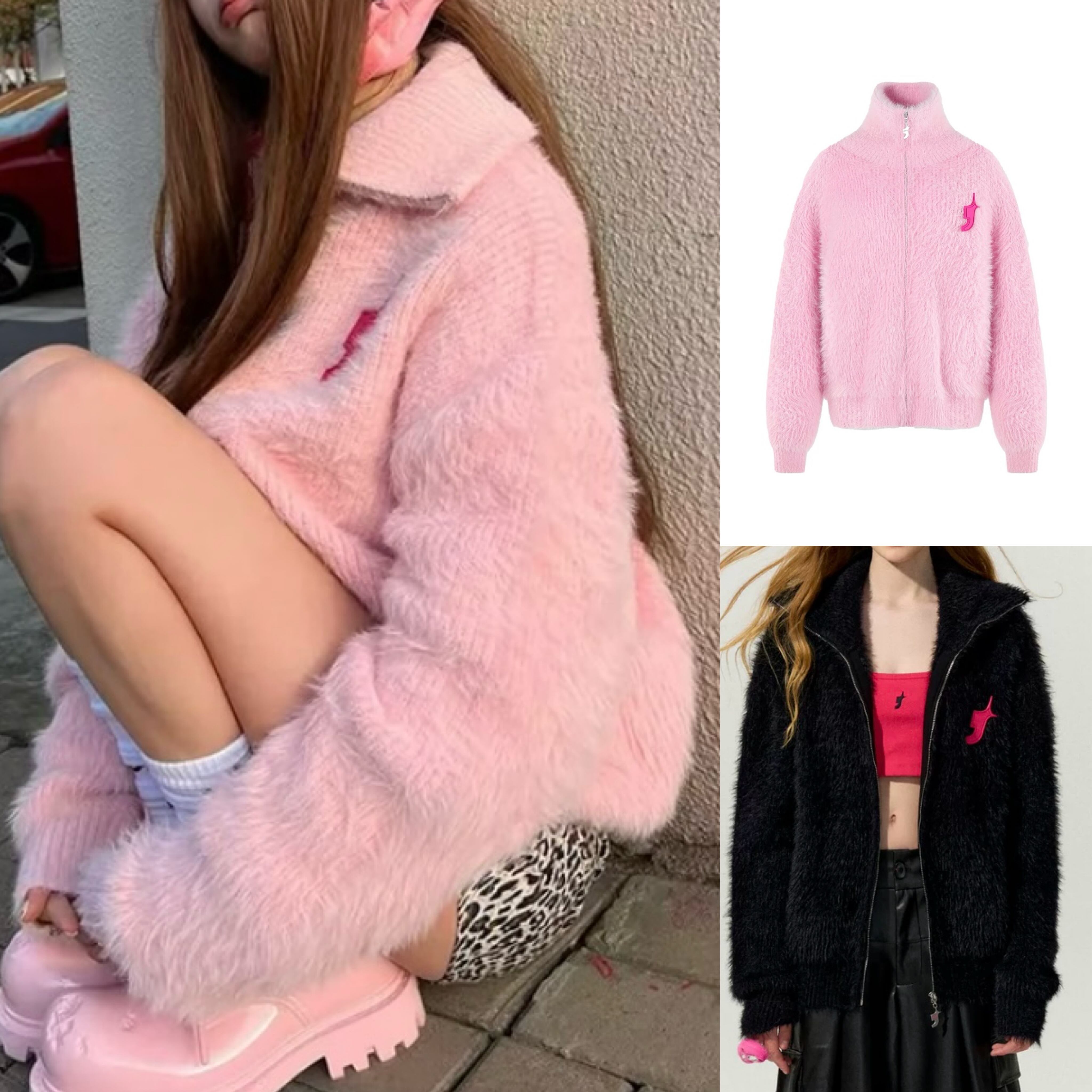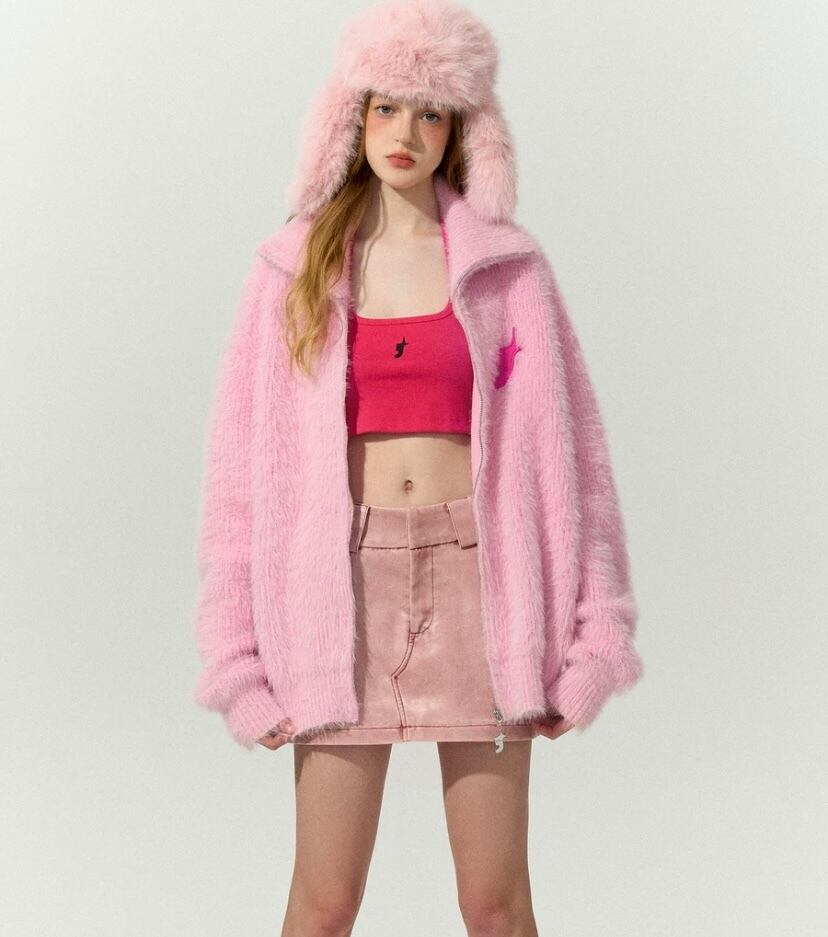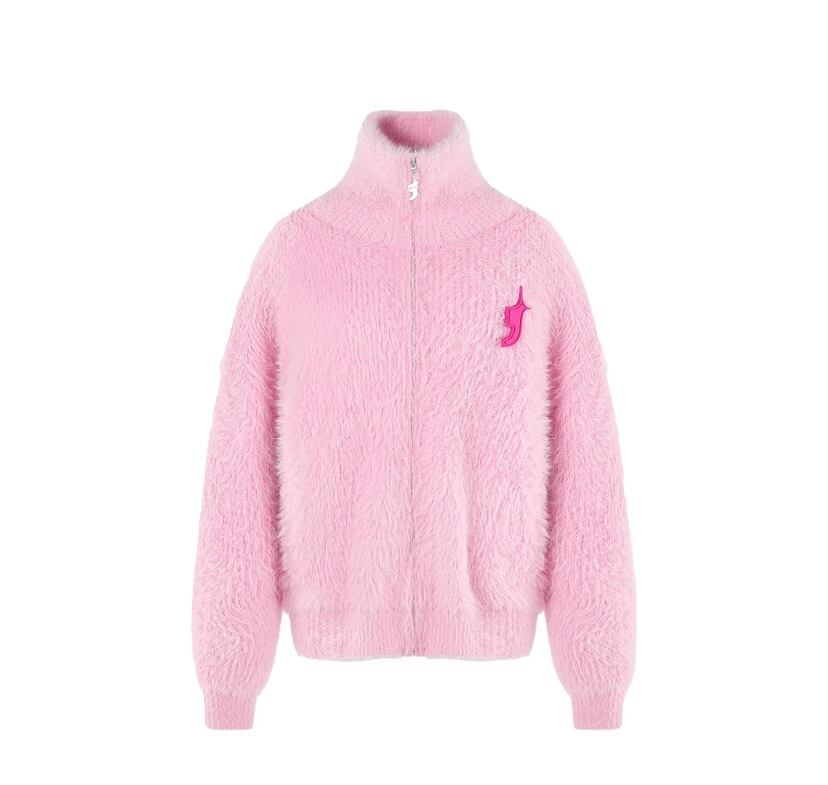 ハーフジップ アウター セーター カーディガン スウェット 黒 ピンク ガーリー 可愛い アウター