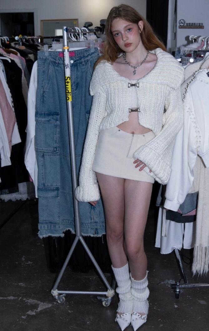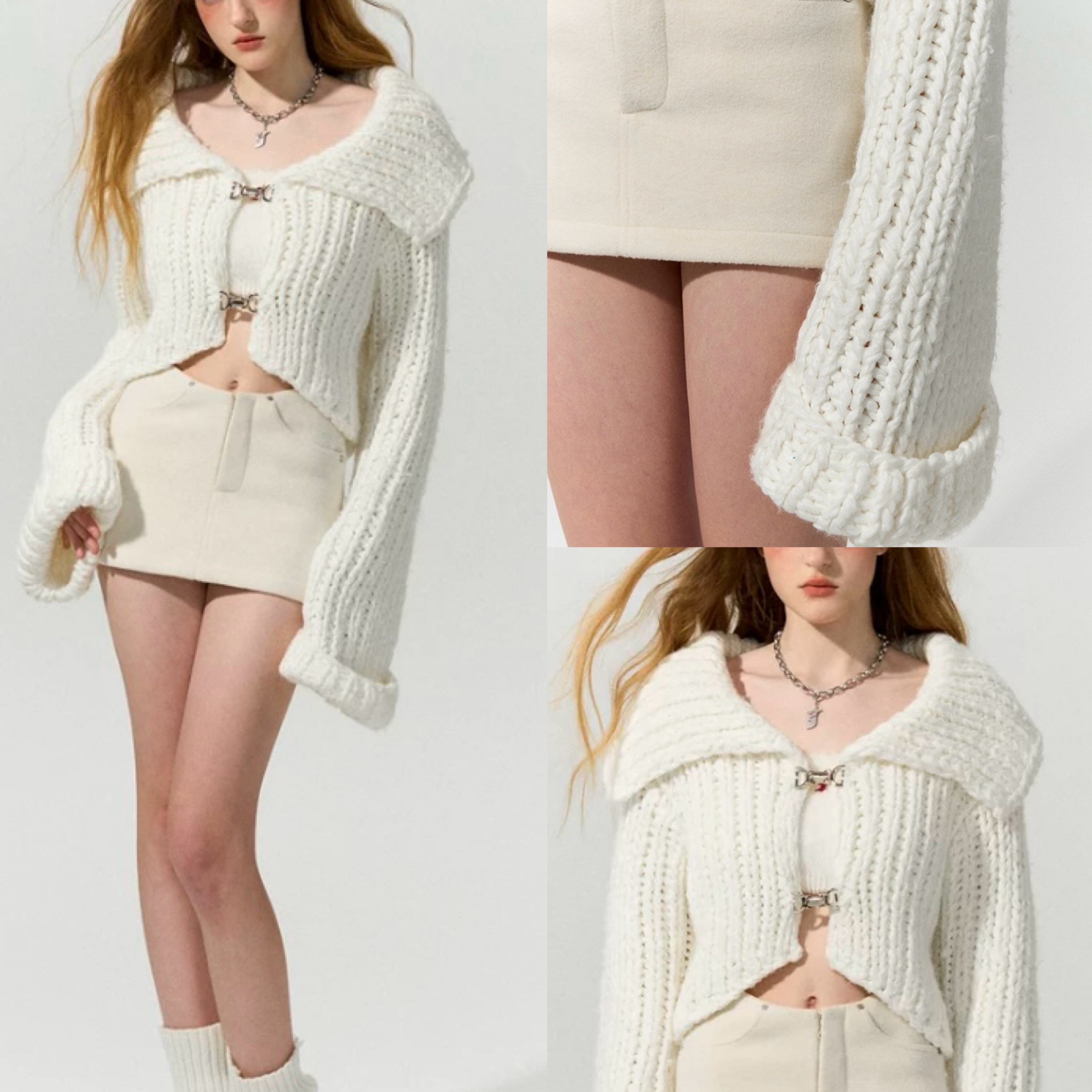 白 ニット セーター ファー ホワイトデー コート アウター カーディガン 可愛い カジュアル