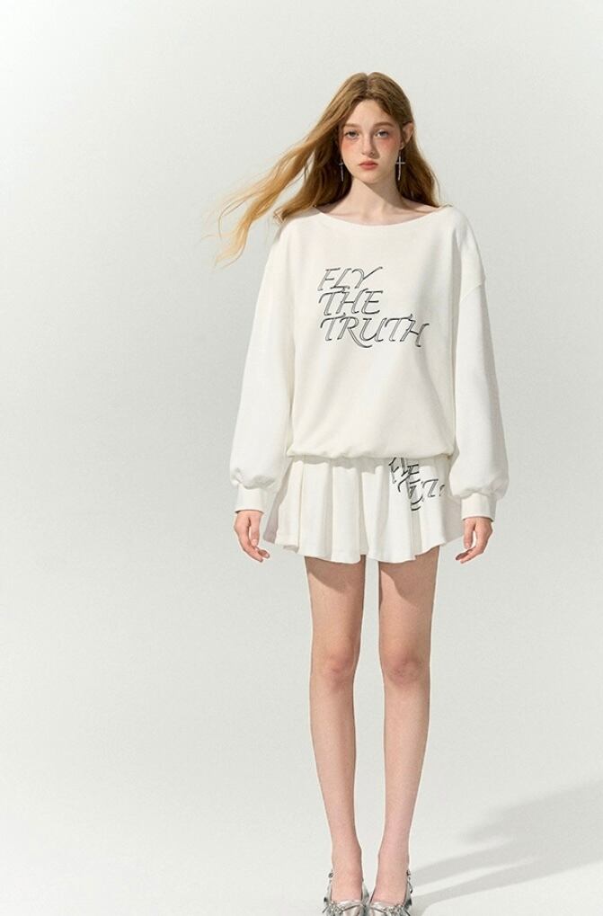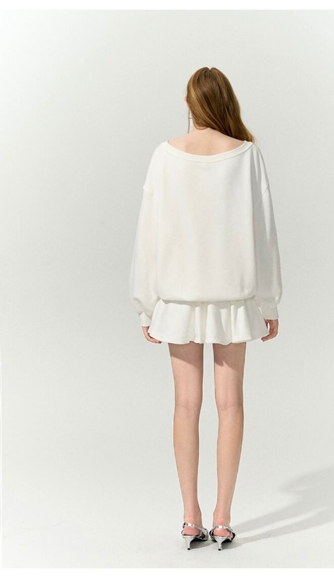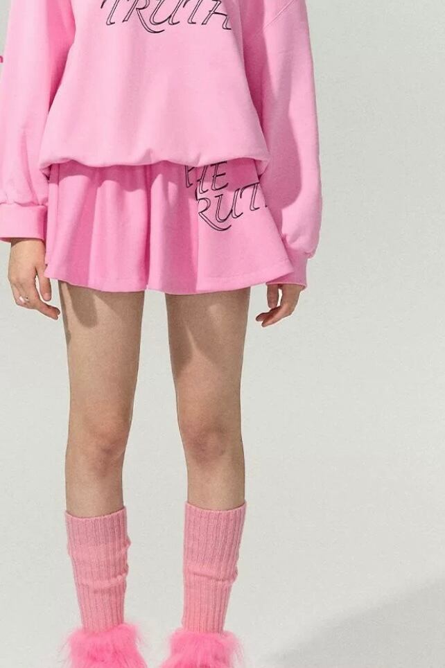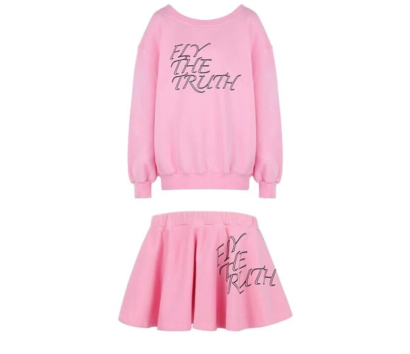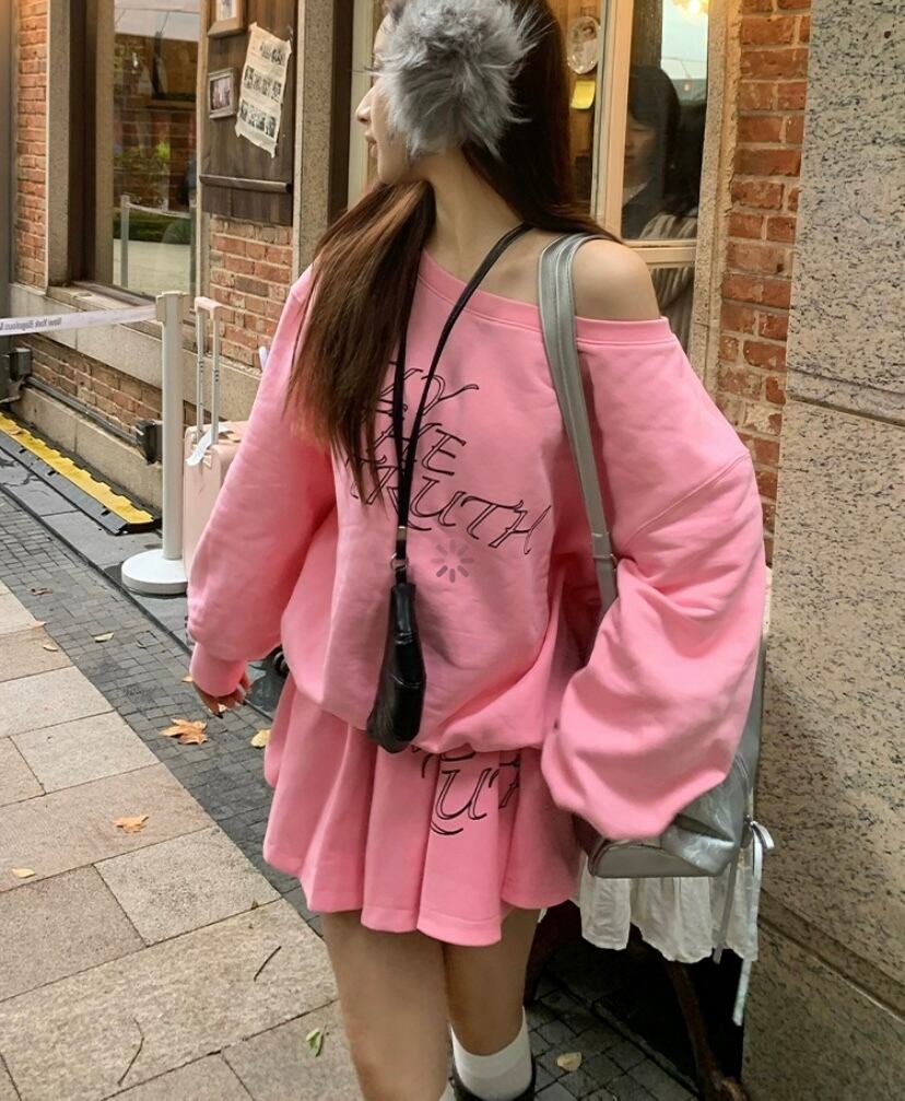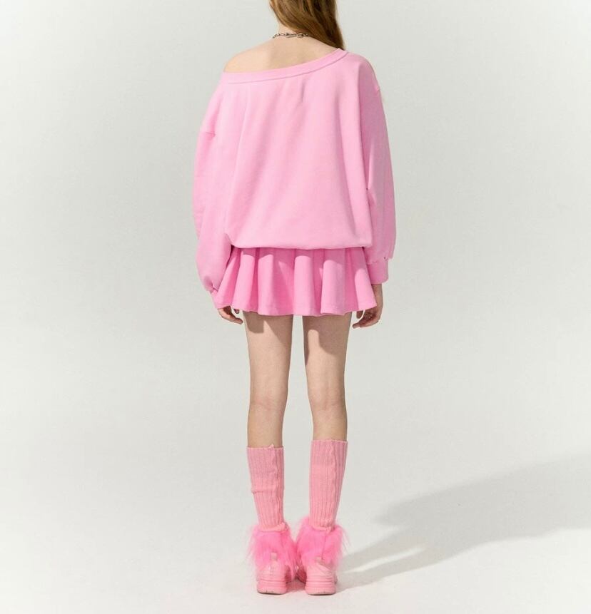 【セットアップ】オフショルダー ピンク 白 スウェット トレーナー カジュアル ミニスカート