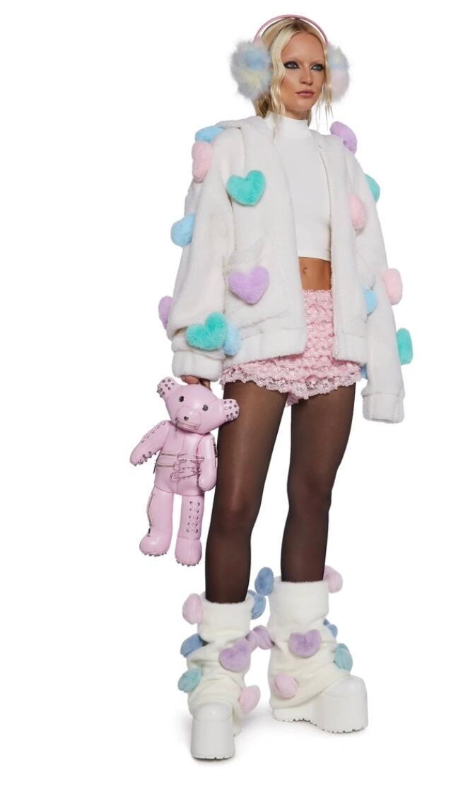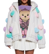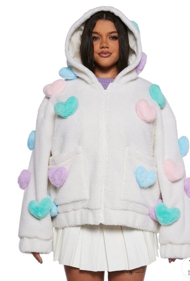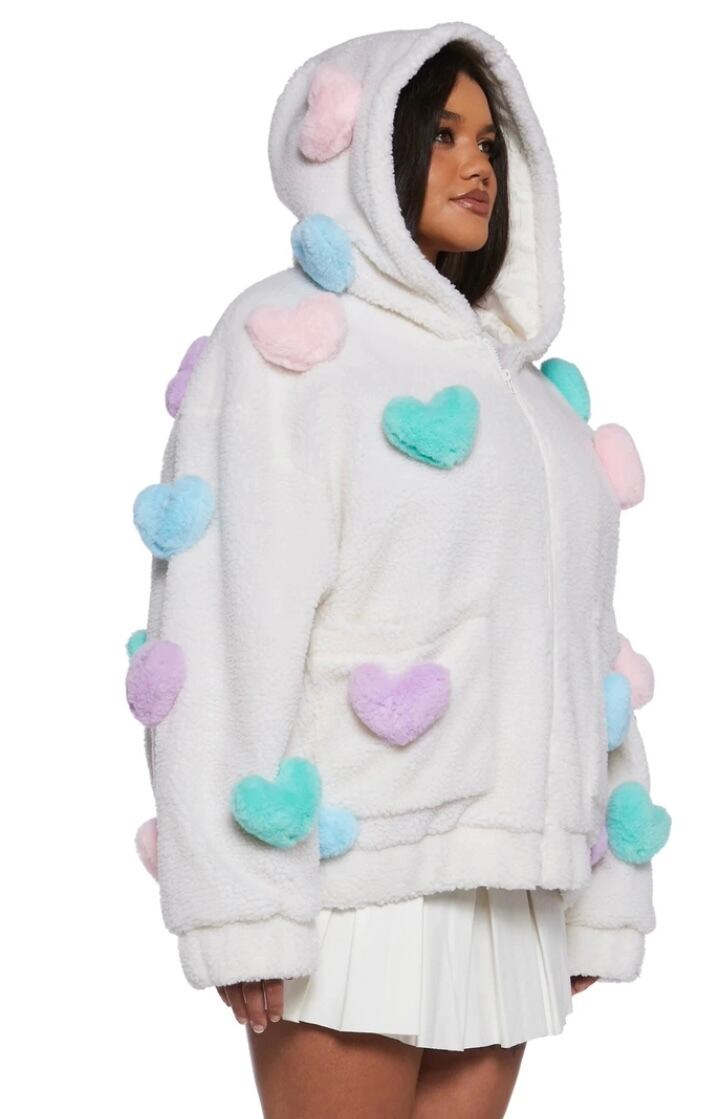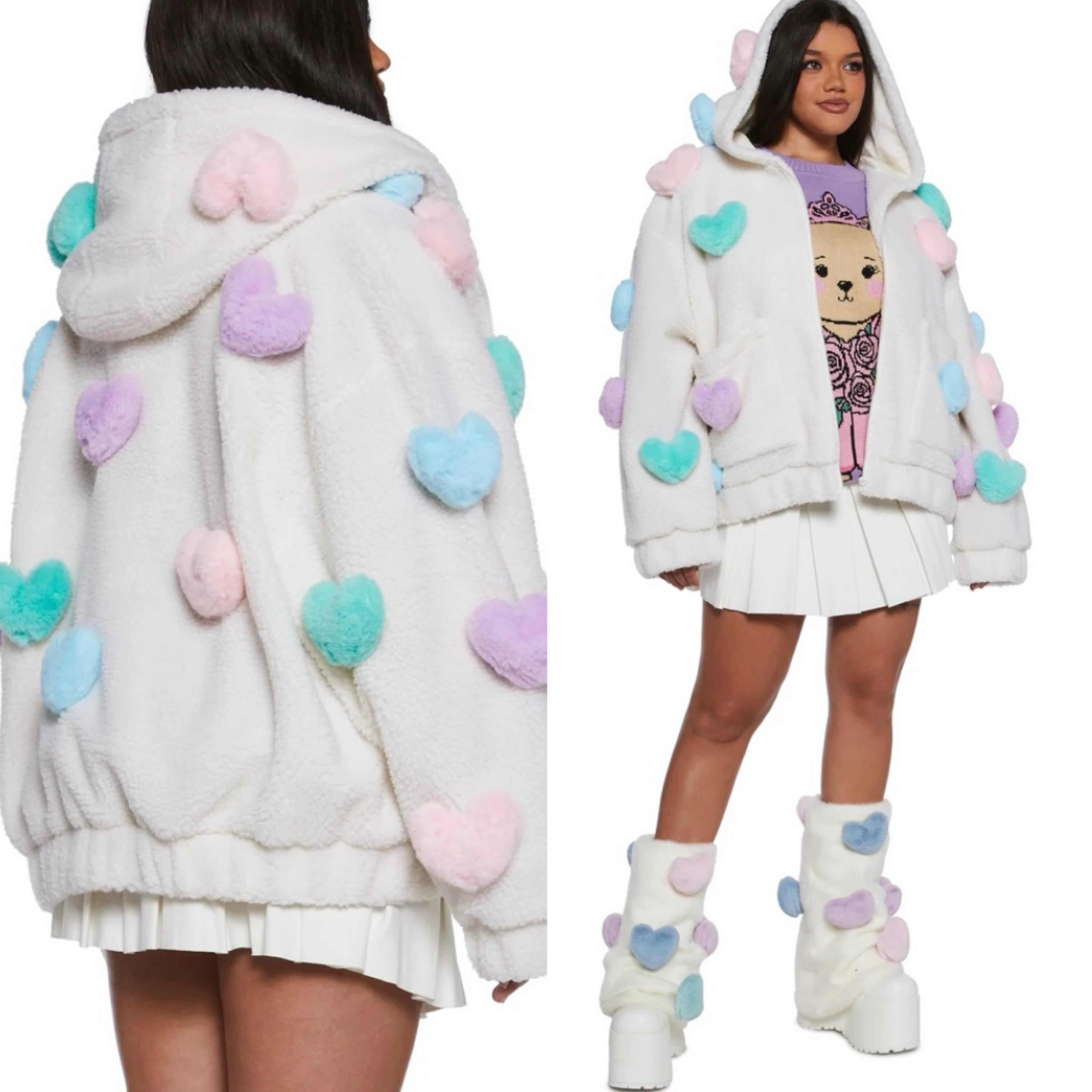 【3XLまで】ハート デコレーション 白 フリース コート 水色 パーカー コート アウター