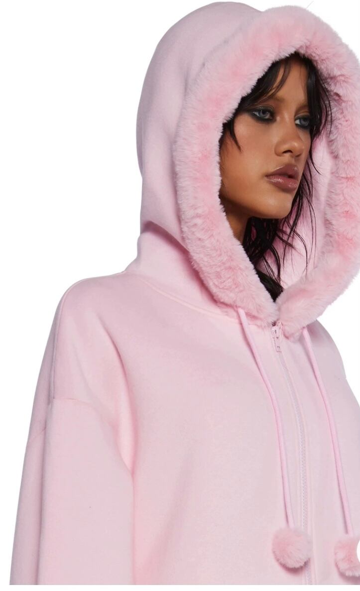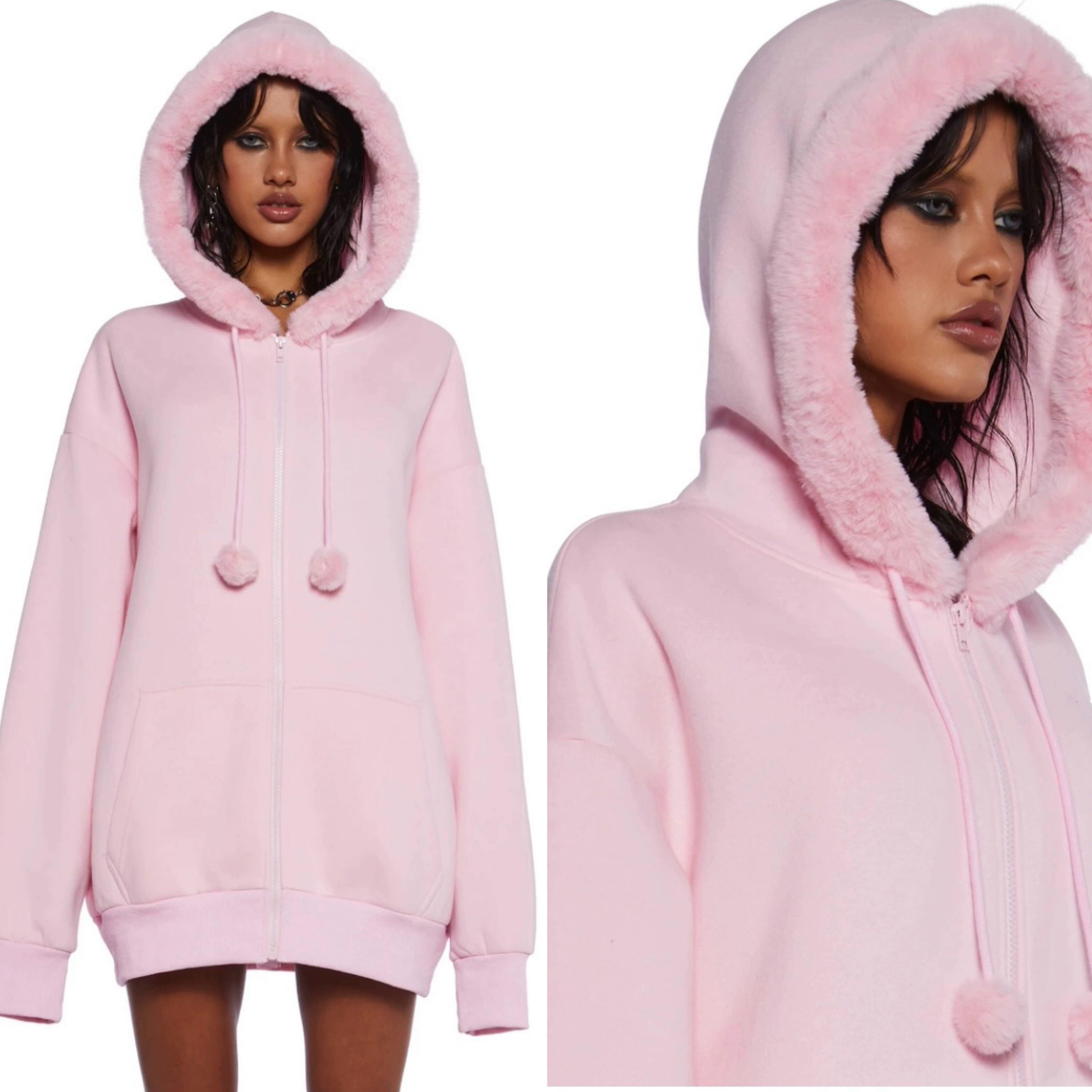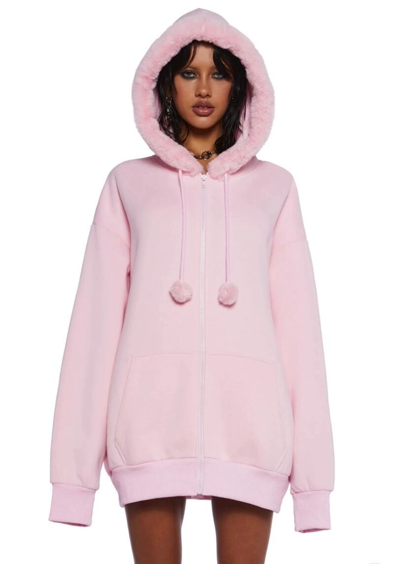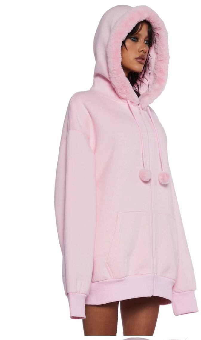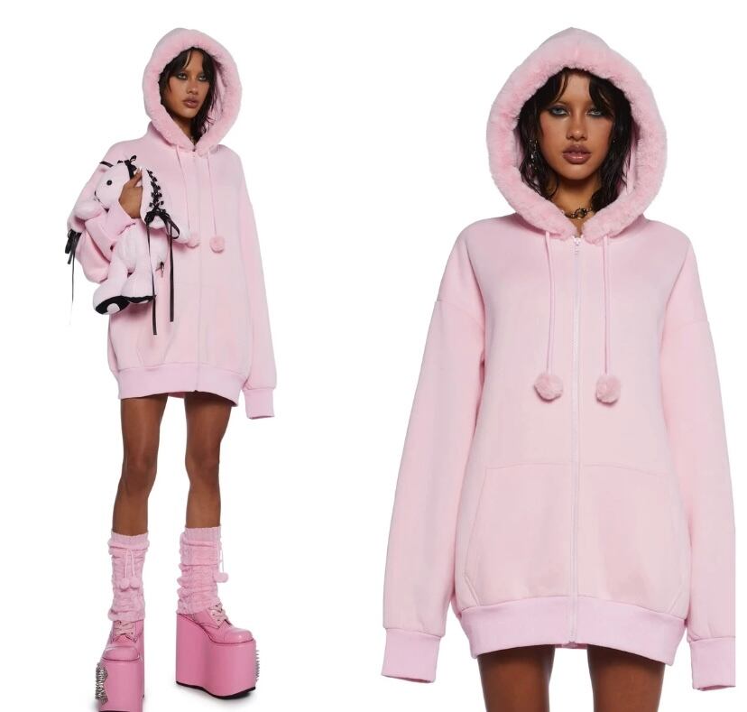 ピンク フリース アウター スウェット パーカー カジュアル トレーナー フード ピンク