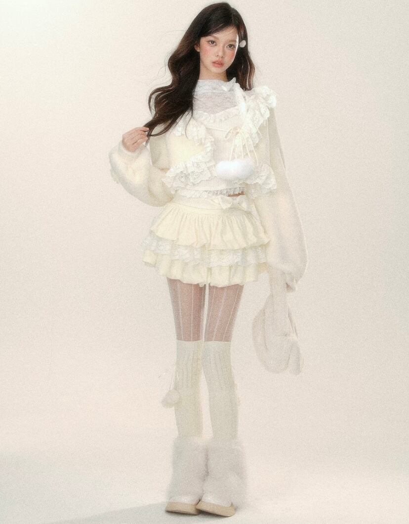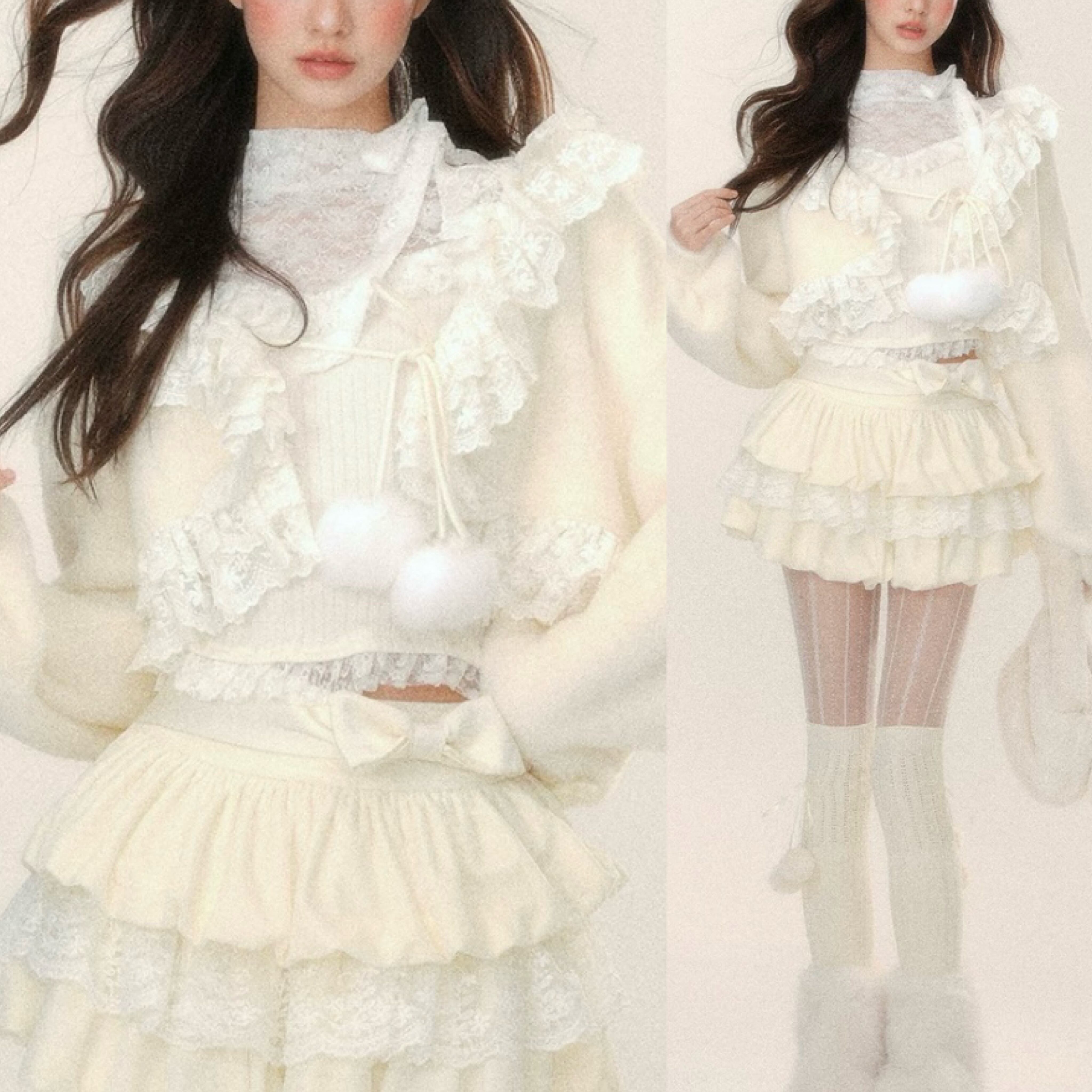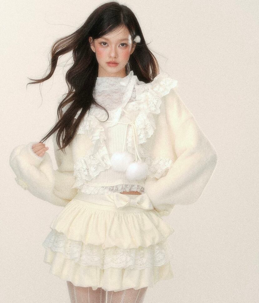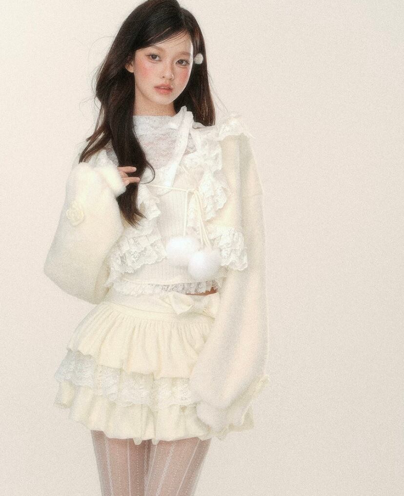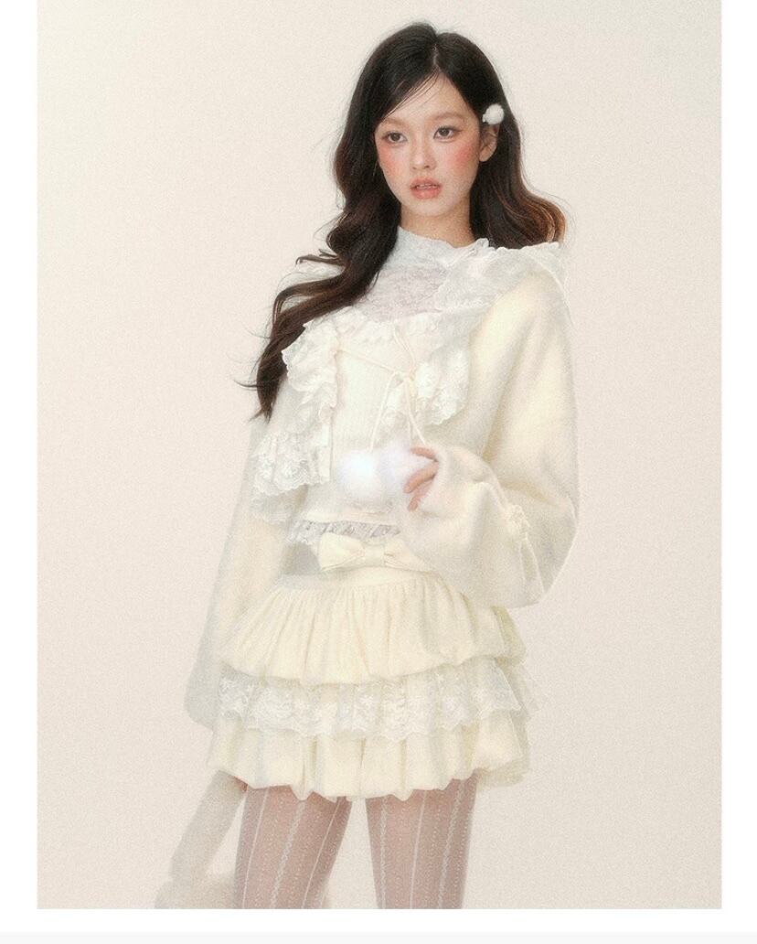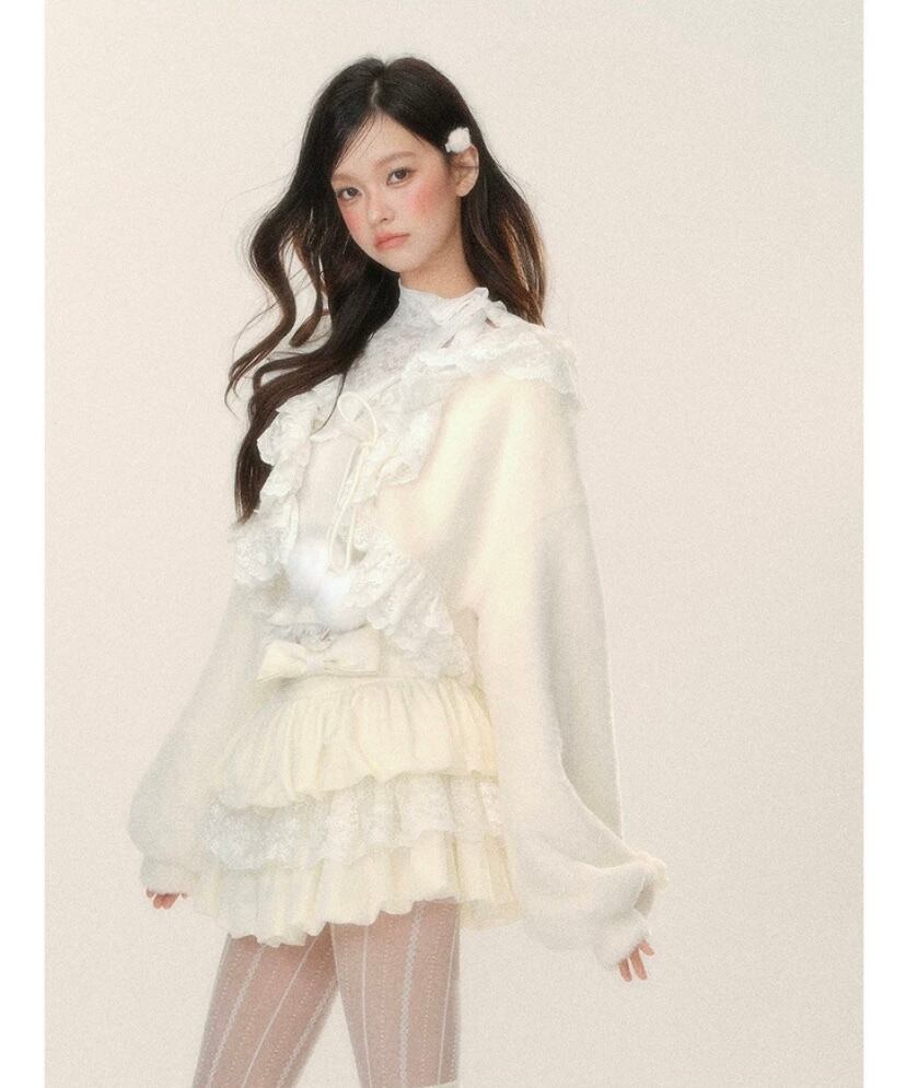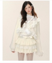 白 ガーリー リボン 可愛い カーディガン セーター ジャケット コート フリル