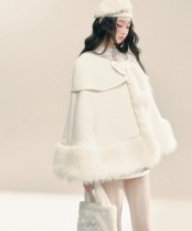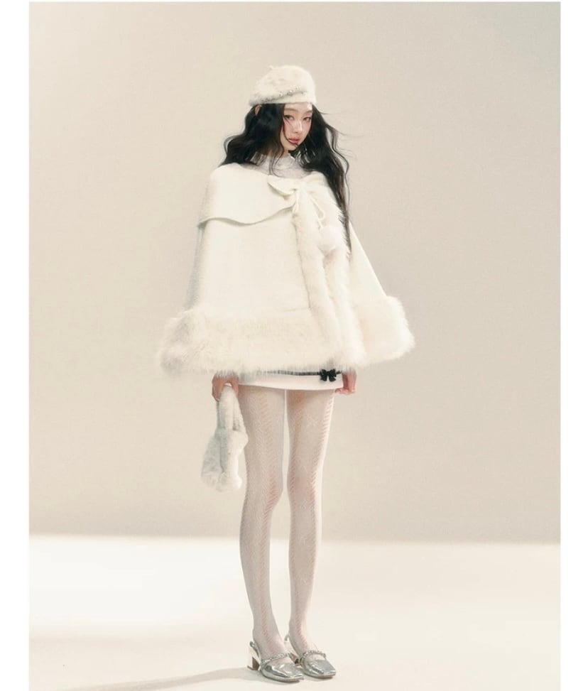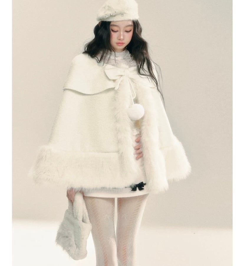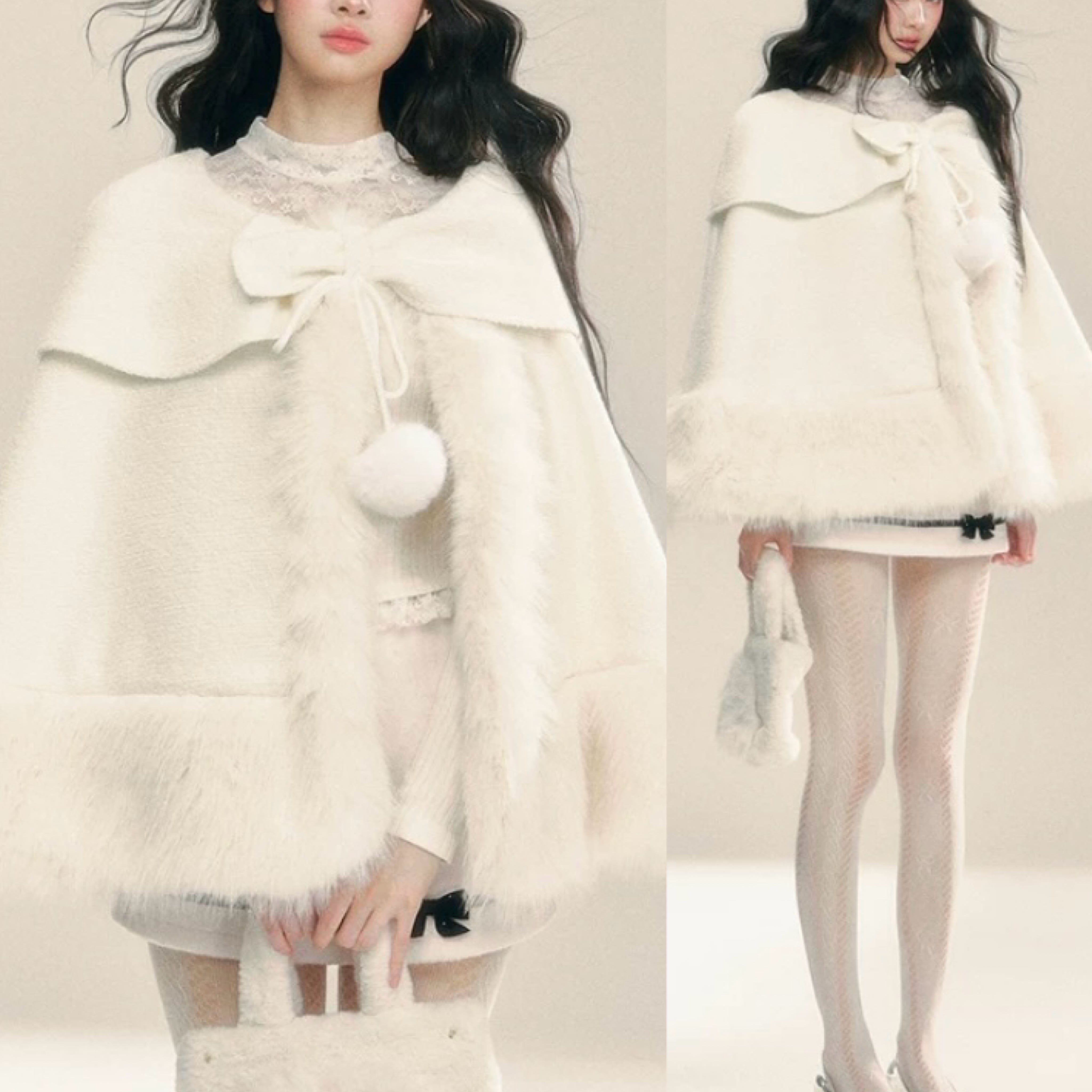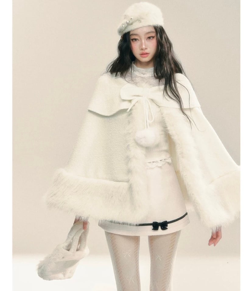 マント 白 ホワイト ポンチョ ガーリー リボン カーディガン コート アウター ファー