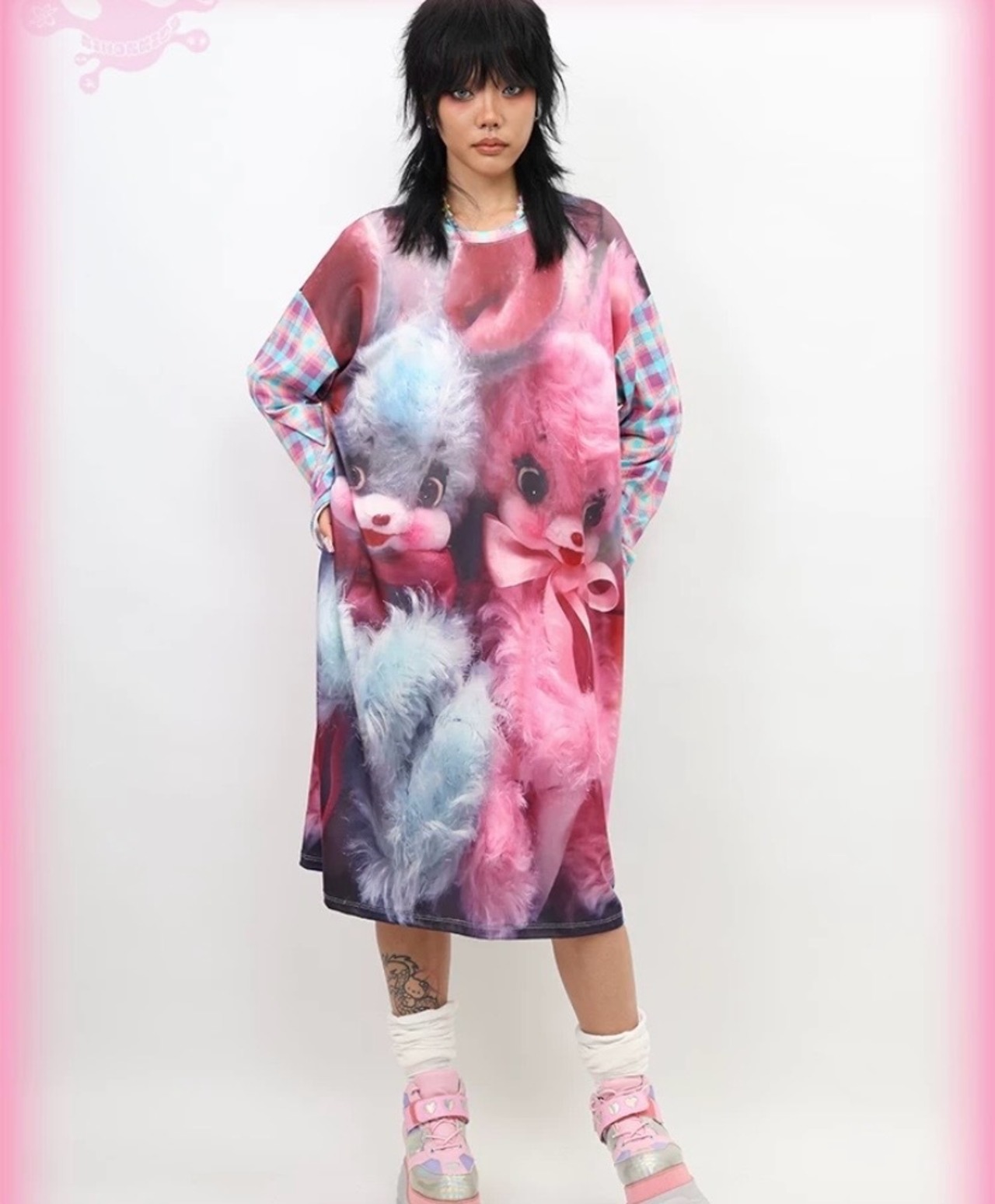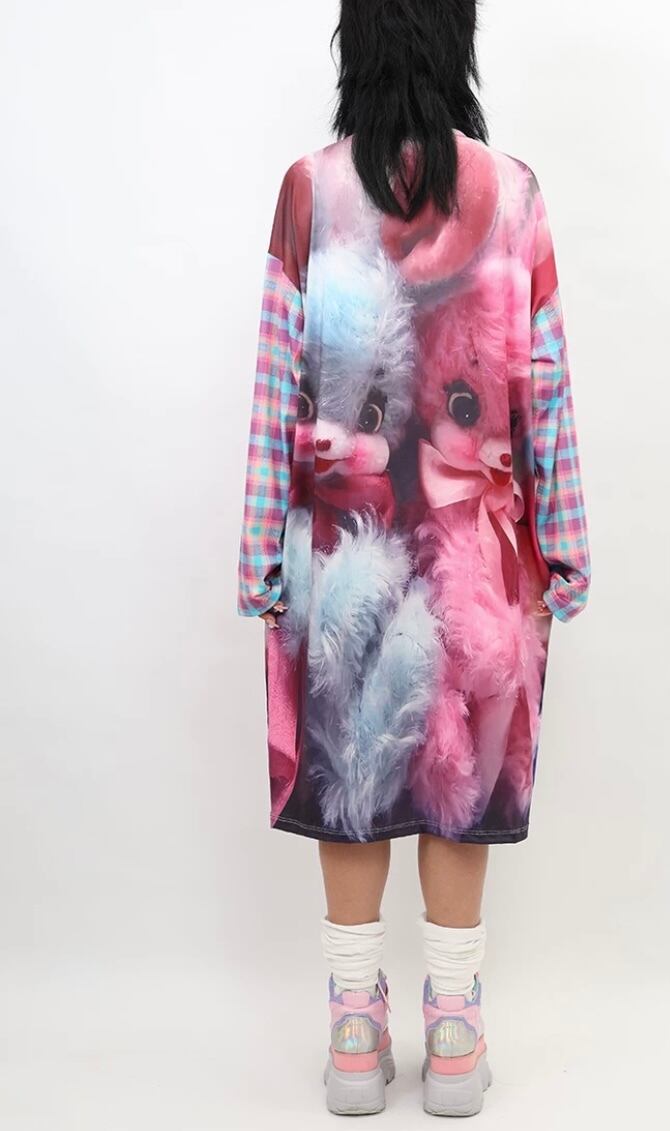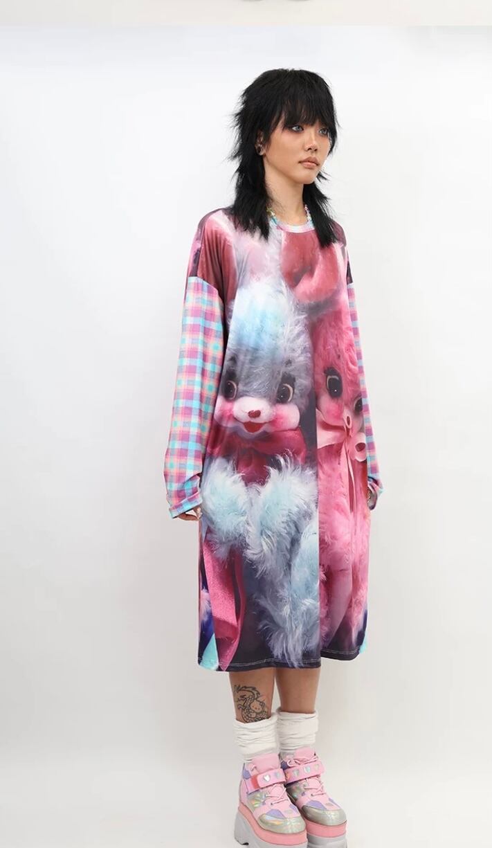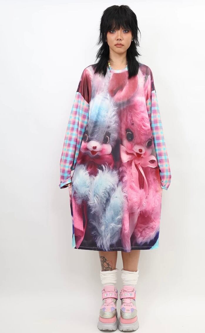 うさぎ ピンク 水色 カジュアル ワンピース ガーリー リボン Tシャツ 可愛い チェック わ