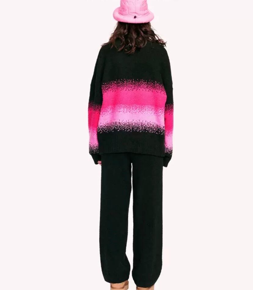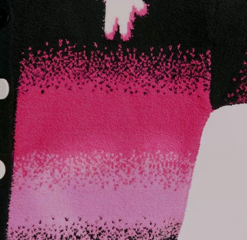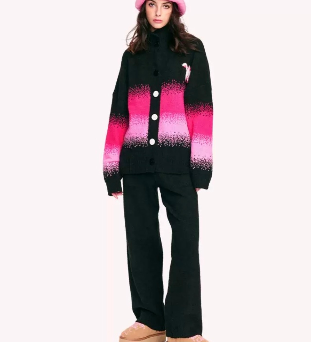 黒 ピンク ボーダー チェック アウター コート カーディガン ガーリー カジュアル セーター