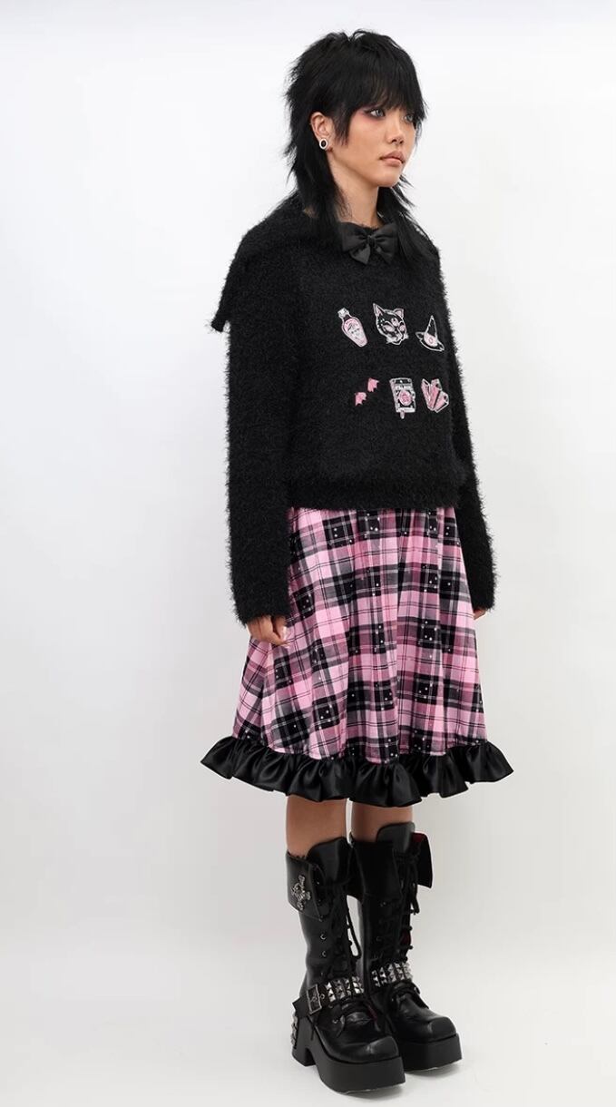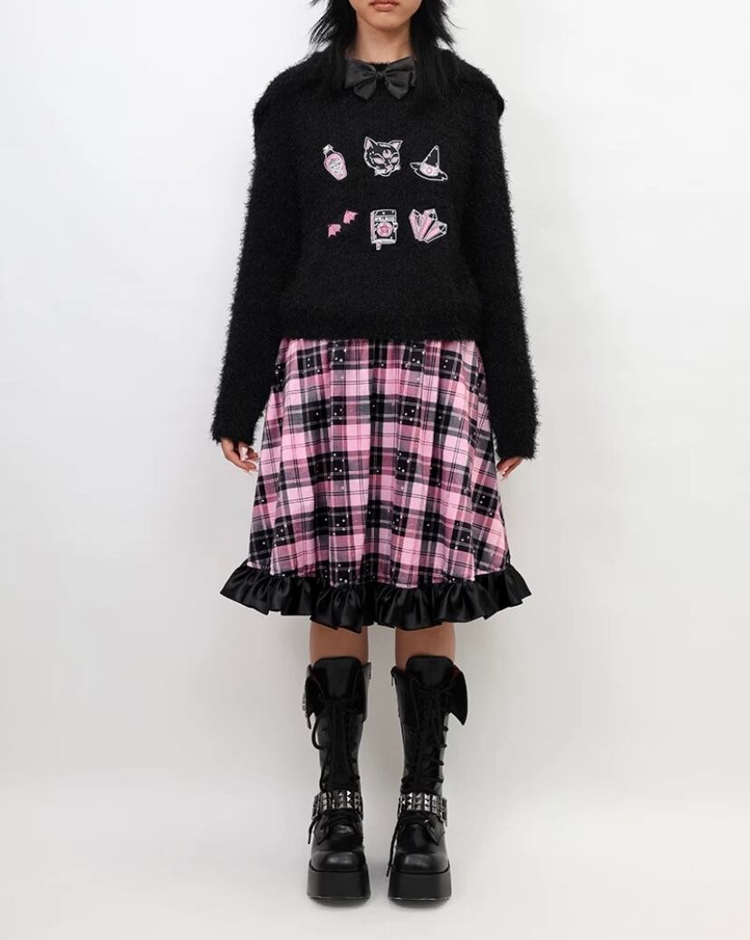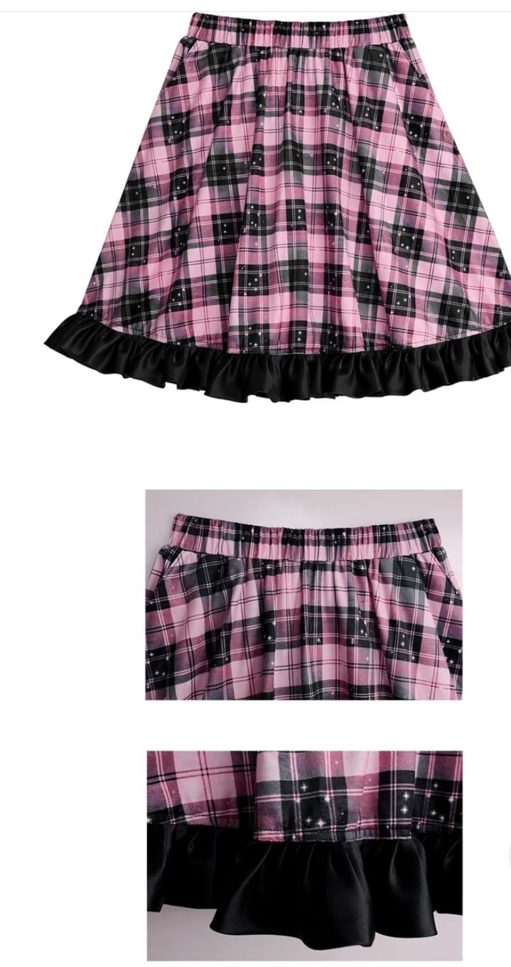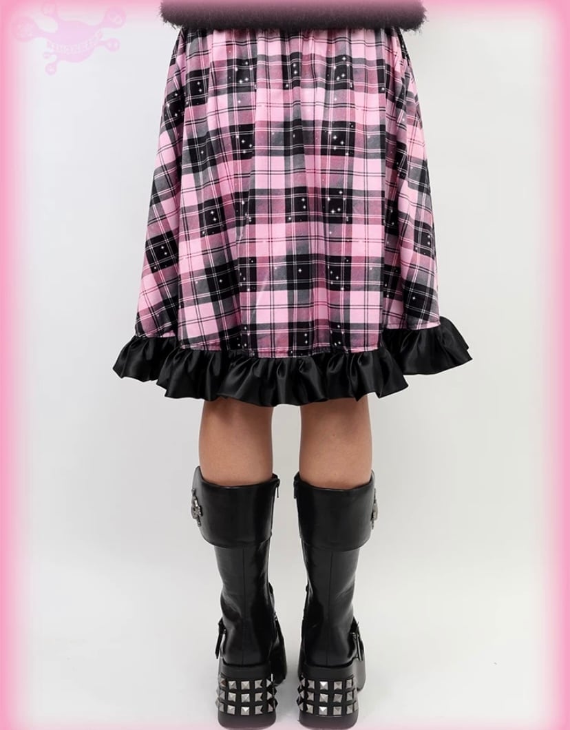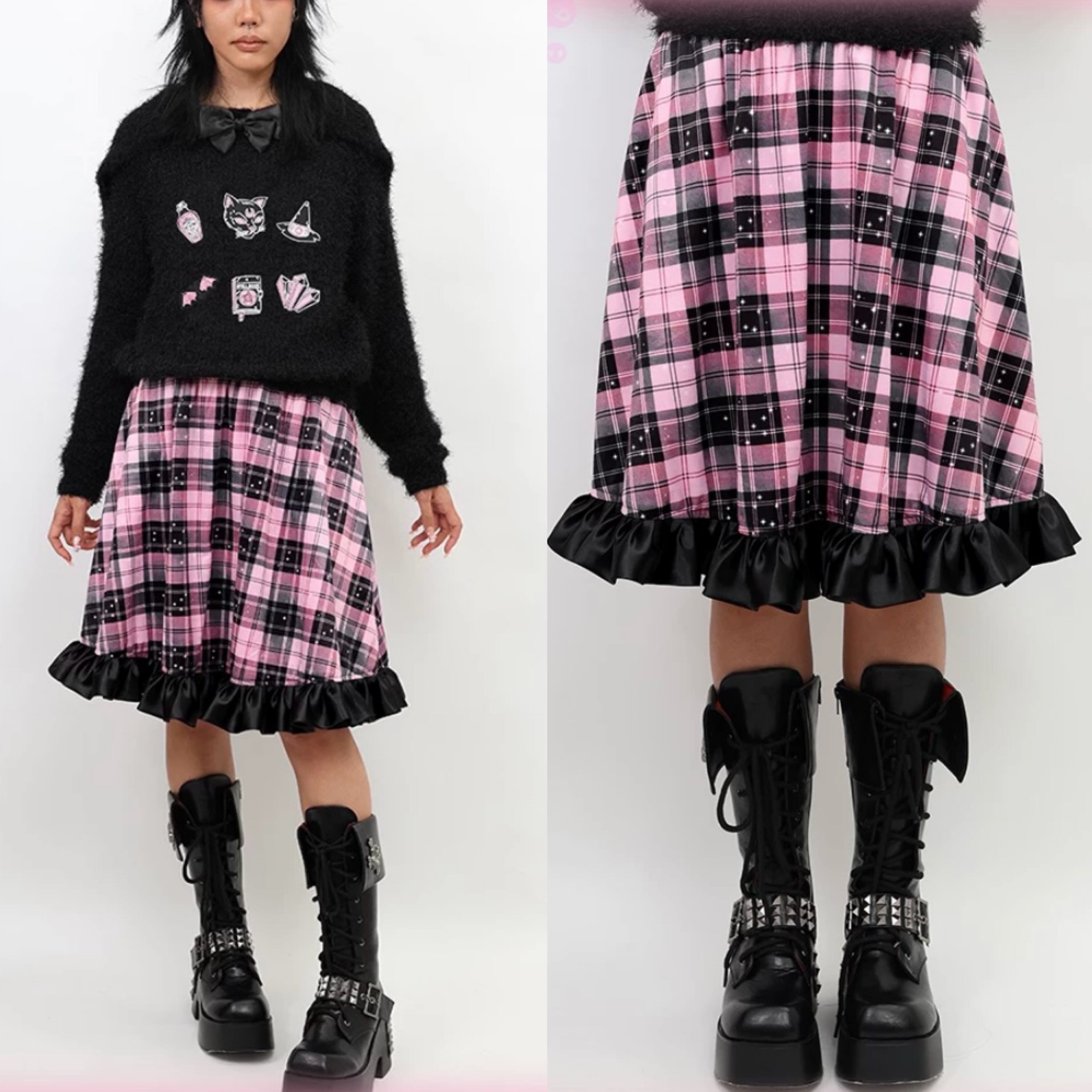ピンク ガーリー チェック 黒 可愛い ボトムス 原宿 スカート