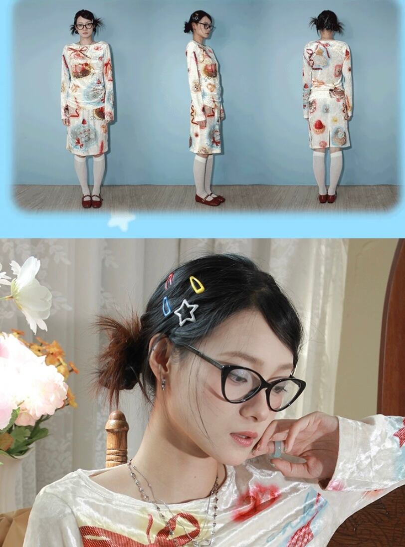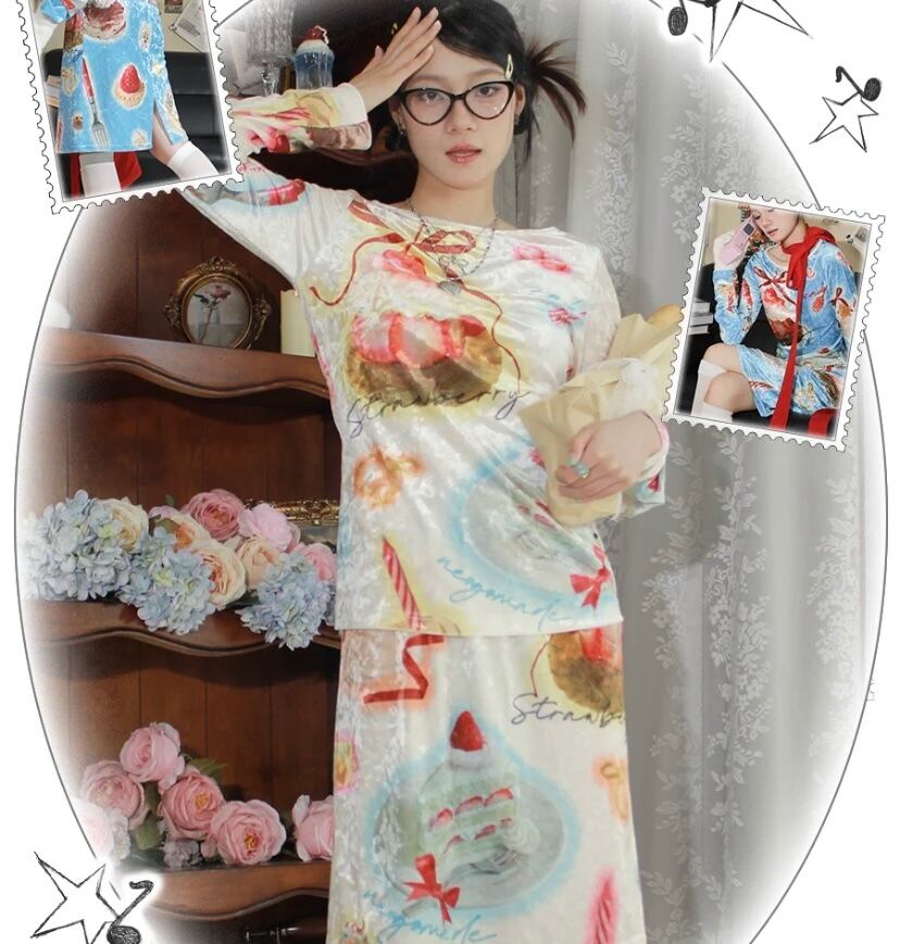 ケーキ ガーリー 白 水色 スイーツ ブラウス ワンピース 可愛い 原宿 スカート トップス いちご スイーツ