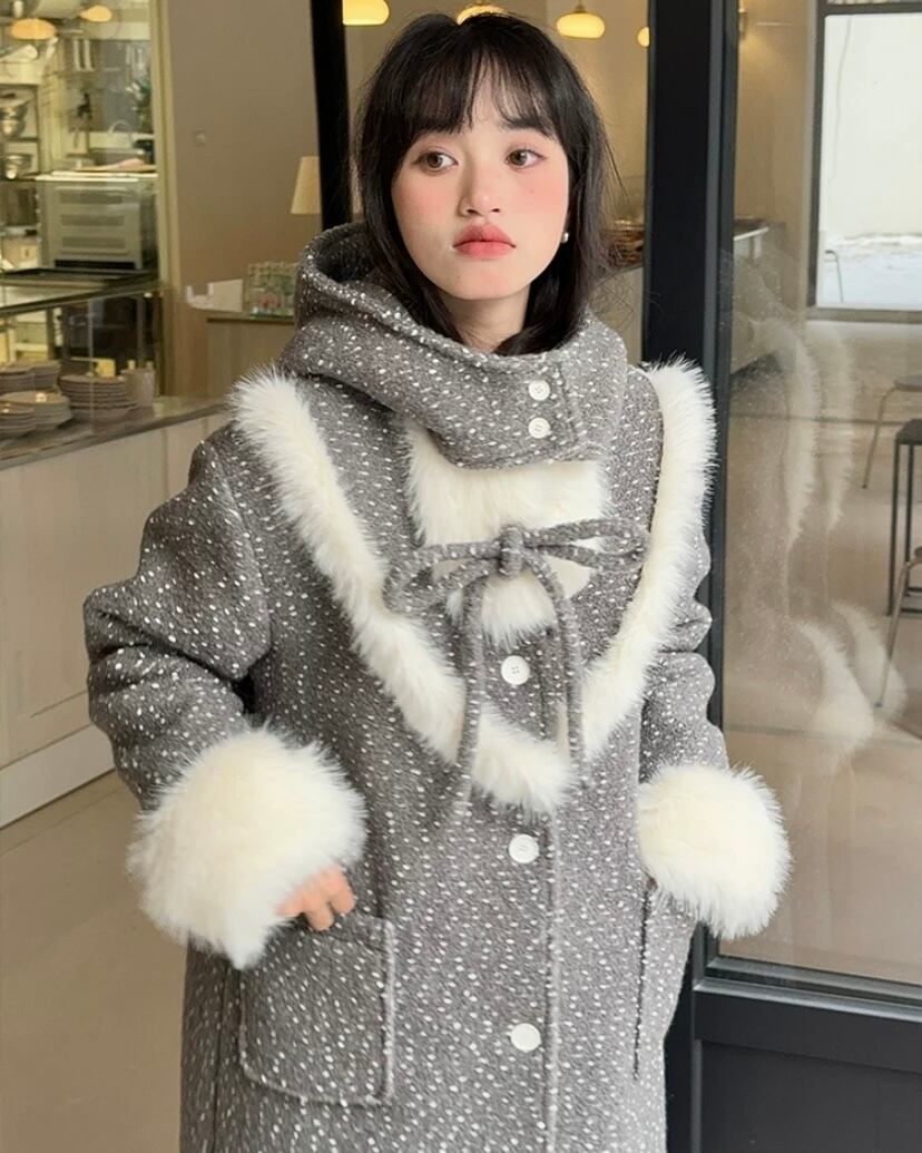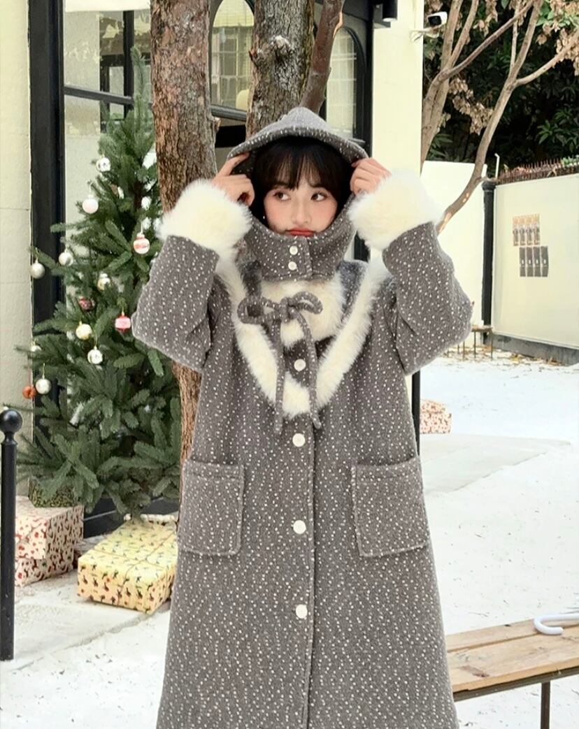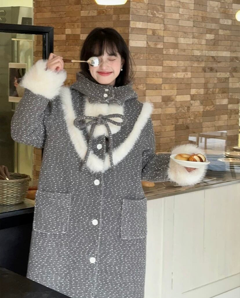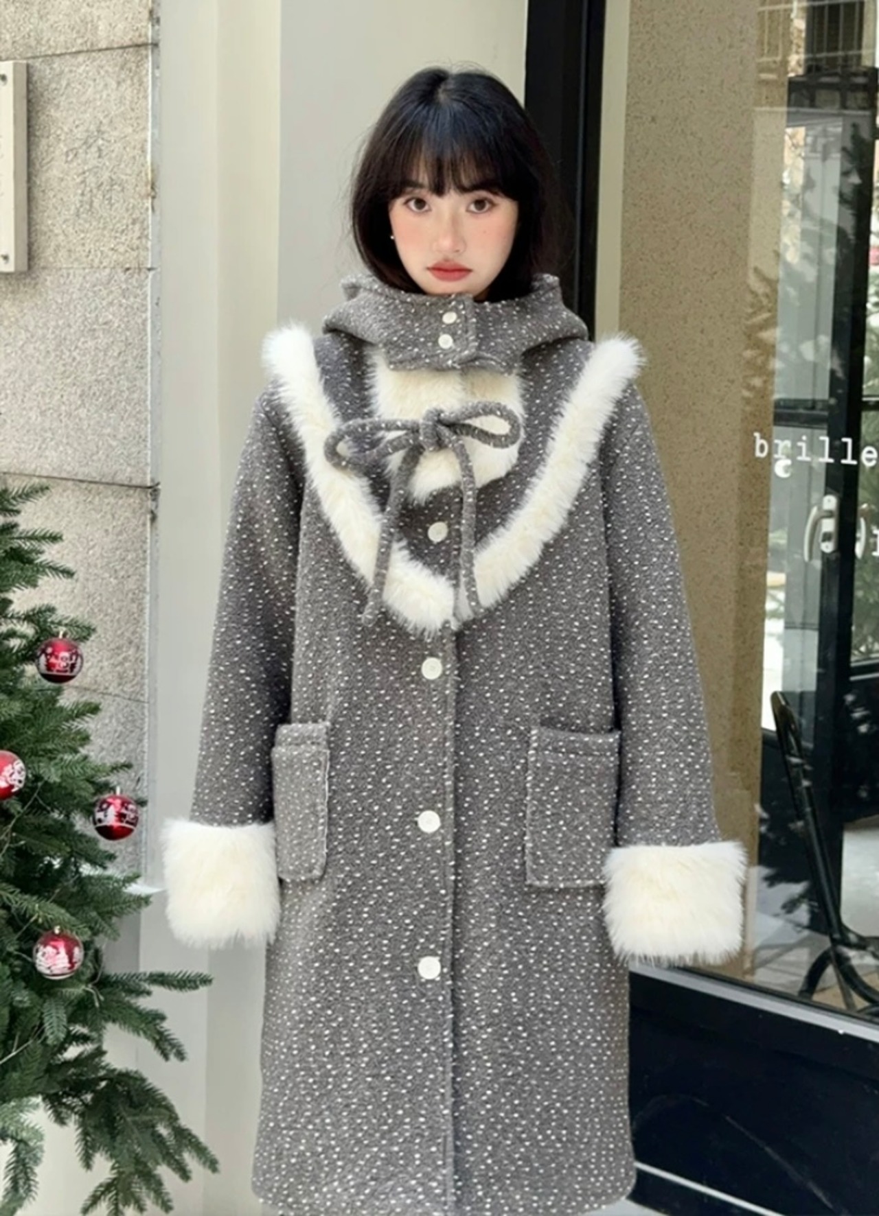 グレー ガーリー パーカー コート アウター ジャケット リボン